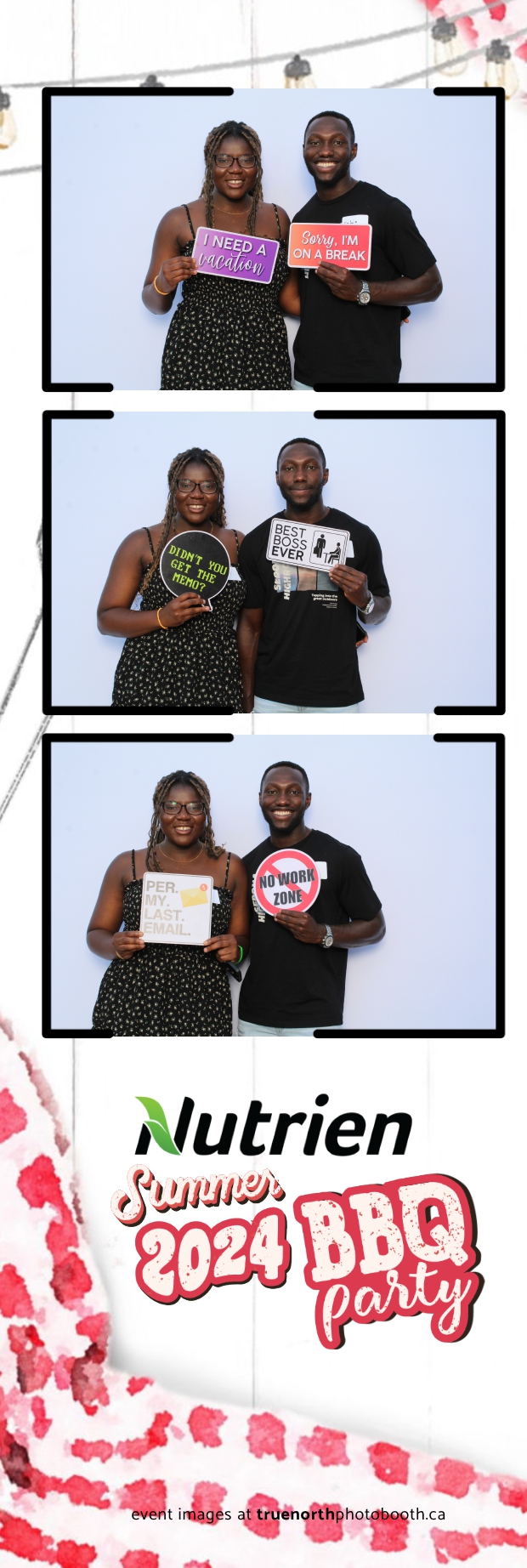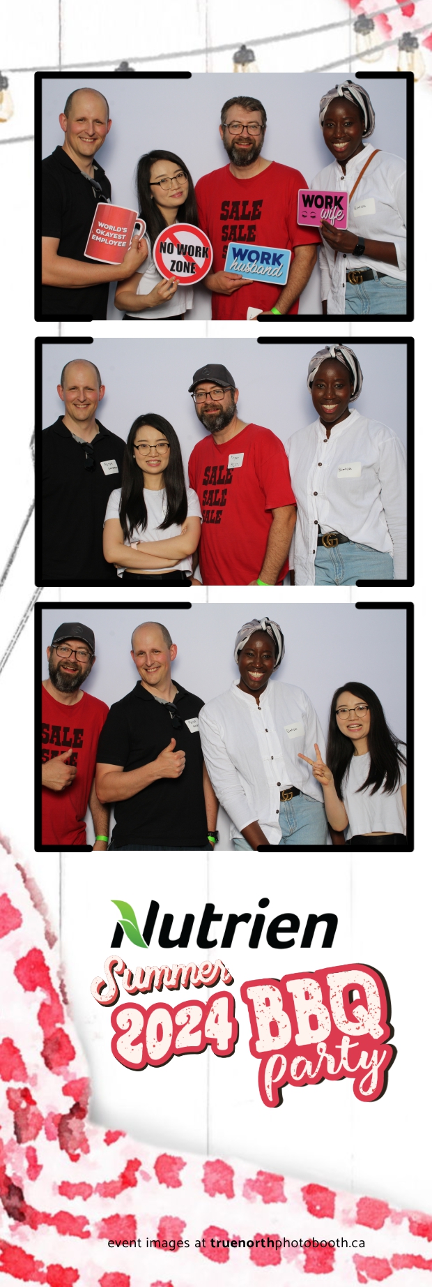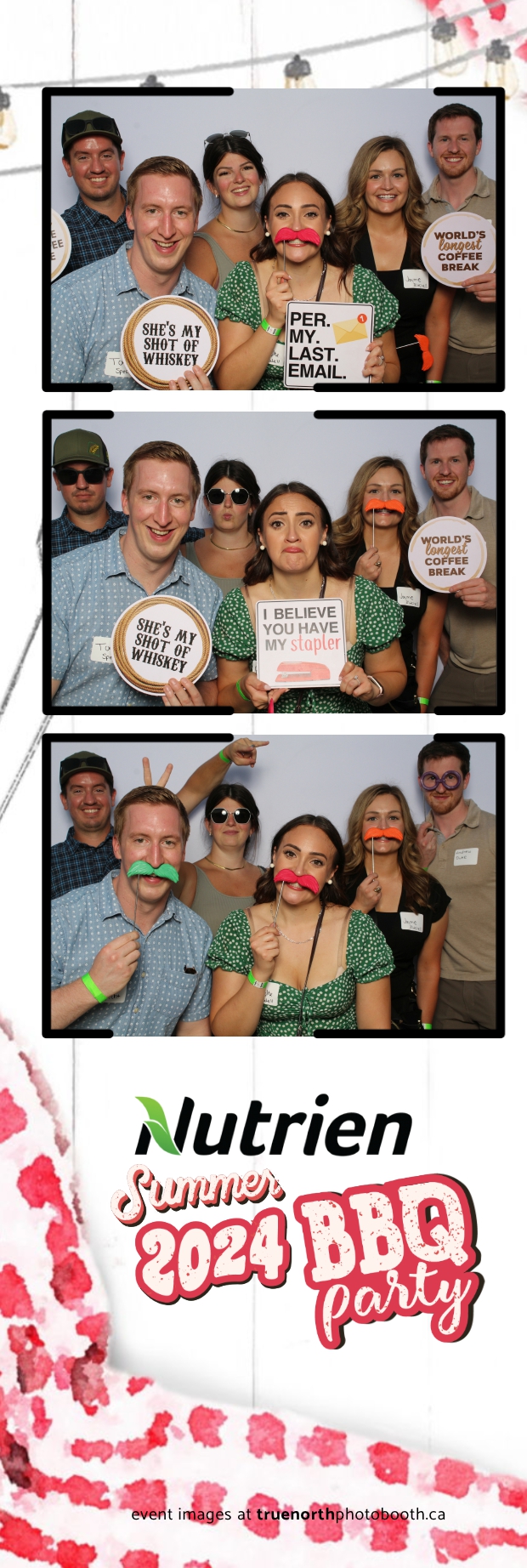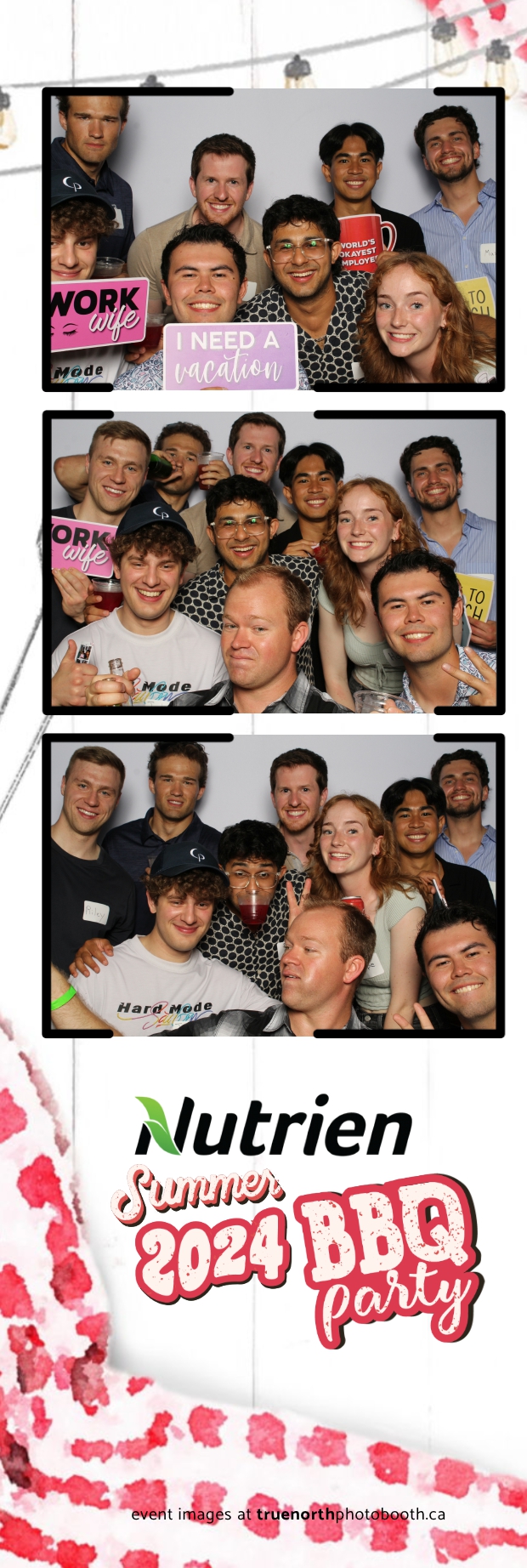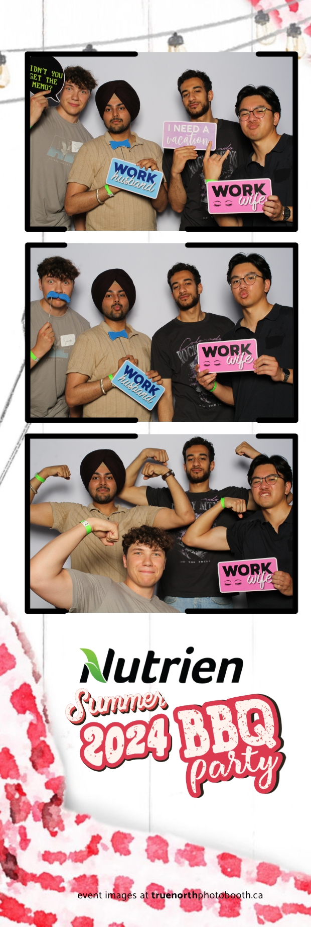 True North Photo Booth featured a stunning white pillow backdrop, creating an elegant yet fun atmosphere for capturing memories. Guests enjoyed the 2X6 custom photo strips, taking home personalized keepsakes that commemorated the day. The presence of True North Photo Booth elevated the entire event, offering a unique and interactive experience that kept everyone entertained. Their professional service and high-quality photos ensured that the Nutrien 2024 Summer BBQ was not only memorable but also beautifully documented, making it a standout corporate event of the summer.