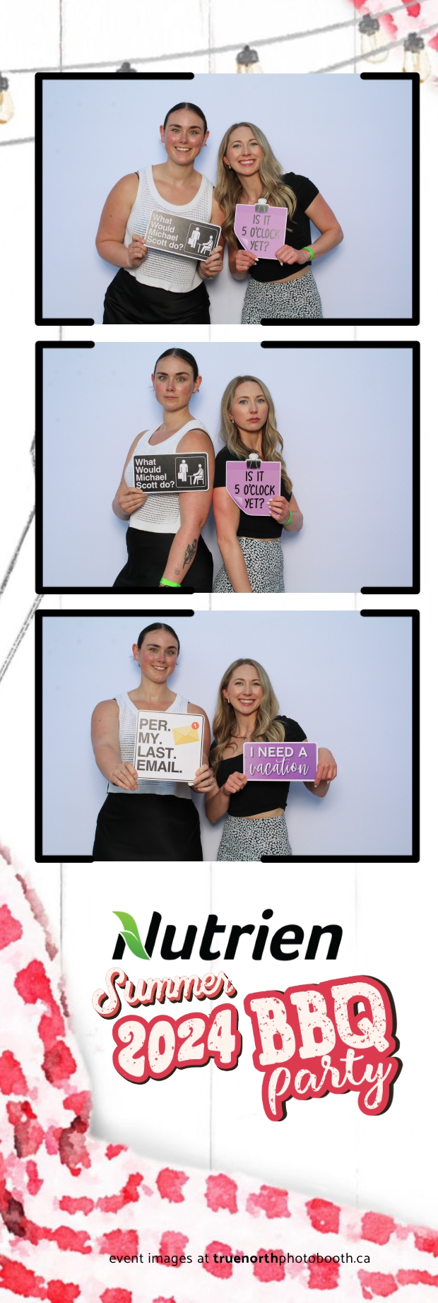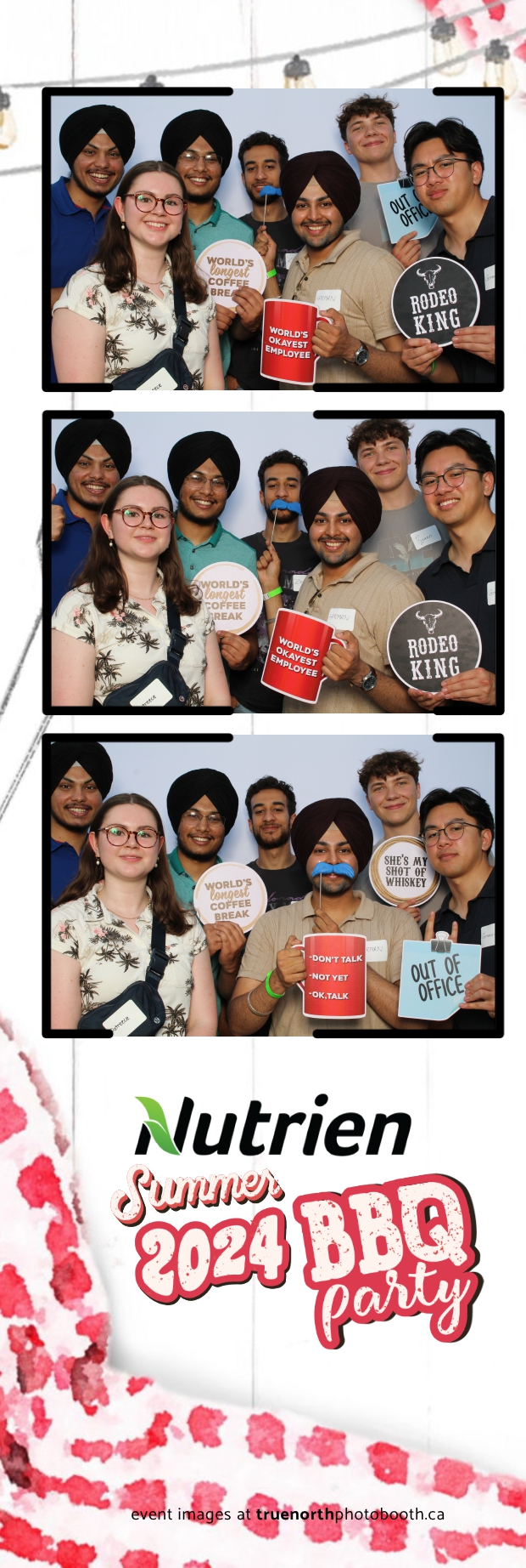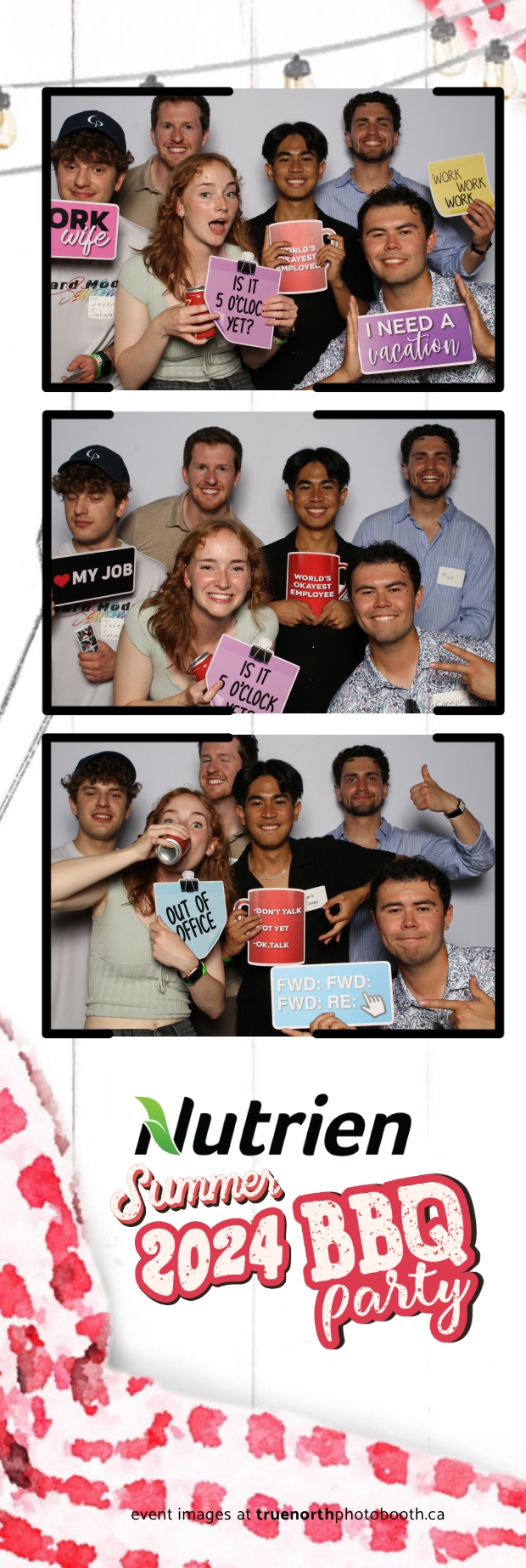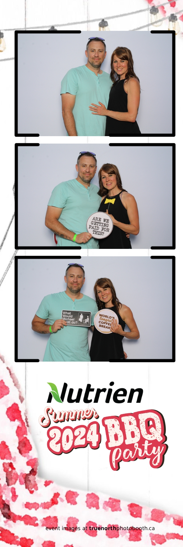 True North Photo Booth featured a stunning white pillow backdrop, creating an elegant yet fun atmosphere for capturing memories. Guests enjoyed the 2X6 custom photo strips, taking home personalized keepsakes that commemorated the day. The presence of True North Photo Booth elevated the entire event, offering a unique and interactive experience that kept everyone entertained. Their professional service and high-quality photos ensured that the Nutrien 2024 Summer BBQ was not only memorable but also beautifully documented, making it a standout corporate event of the summer.