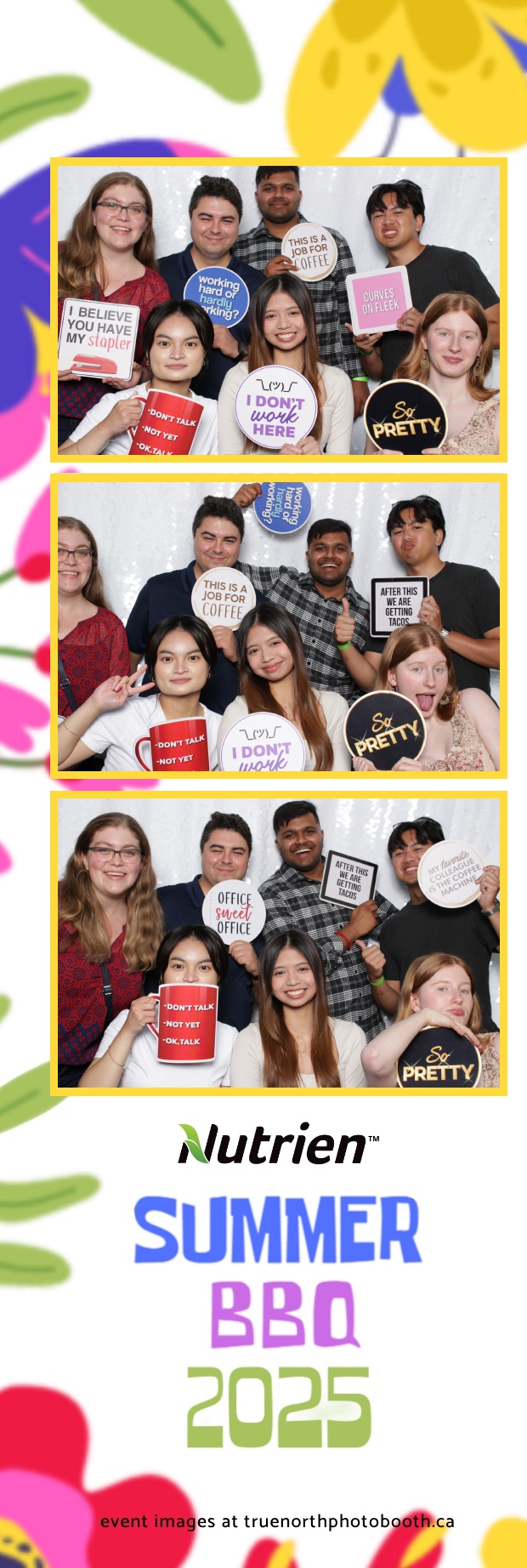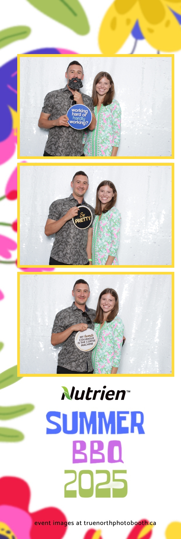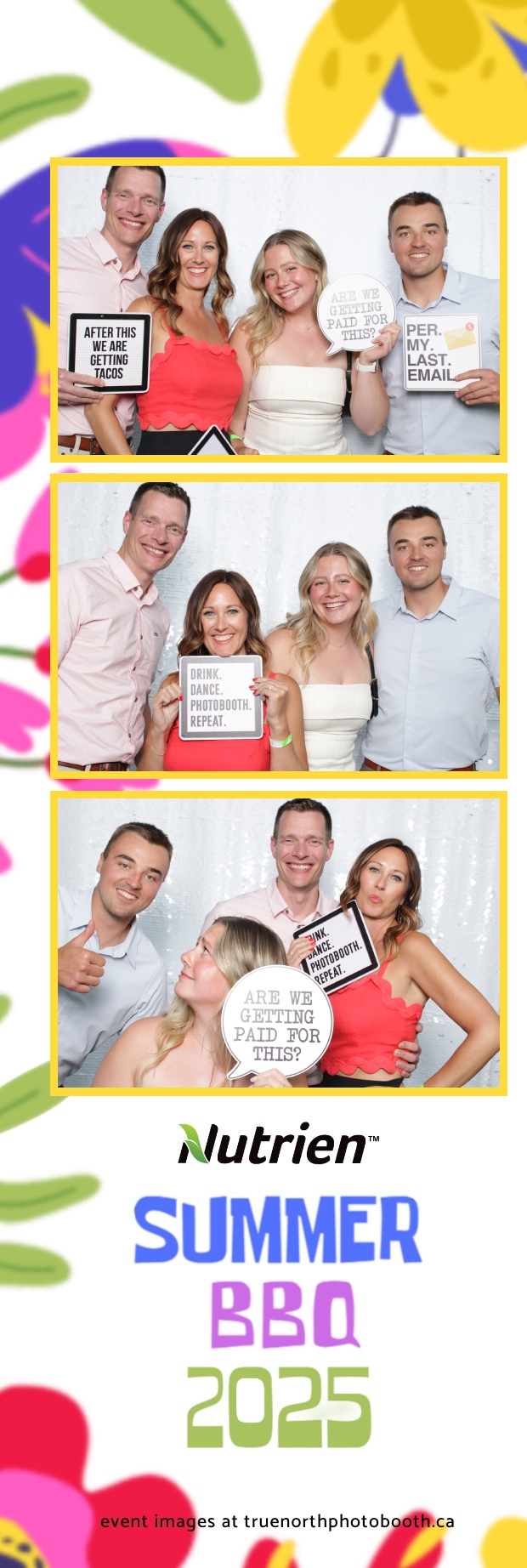 From laughter-filled group shots to silly solo poses, the photo booth brought people together in the spirit of fun. The sparkling White Sequin backdrop added a touch of glam, while the 2X6 custom photo strips provided a fun, branded souvenir for employees. The Nutrien Summer BBQ 2025 proved to be a perfect blend of relaxation, entertainment, and community spirit in one of Saskatoon’s most scenic venue.