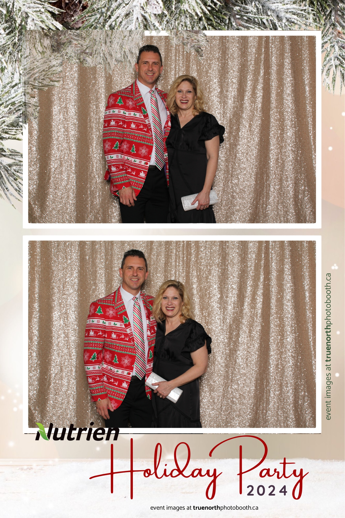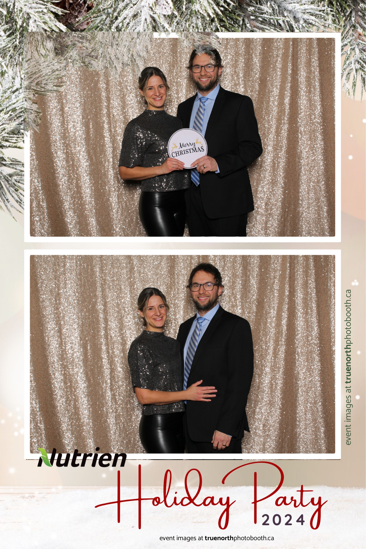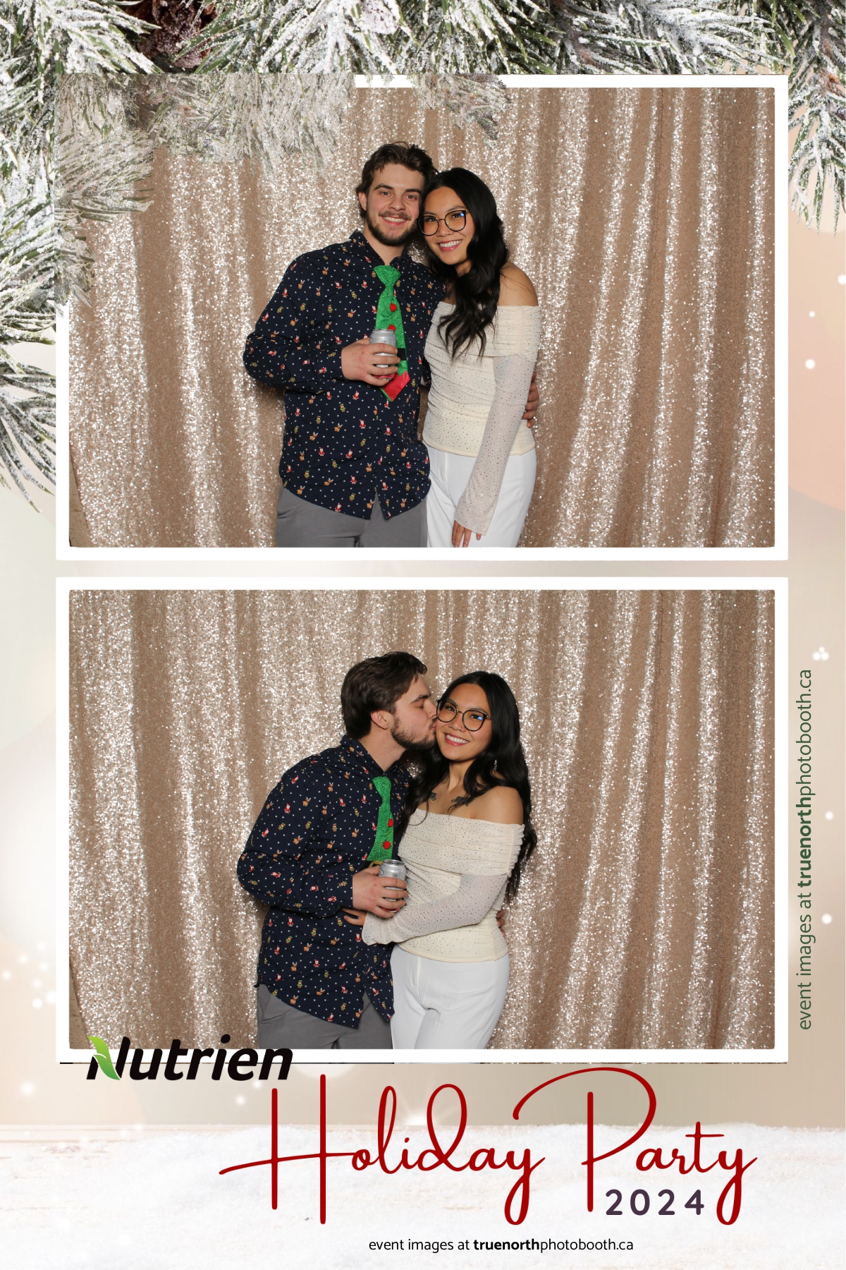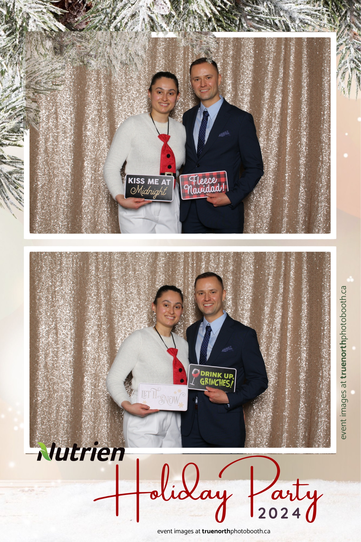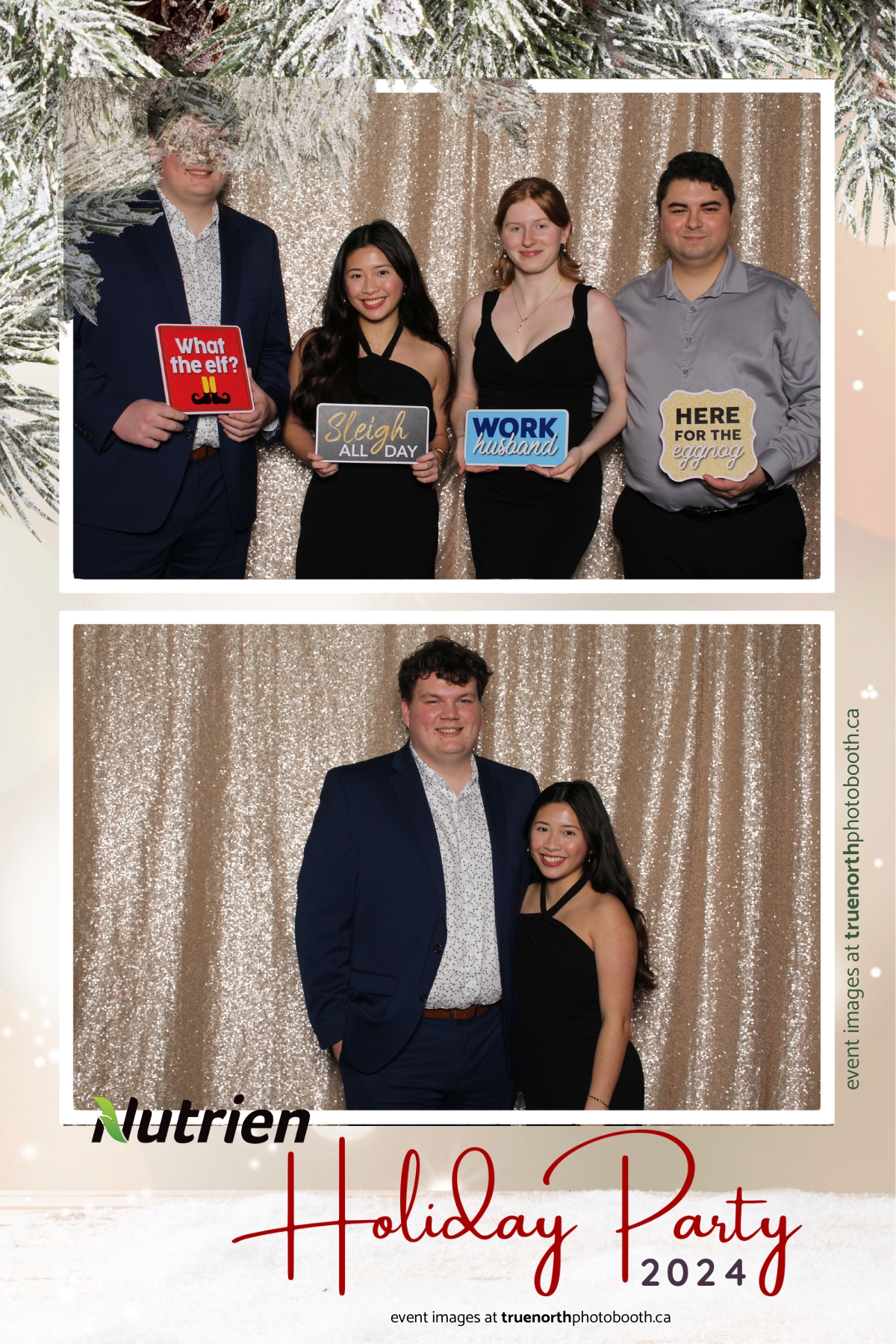 Adding a magical touch to the festivities, True North Photo Booth delighted guests with their 4X6 custom photo strip featuring a stunning champagne sequin backdrop. The booth was a hotspot throughout the night, with attendees striking their best poses and taking home keepsake photo strips that captured the sparkle of the evening. True North Photo Booth was thrilled to be part of such a memorable celebration, ensuring every guest left with cherished memories and smiles to match the holiday spirit!