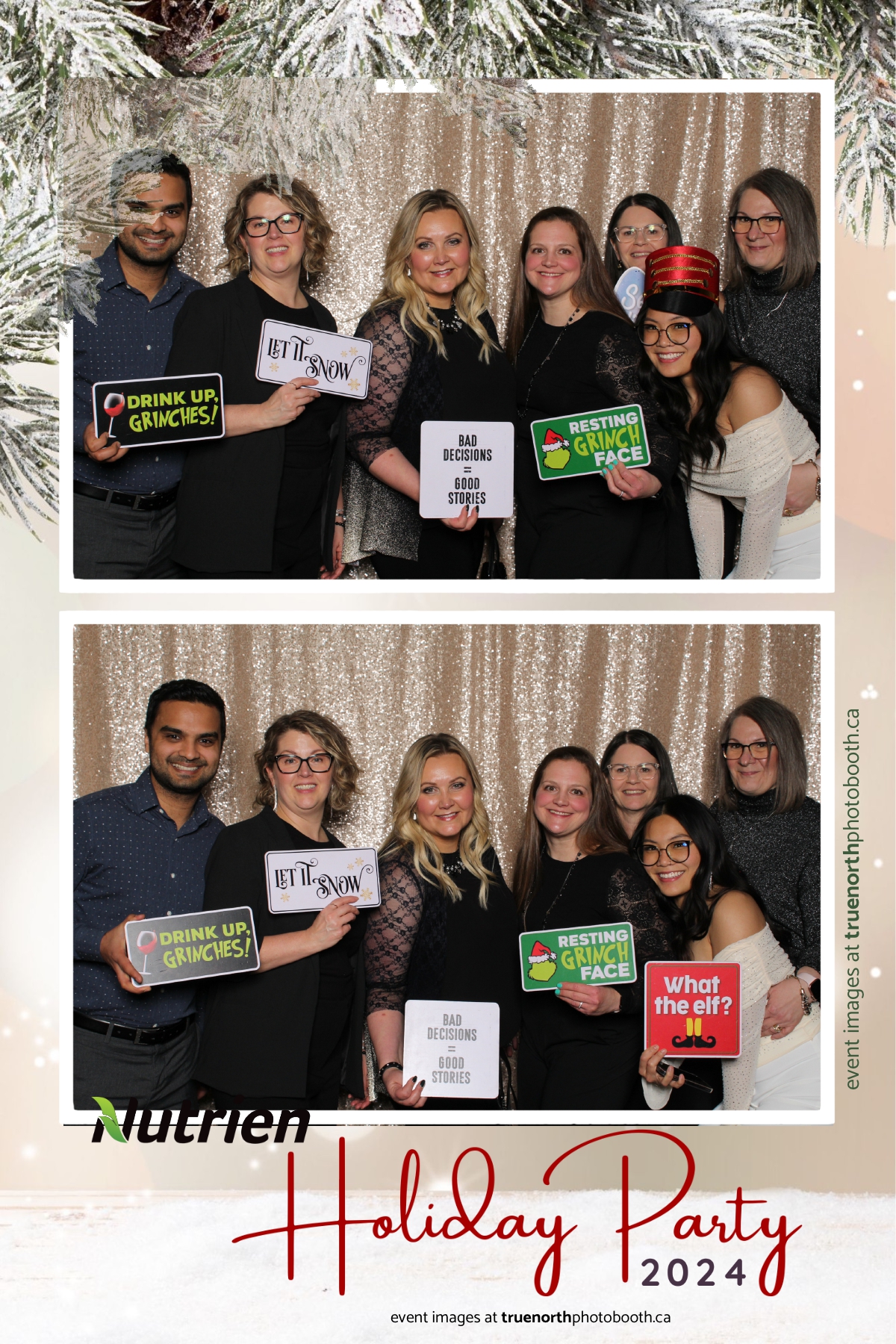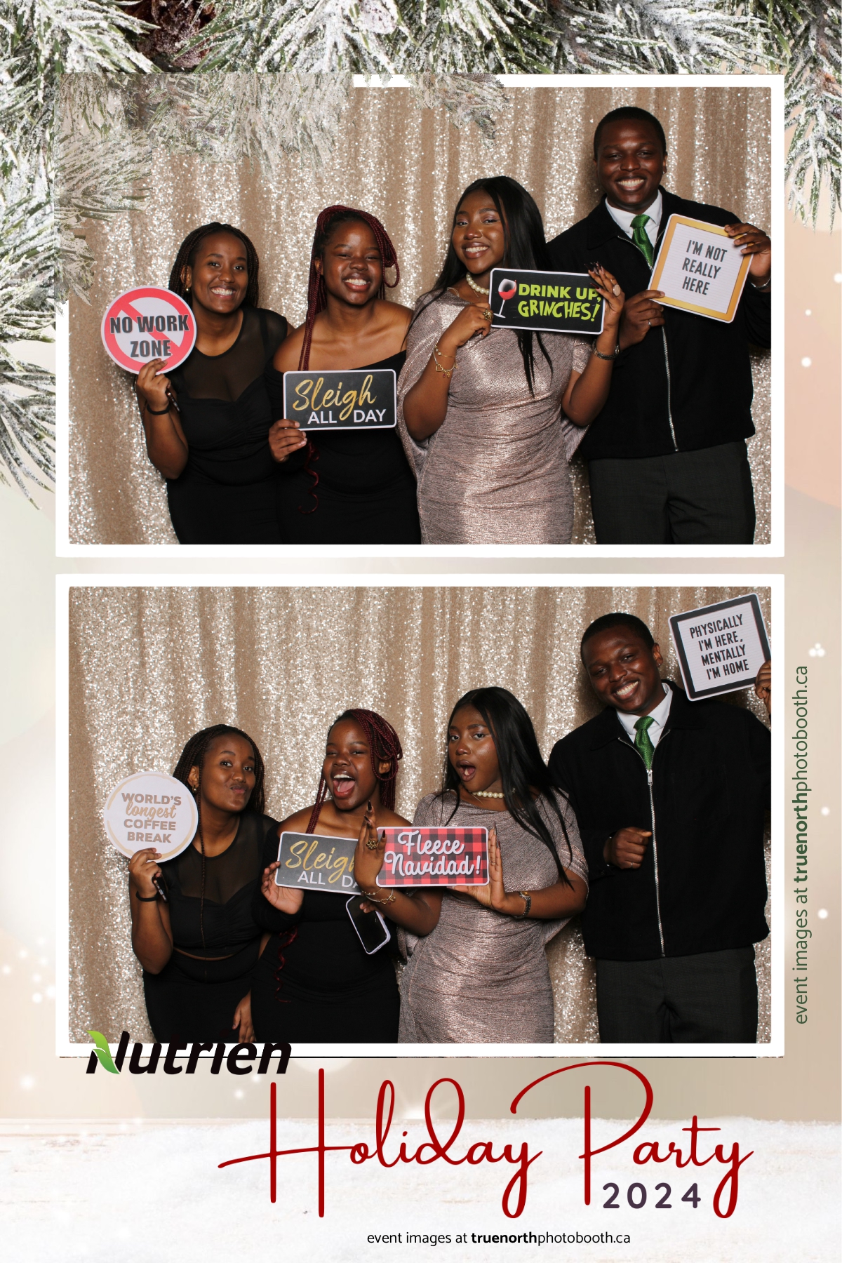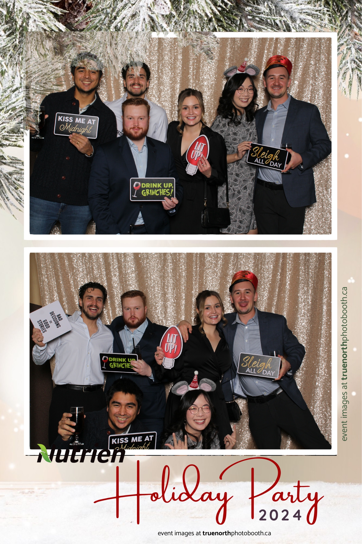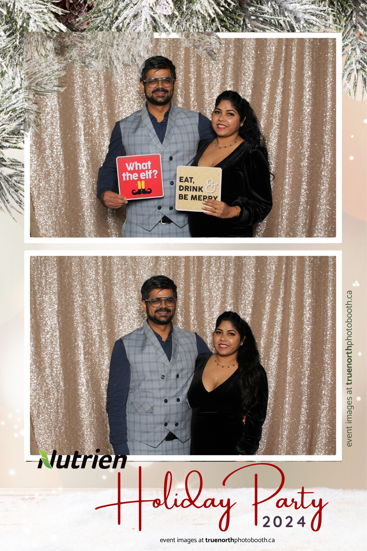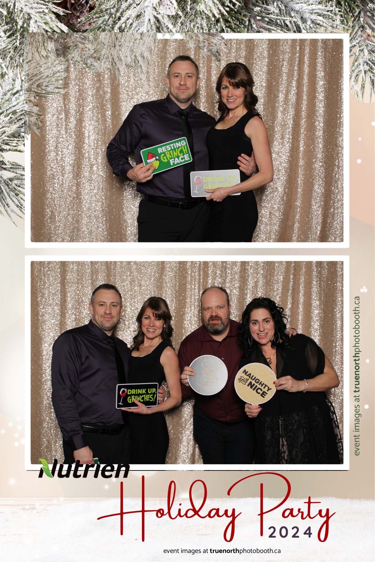 Adding a magical touch to the festivities, True North Photo Booth delighted guests with their 4X6 custom photo strip featuring a stunning champagne sequin backdrop. The booth was a hotspot throughout the night, with attendees striking their best poses and taking home keepsake photo strips that captured the sparkle of the evening. True North Photo Booth was thrilled to be part of such a memorable celebration, ensuring every guest left with cherished memories and smiles to match the holiday spirit!