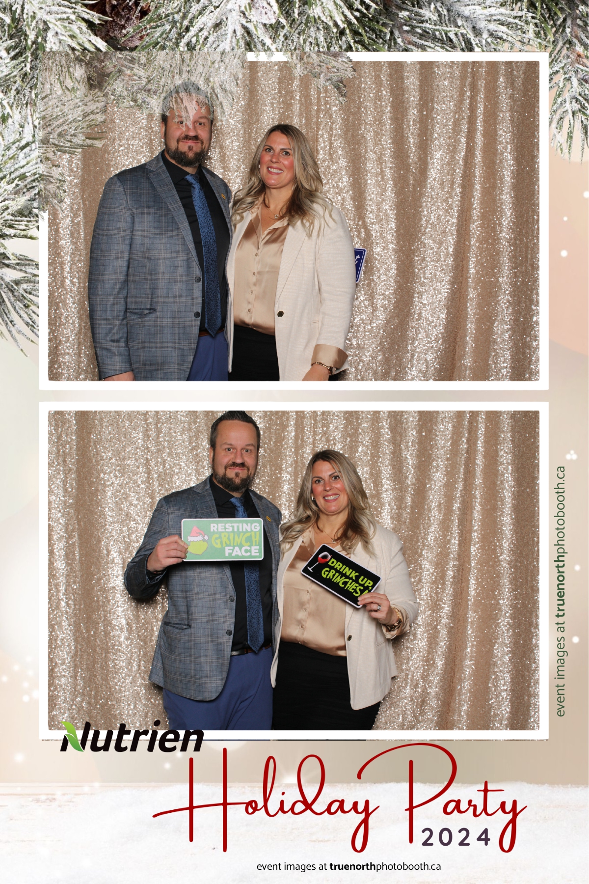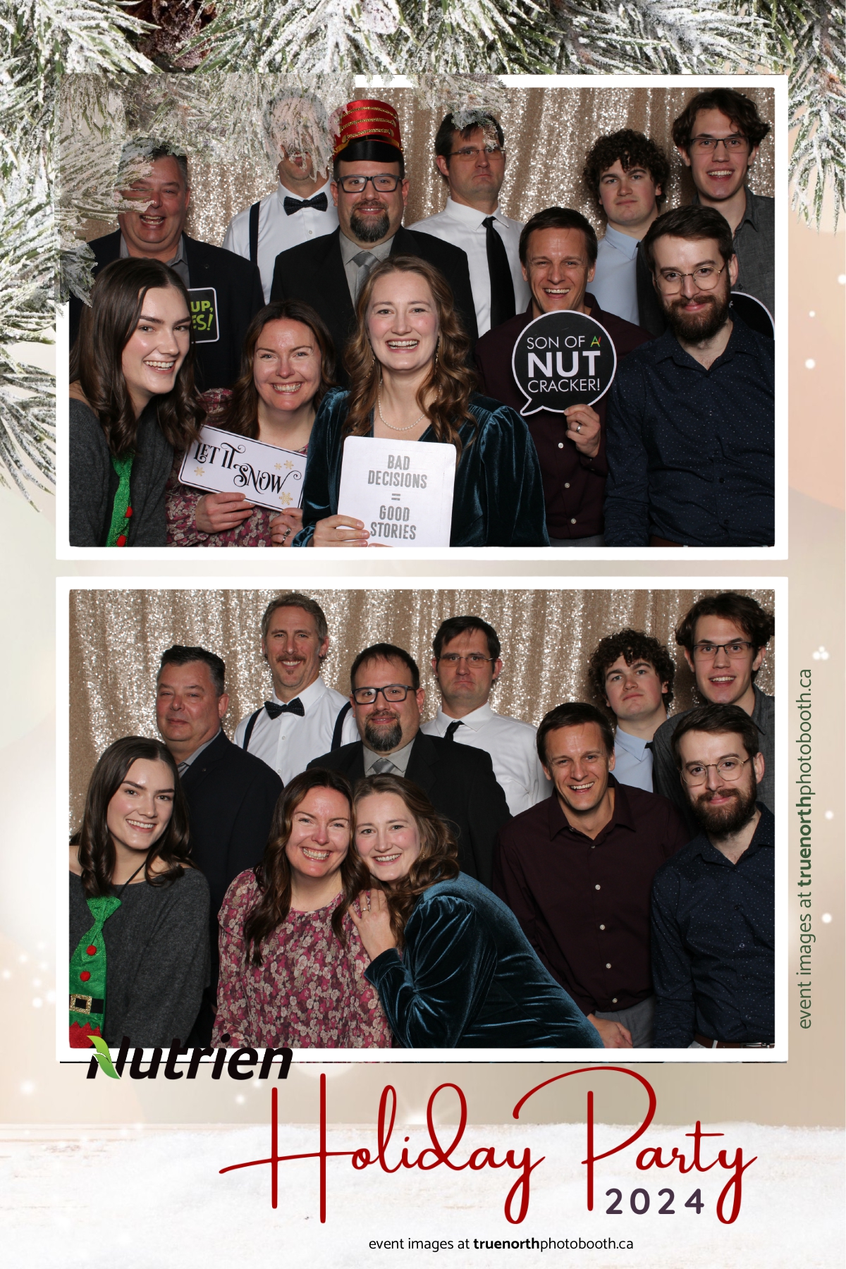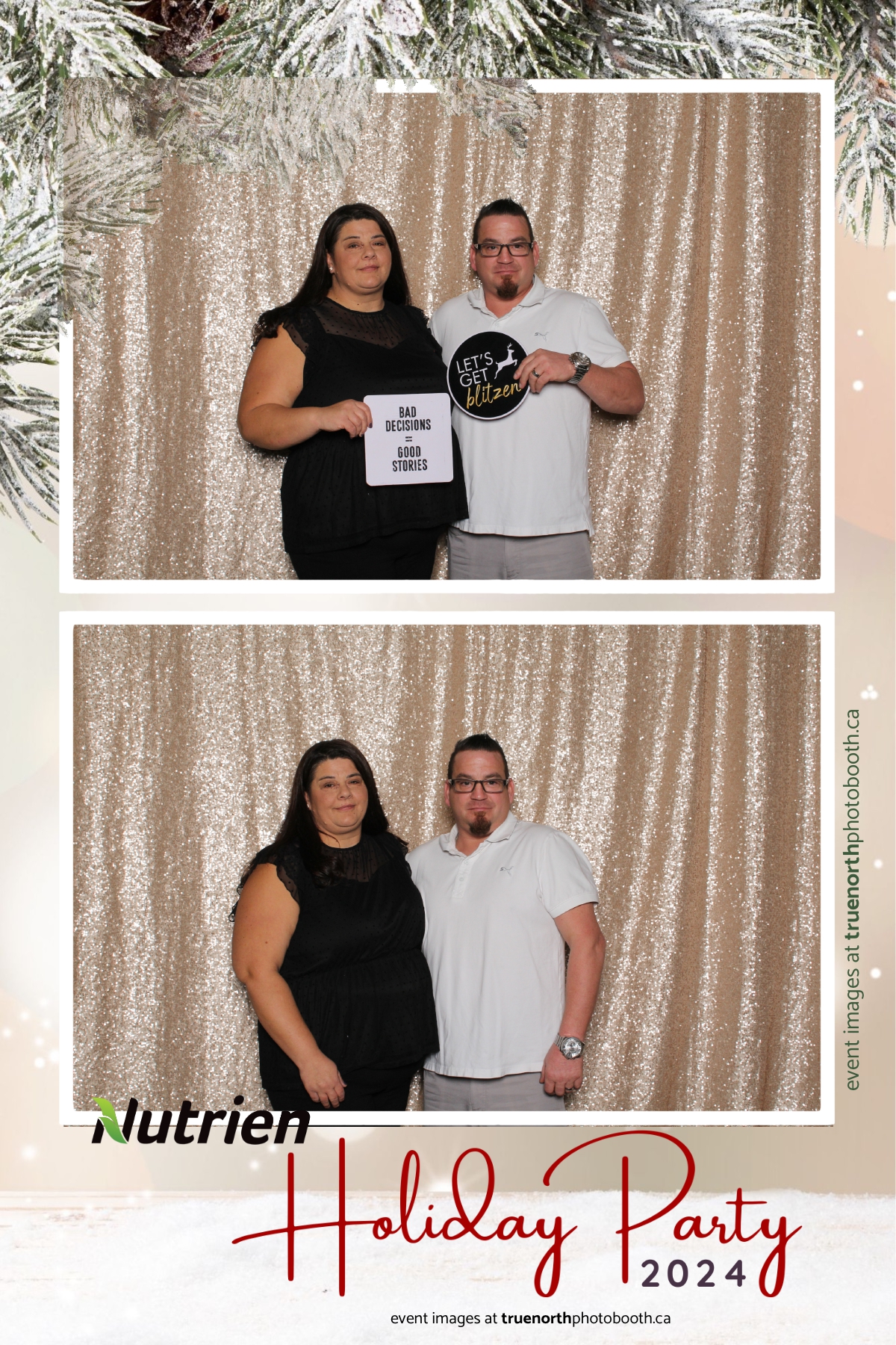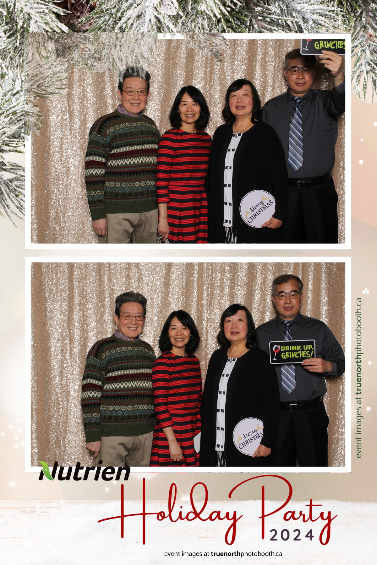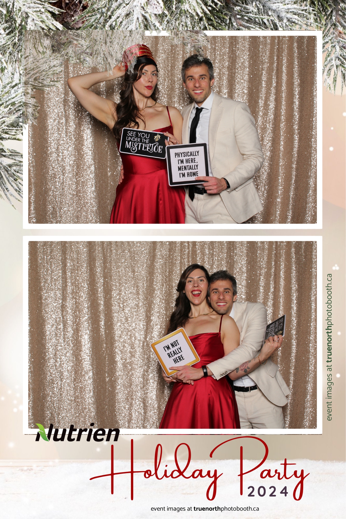 Adding a magical touch to the festivities, True North Photo Booth delighted guests with their 4X6 custom photo strip featuring a stunning champagne sequin backdrop. The booth was a hotspot throughout the night, with attendees striking their best poses and taking home keepsake photo strips that captured the sparkle of the evening. True North Photo Booth was thrilled to be part of such a memorable celebration, ensuring every guest left with cherished memories and smiles to match the holiday spirit!