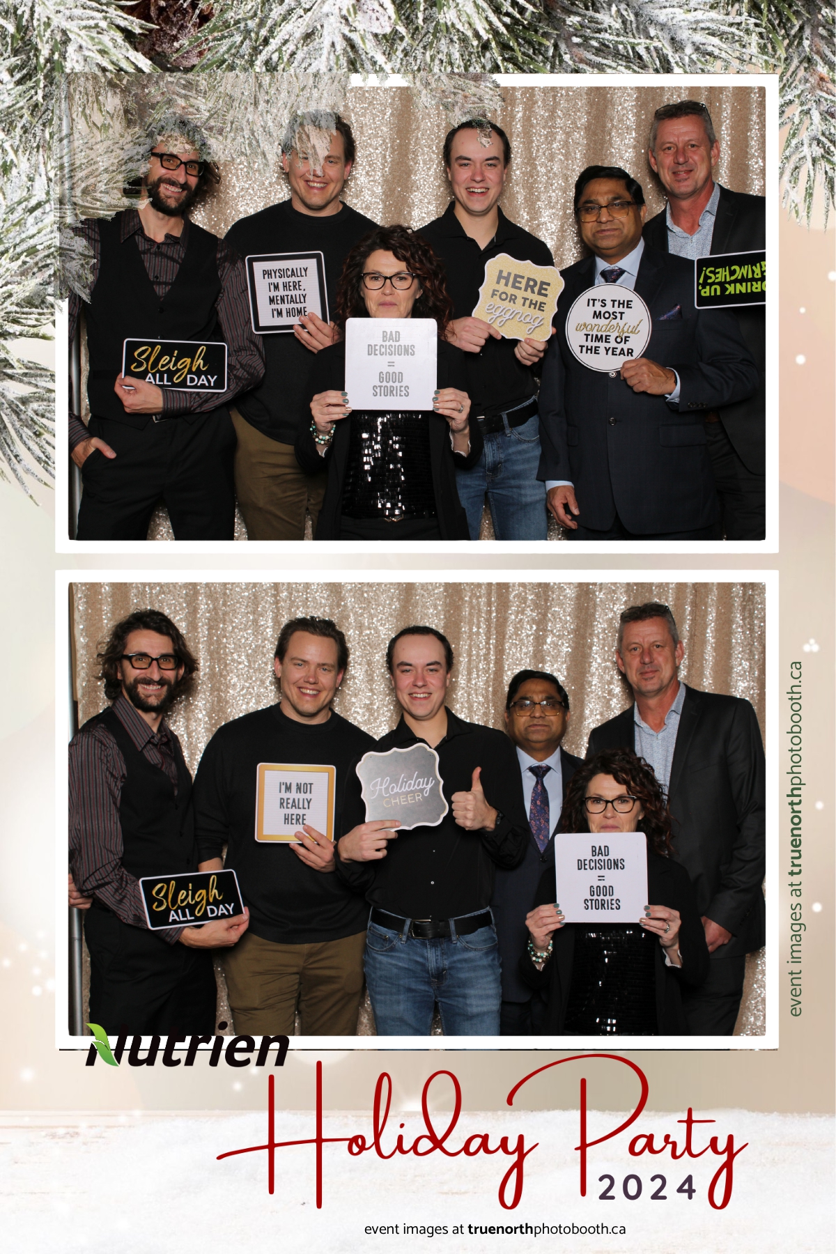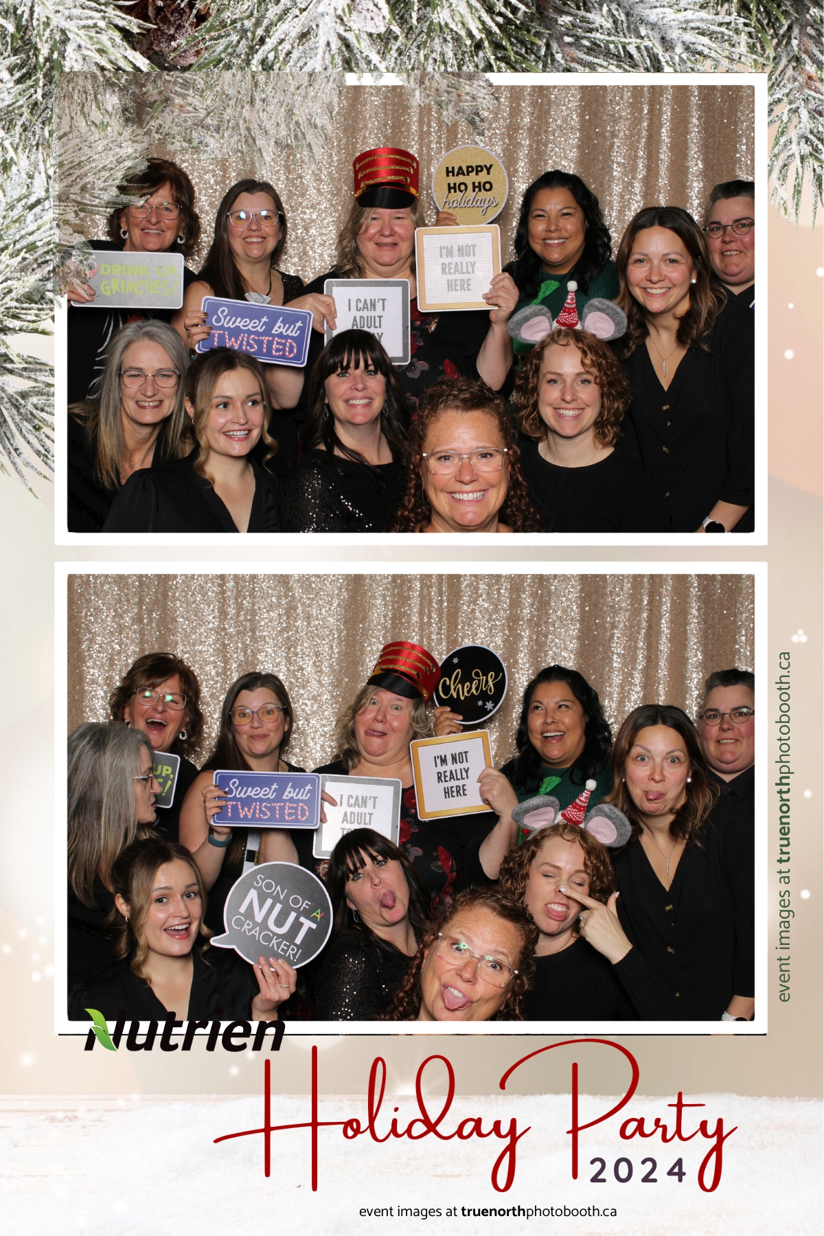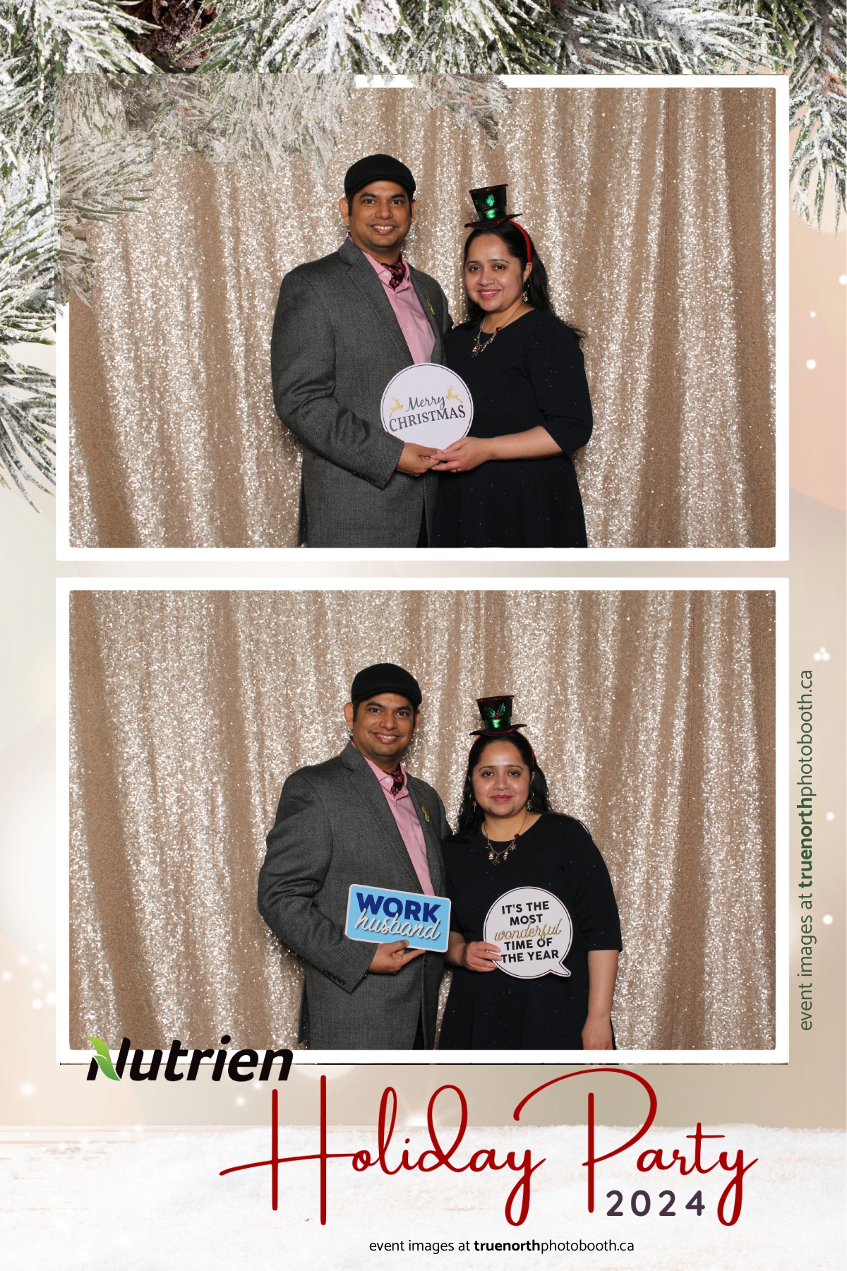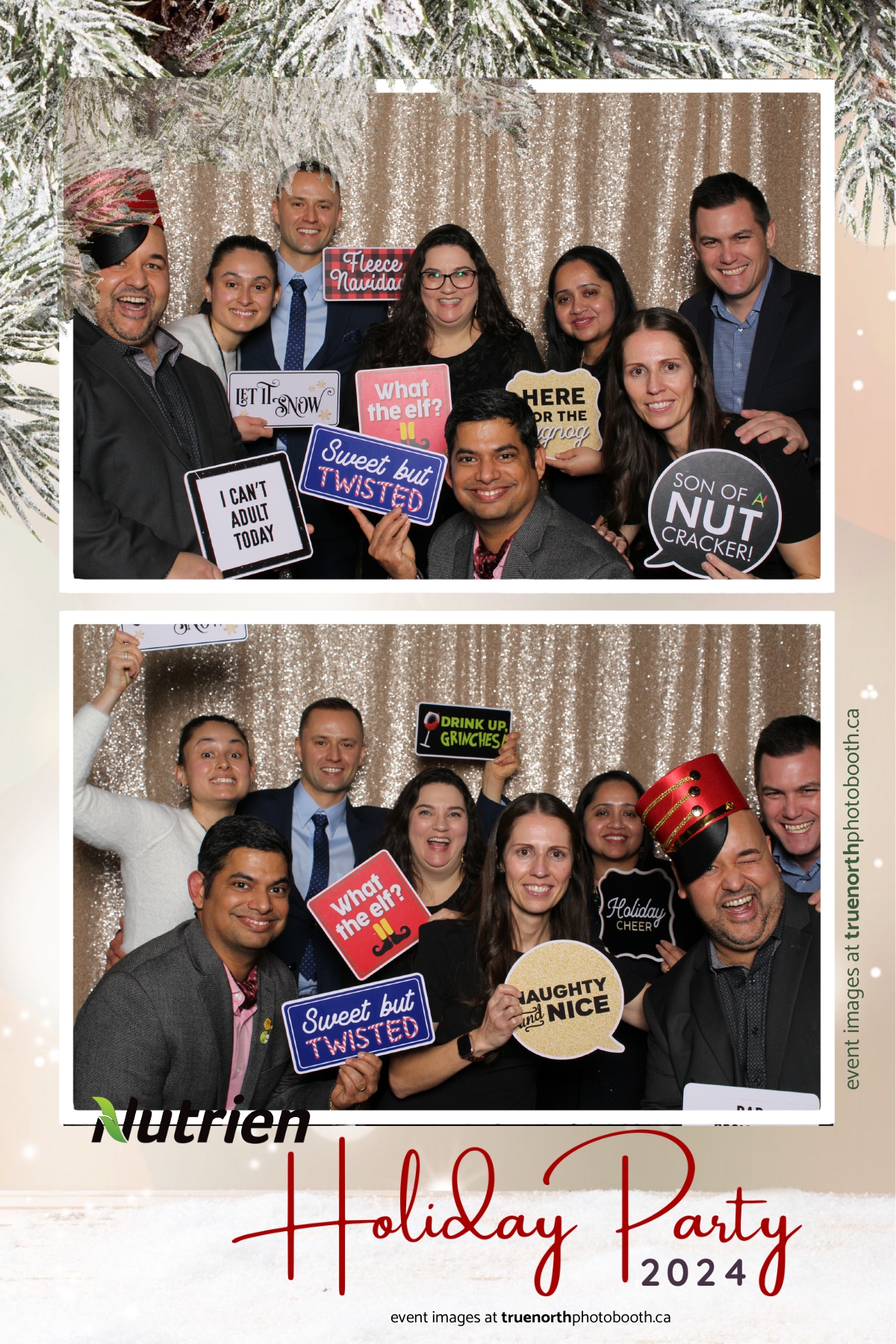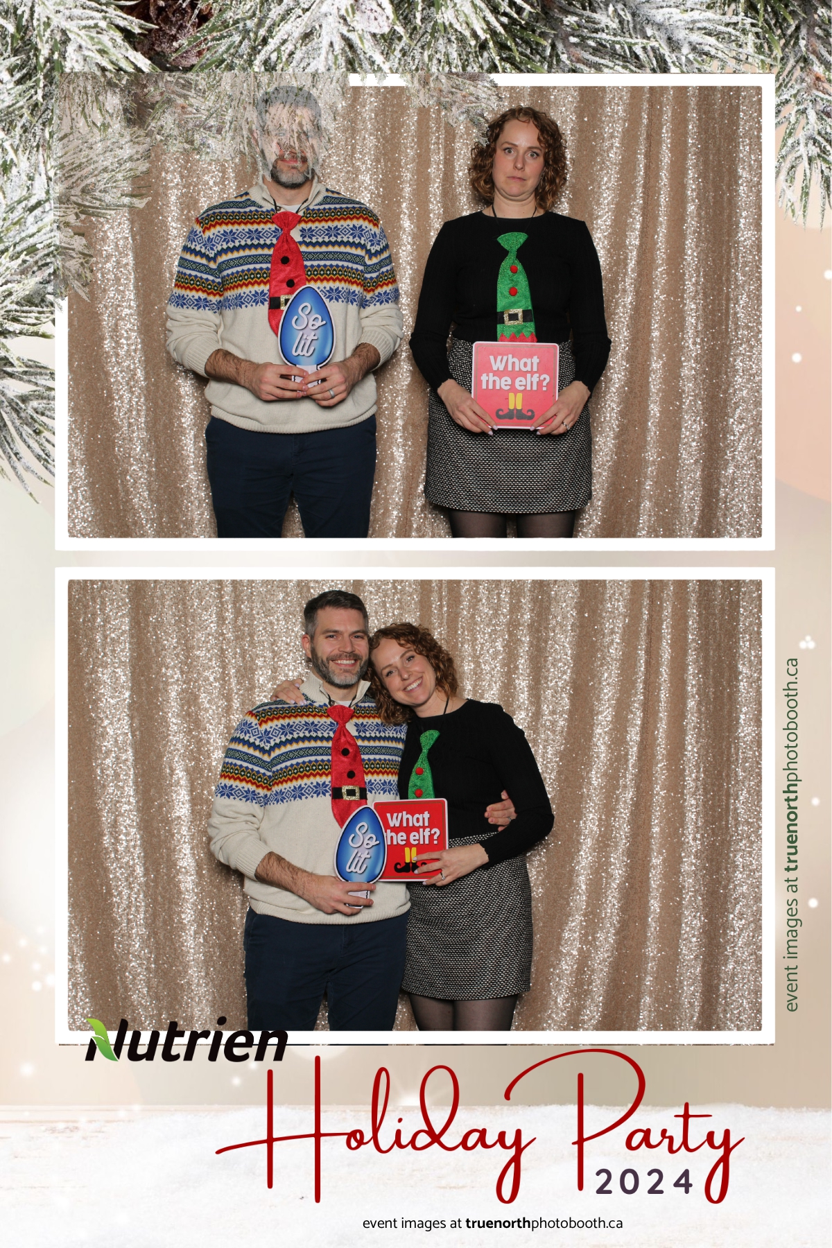 Adding a magical touch to the festivities, True North Photo Booth delighted guests with their 4X6 custom photo strip featuring a stunning champagne sequin backdrop. The booth was a hotspot throughout the night, with attendees striking their best poses and taking home keepsake photo strips that captured the sparkle of the evening. True North Photo Booth was thrilled to be part of such a memorable celebration, ensuring every guest left with cherished memories and smiles to match the holiday spirit!
