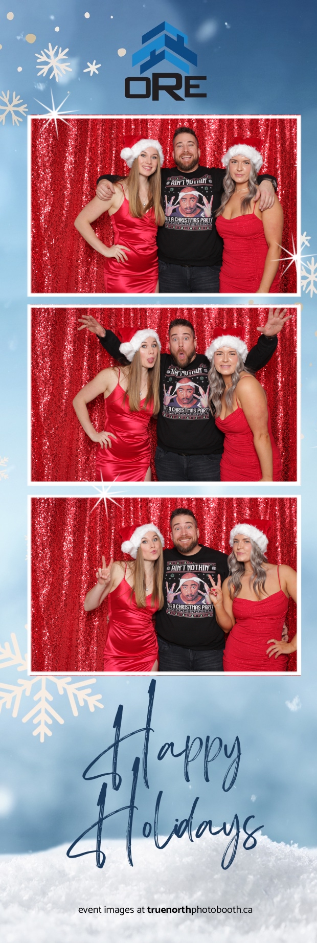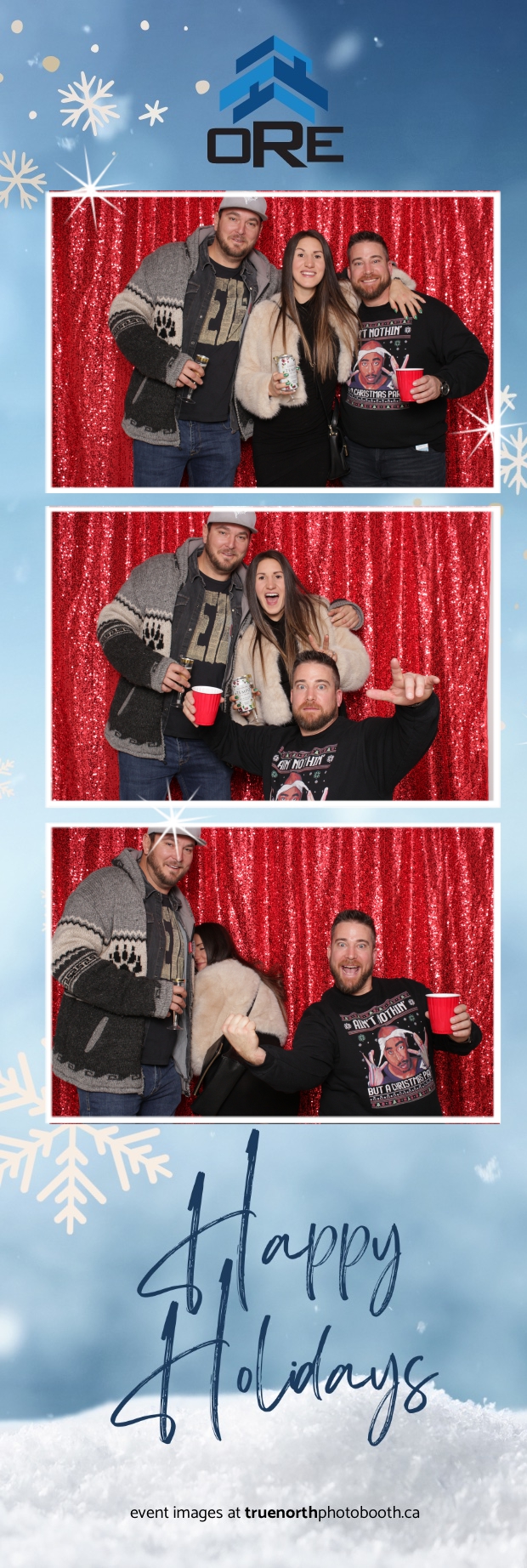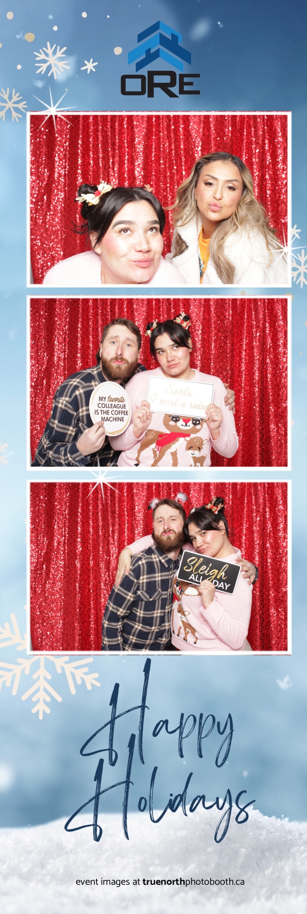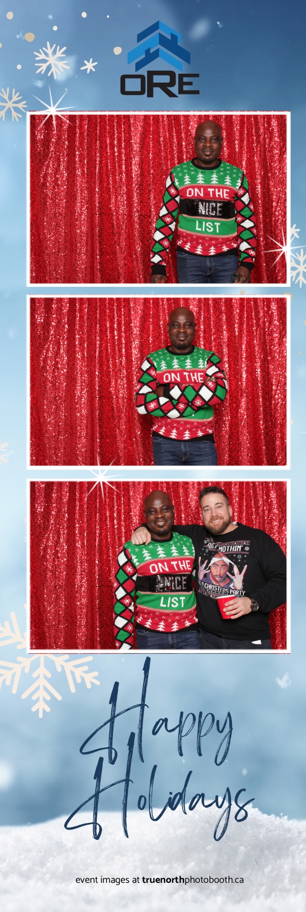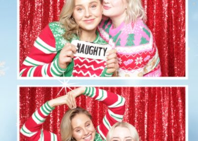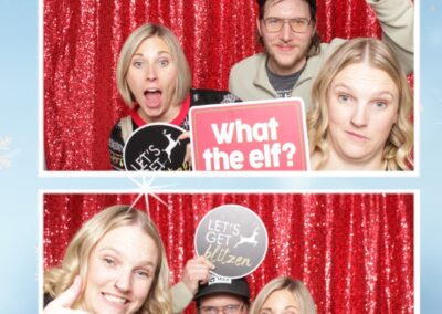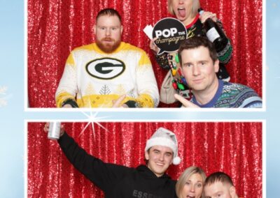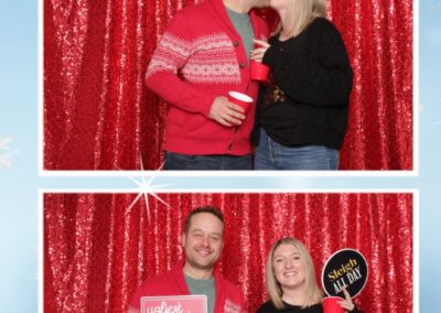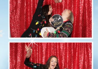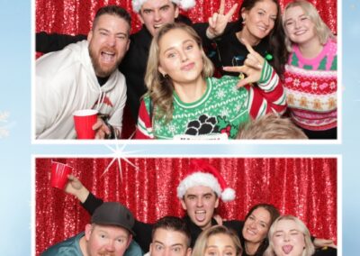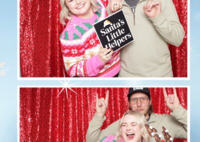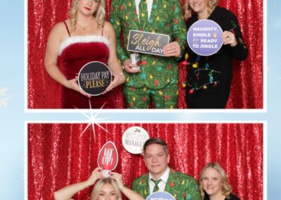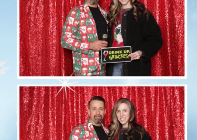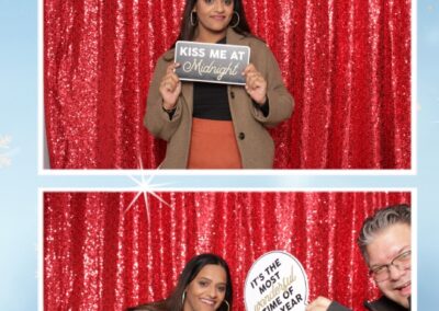 True North Photo Booth added an exciting touch to the festivities with their 2X6 custom photo strip featuring a dazzling red sequin backdrop. Guests lined up to snap fun, festive photos that perfectly captured the party’s energy and holiday vibes. Each photo strip became a cherished keepsake, reminding everyone of the great time they had. True North Photo Booth was thrilled to be part of the celebration, helping to make the event a picture-perfect holiday success!