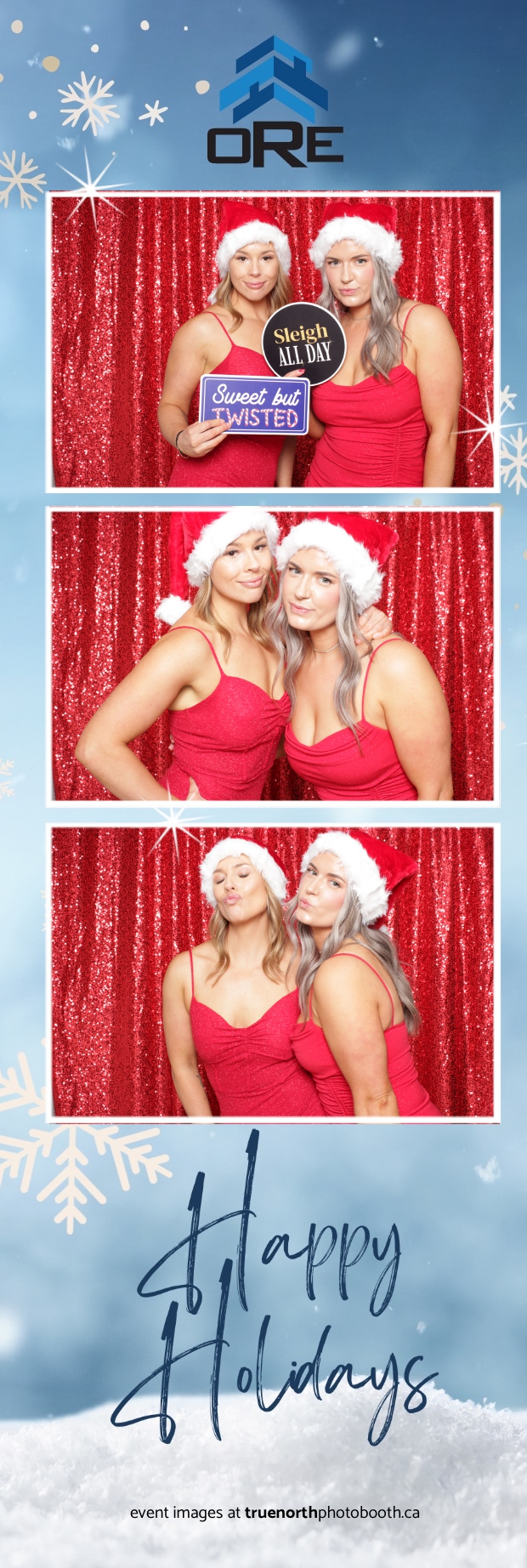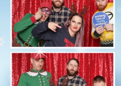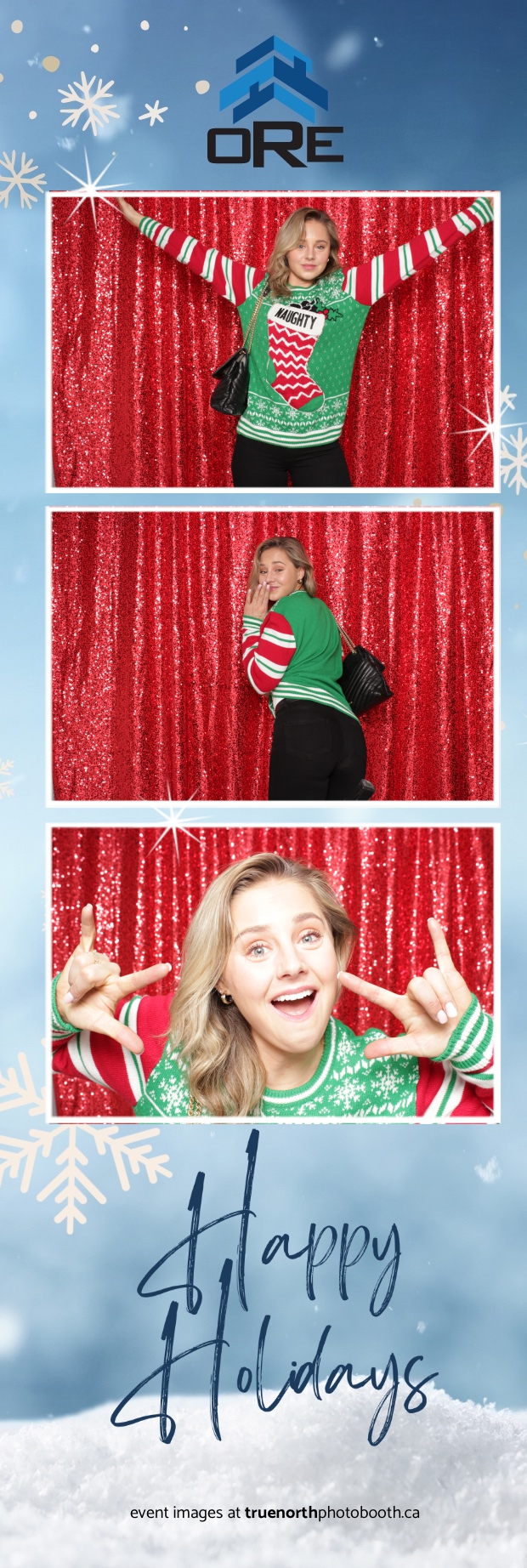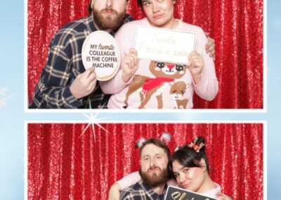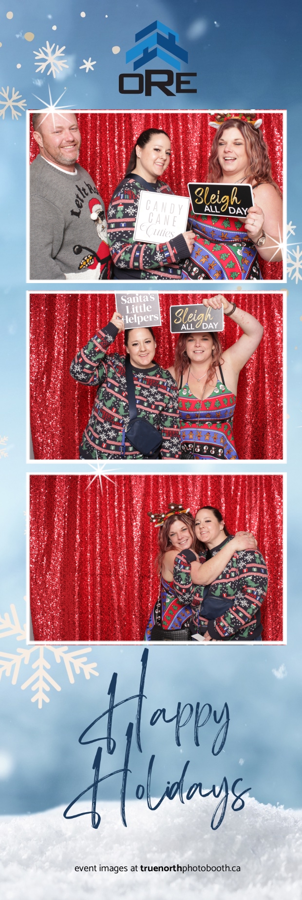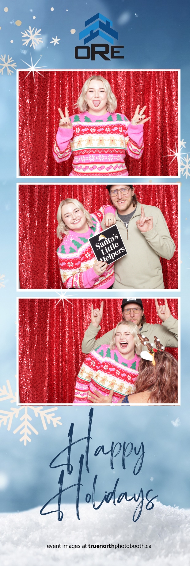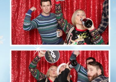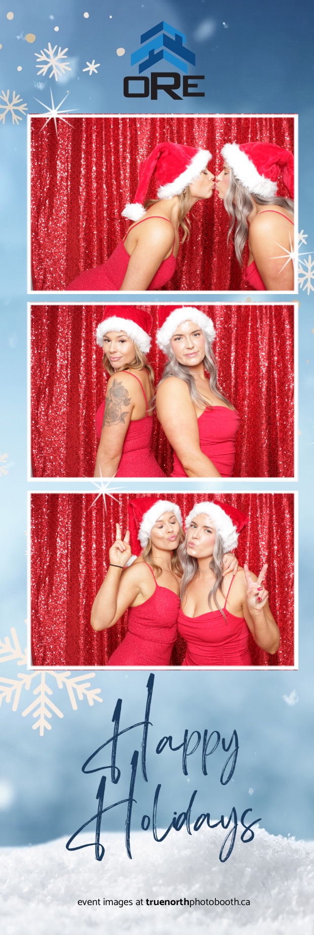 True North Photo Booth added an exciting touch to the festivities with their 2X6 custom photo strip featuring a dazzling red sequin backdrop. Guests lined up to snap fun, festive photos that perfectly captured the party’s energy and holiday vibes. Each photo strip became a cherished keepsake, reminding everyone of the great time they had. True North Photo Booth was thrilled to be part of the celebration, helping to make the event a picture-perfect holiday success!