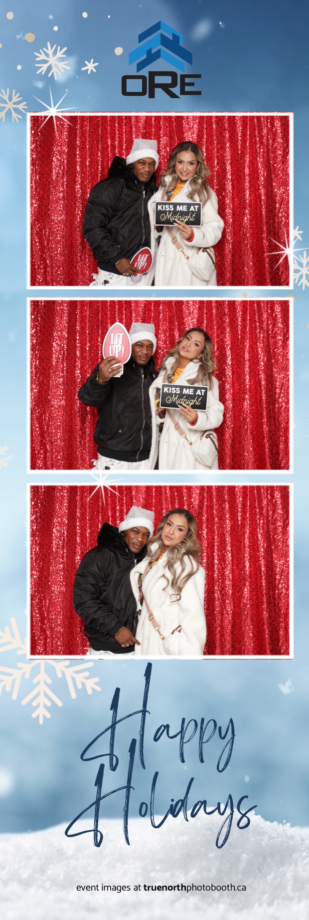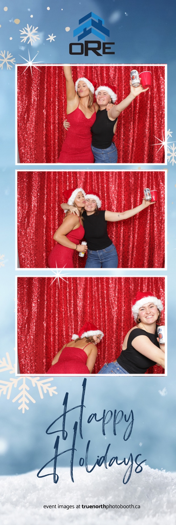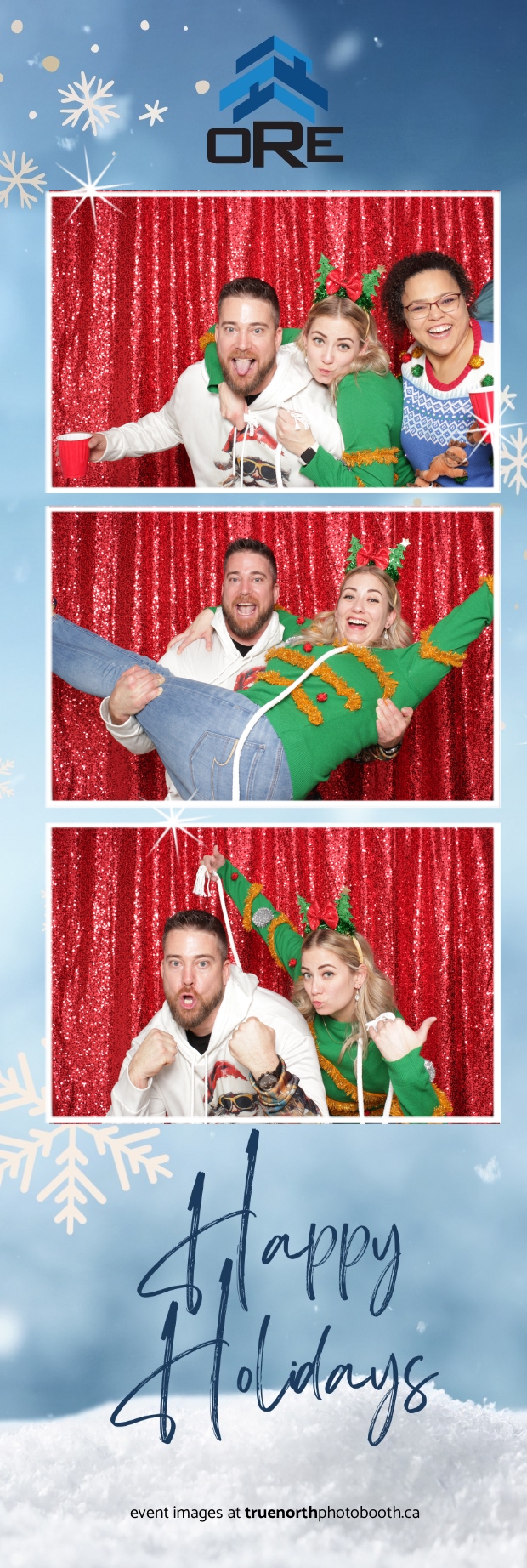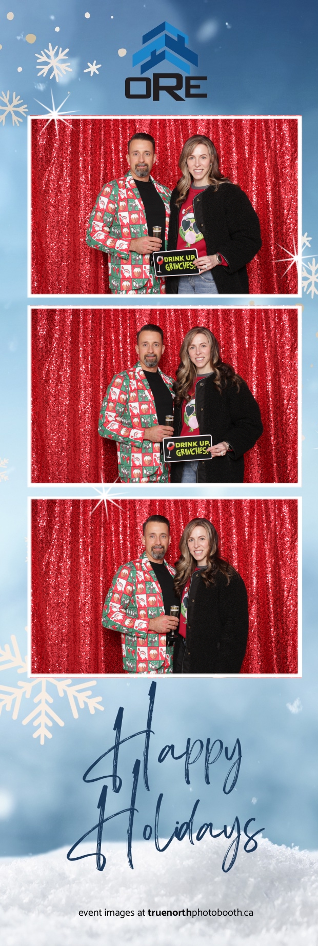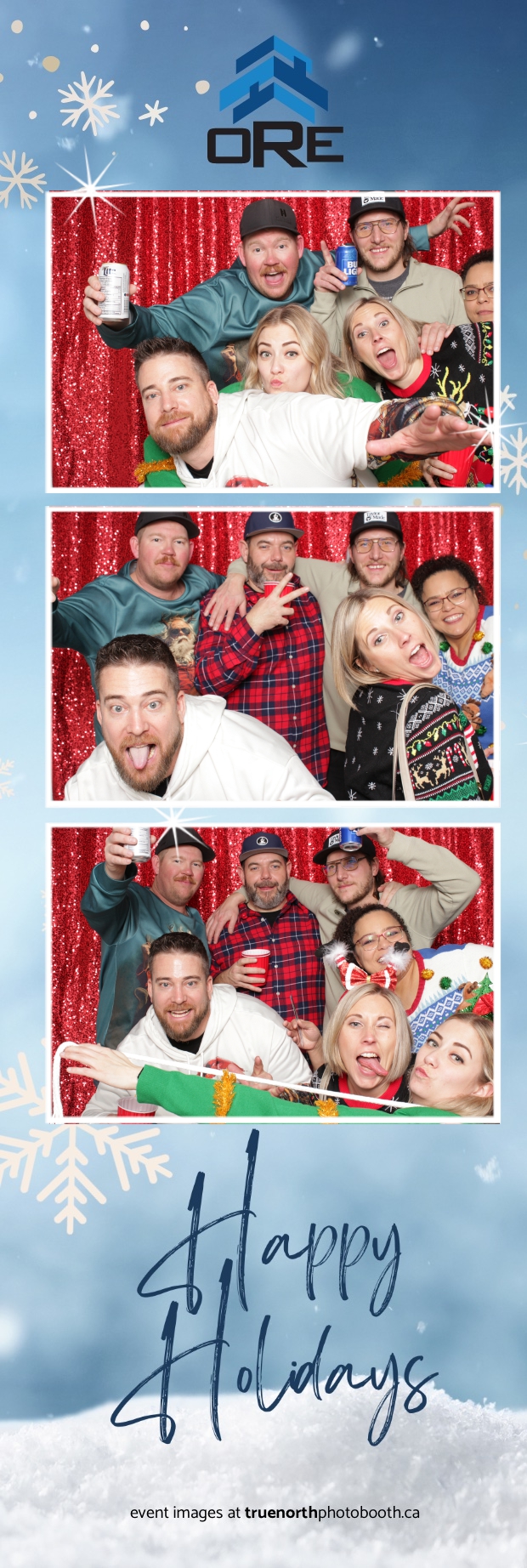 True North Photo Booth added an exciting touch to the festivities with their 2X6 custom photo strip featuring a dazzling red sequin backdrop. Guests lined up to snap fun, festive photos that perfectly captured the party’s energy and holiday vibes. Each photo strip became a cherished keepsake, reminding everyone of the great time they had. True North Photo Booth was thrilled to be part of the celebration, helping to make the event a picture-perfect holiday success!