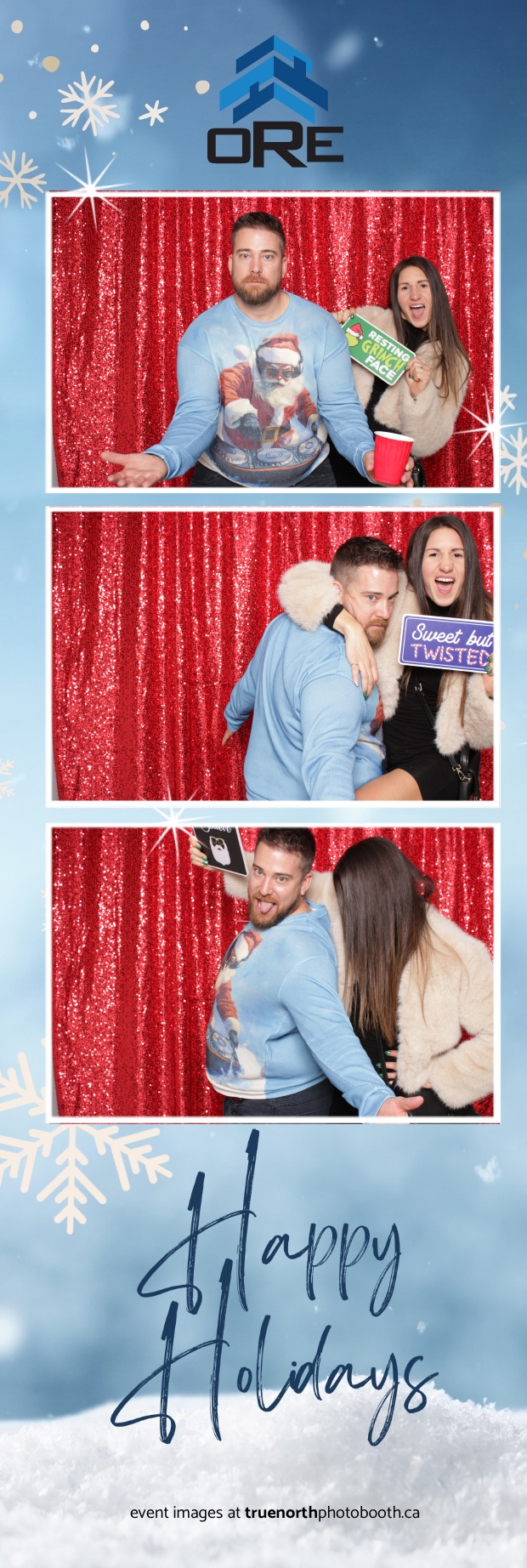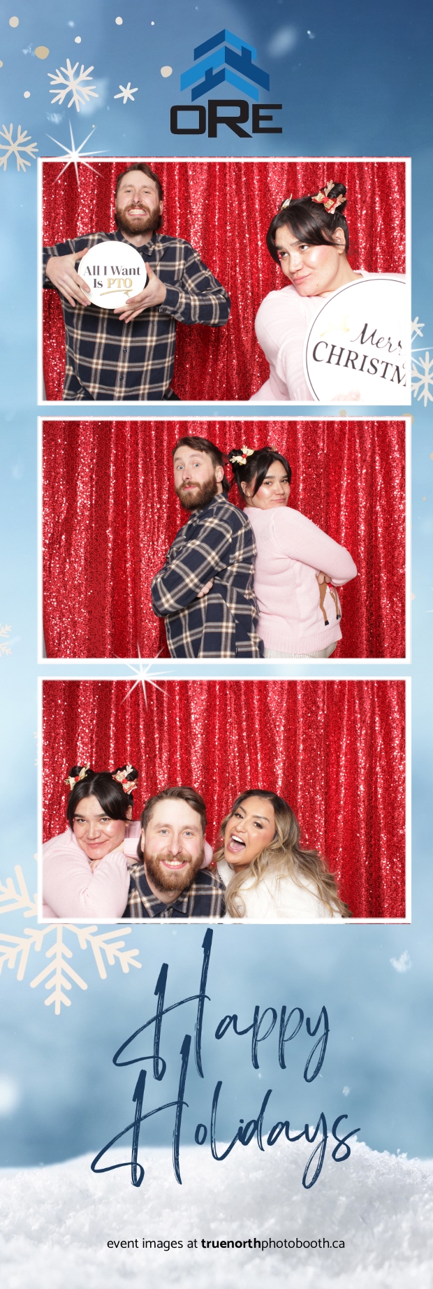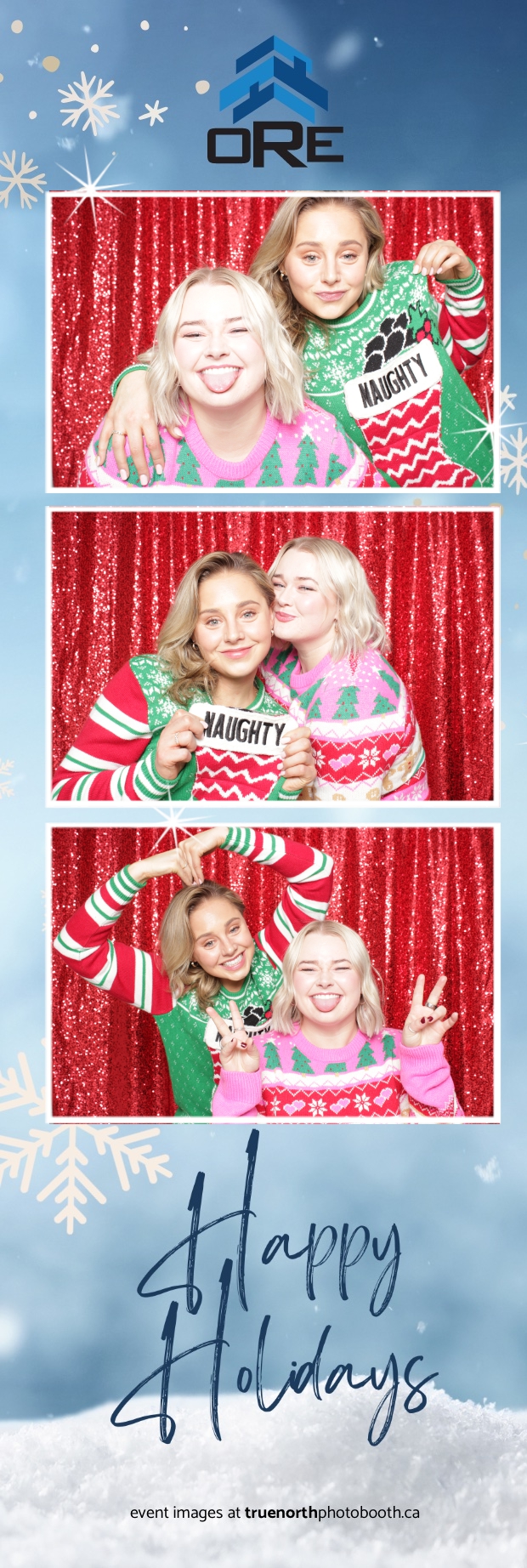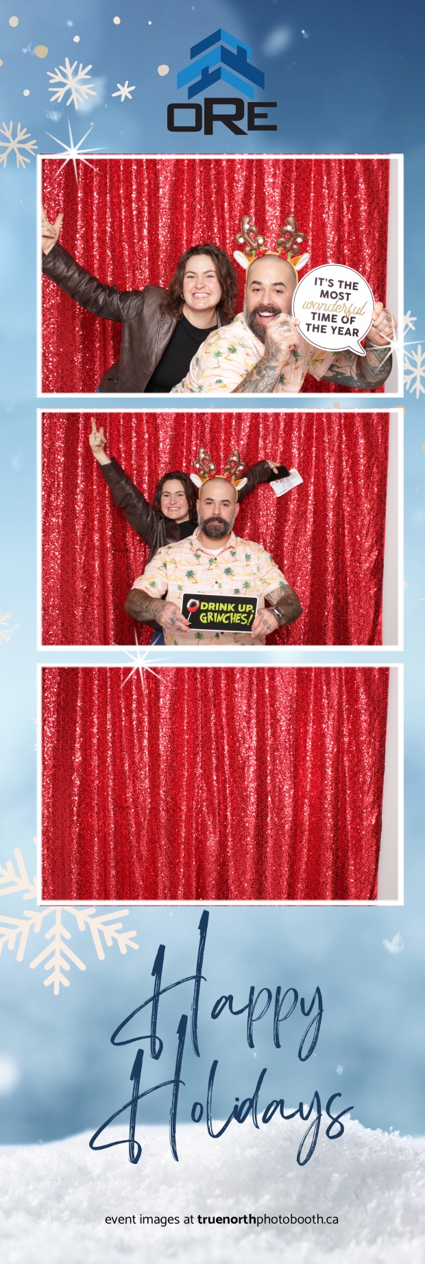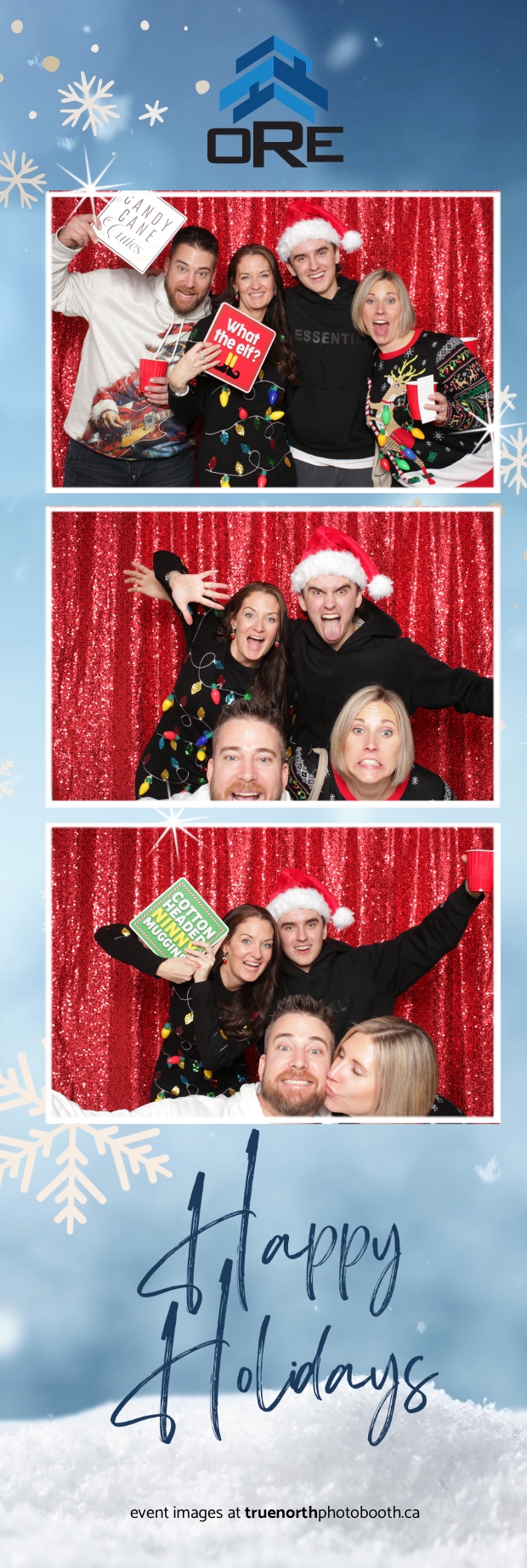 True North Photo Booth added an exciting touch to the festivities with their 2X6 custom photo strip featuring a dazzling red sequin backdrop. Guests lined up to snap fun, festive photos that perfectly captured the party’s energy and holiday vibes. Each photo strip became a cherished keepsake, reminding everyone of the great time they had. True North Photo Booth was thrilled to be part of the celebration, helping to make the event a picture-perfect holiday success!