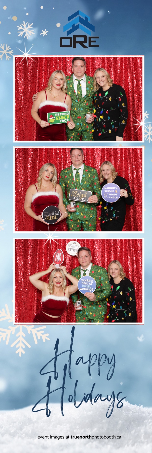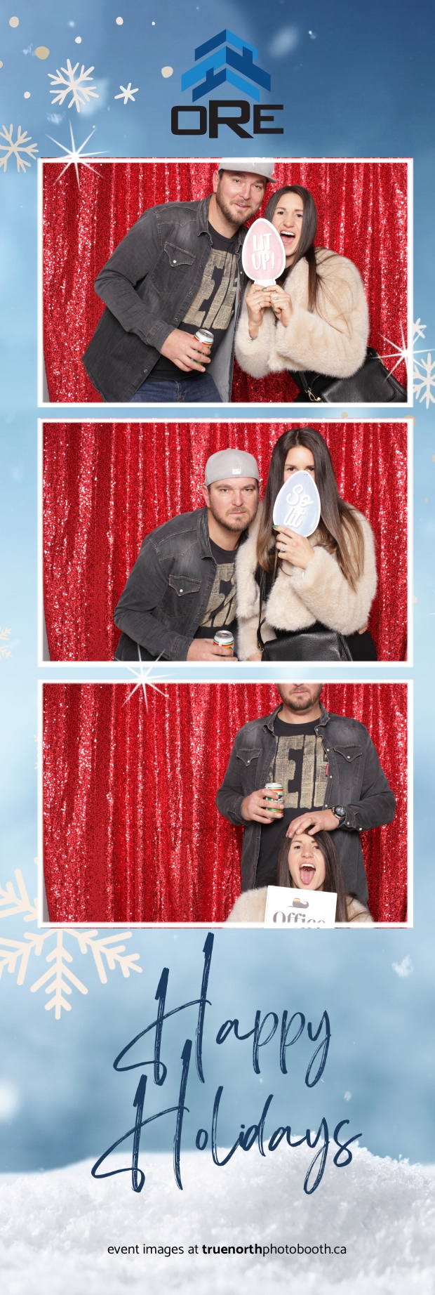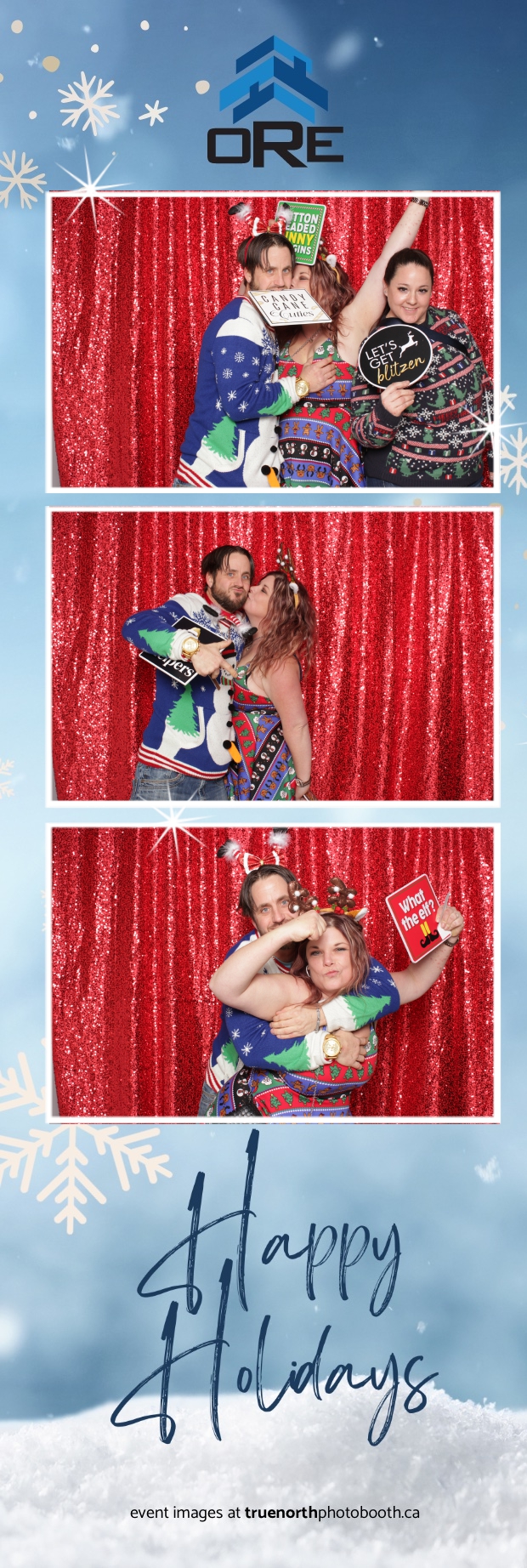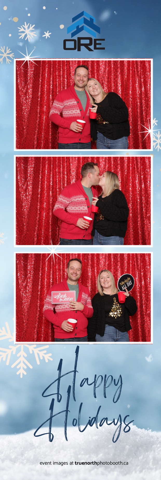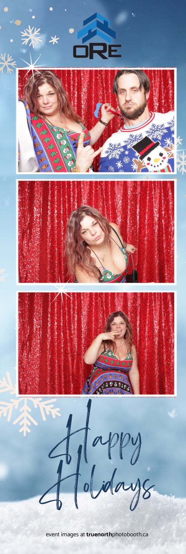 True North Photo Booth added an exciting touch to the festivities with their 2X6 custom photo strip featuring a dazzling red sequin backdrop. Guests lined up to snap fun, festive photos that perfectly captured the party’s energy and holiday vibes. Each photo strip became a cherished keepsake, reminding everyone of the great time they had. True North Photo Booth was thrilled to be part of the celebration, helping to make the event a picture-perfect holiday success!
