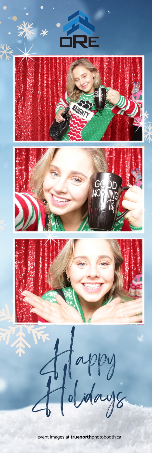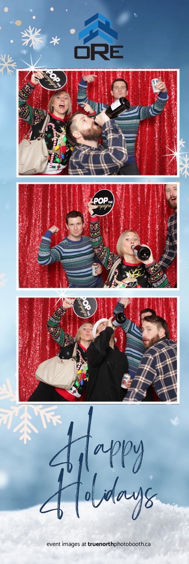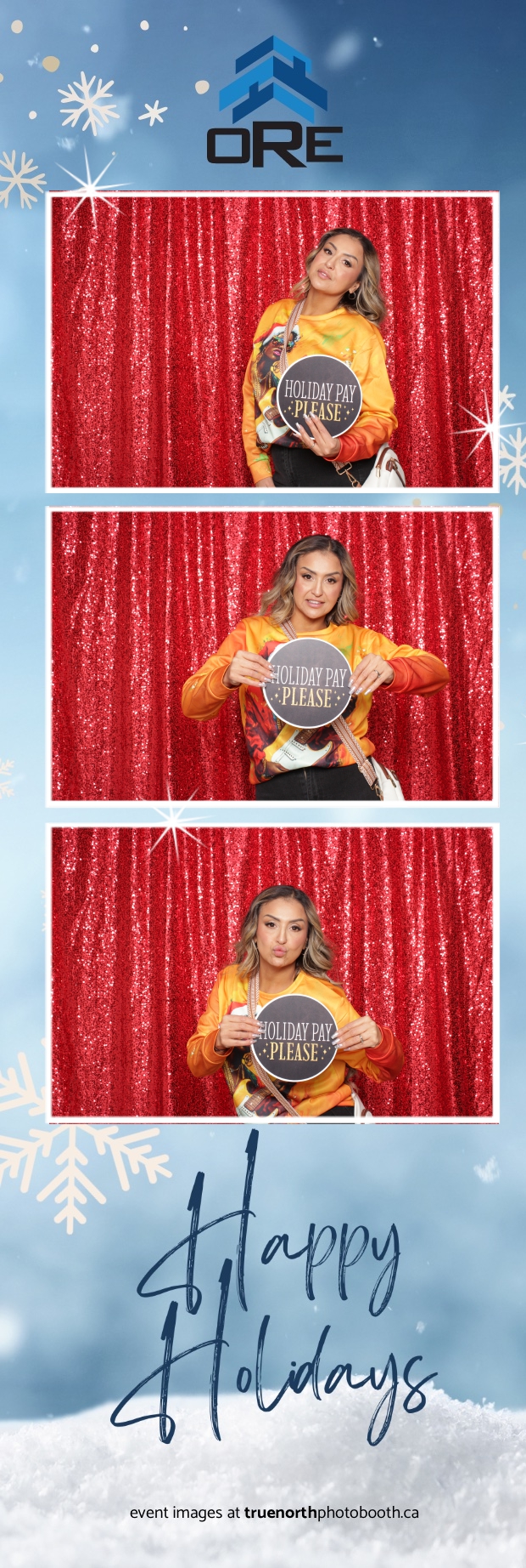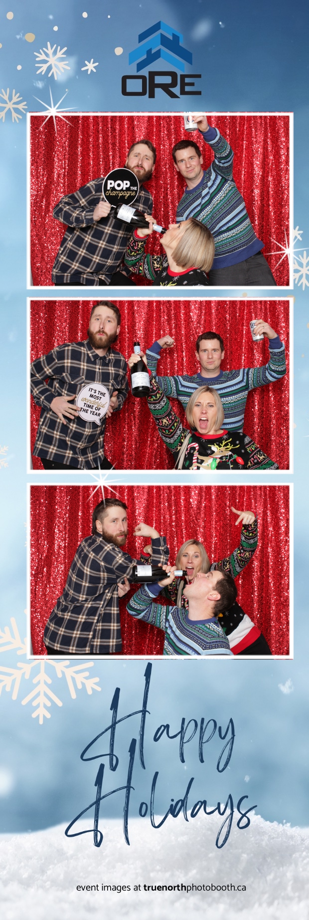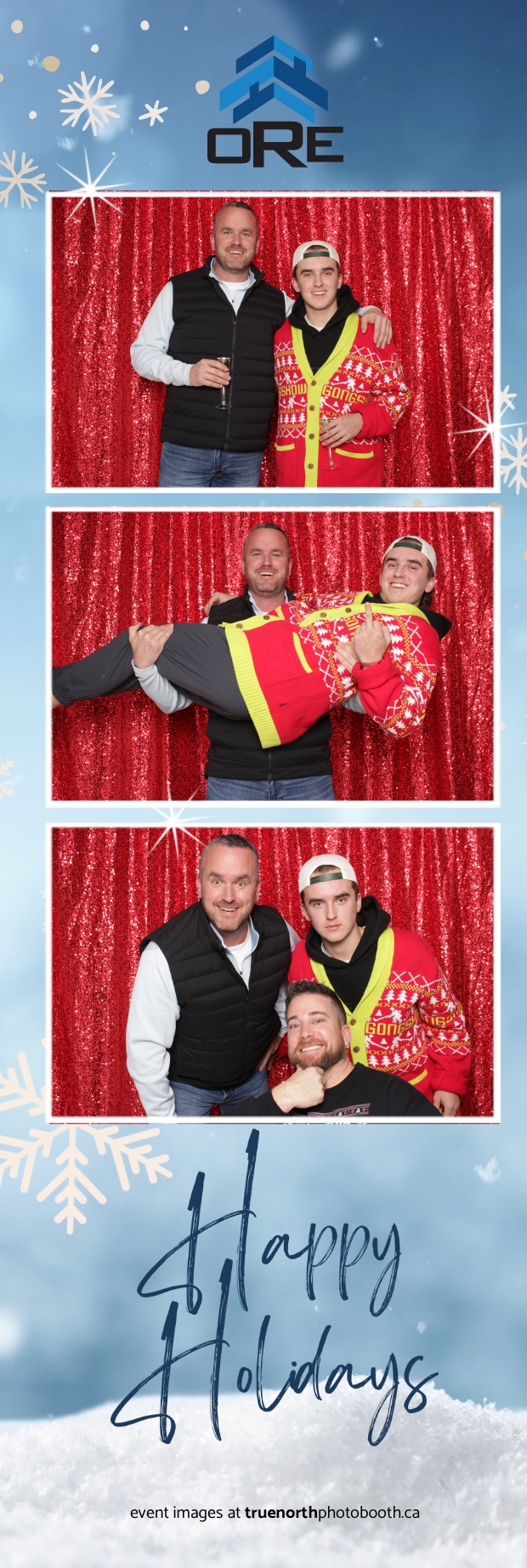 True North Photo Booth added an exciting touch to the festivities with their 2X6 custom photo strip featuring a dazzling red sequin backdrop. Guests lined up to snap fun, festive photos that perfectly captured the party’s energy and holiday vibes. Each photo strip became a cherished keepsake, reminding everyone of the great time they had. True North Photo Booth was thrilled to be part of the celebration, helping to make the event a picture-perfect holiday success!