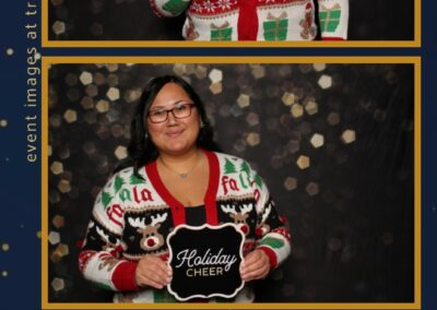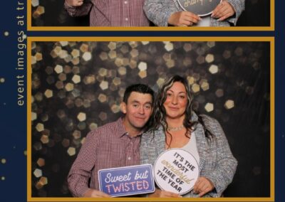 Guests enjoyed capturing the moment at the photo booth, which featured 2X6 custom photo strips paired with a stylish Bokeh pillow backdrop. The warm, elegant photo setup added a fun and interactive element to the celebration, giving everyone a keepsake to remember a wonderful night spent celebrating together.