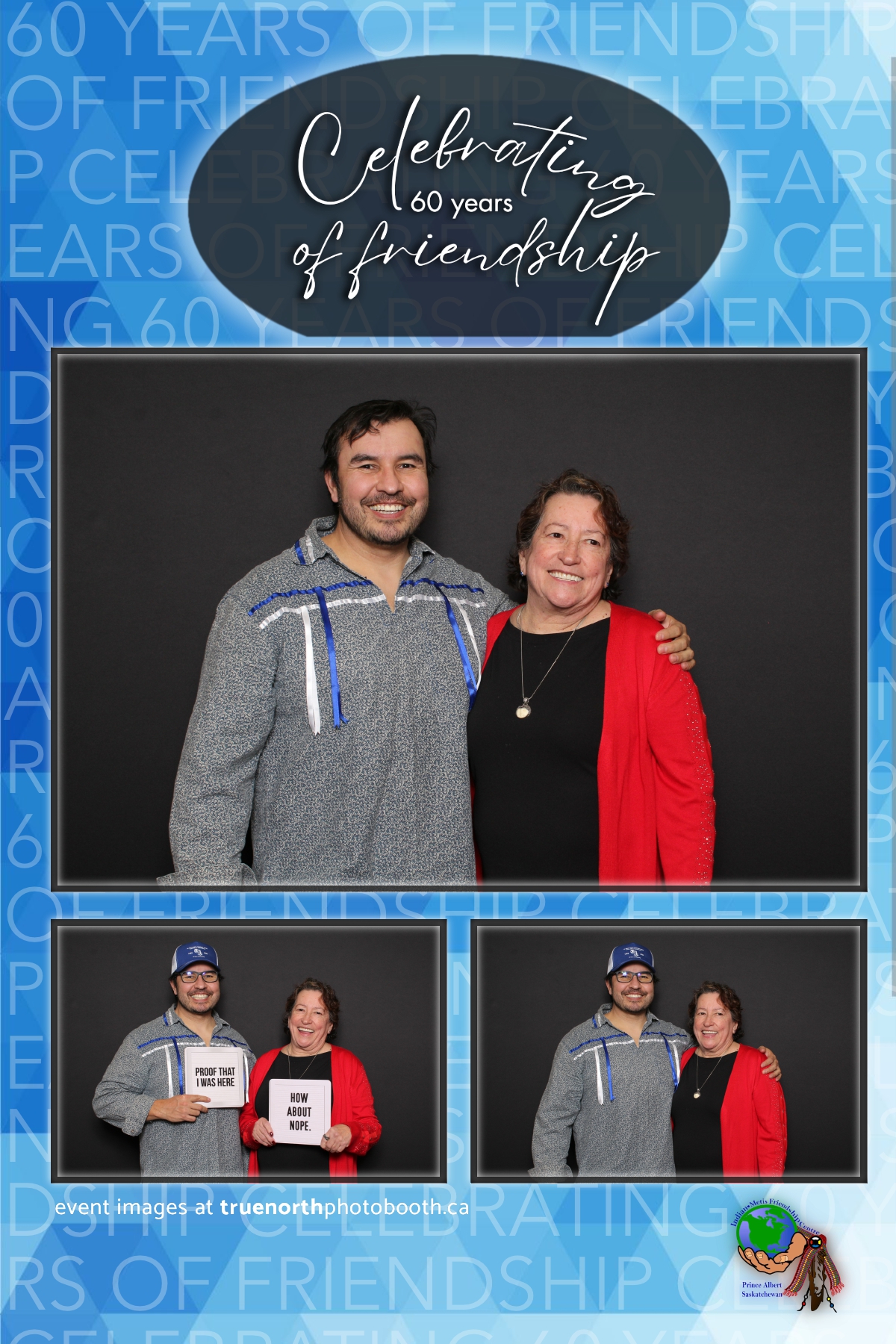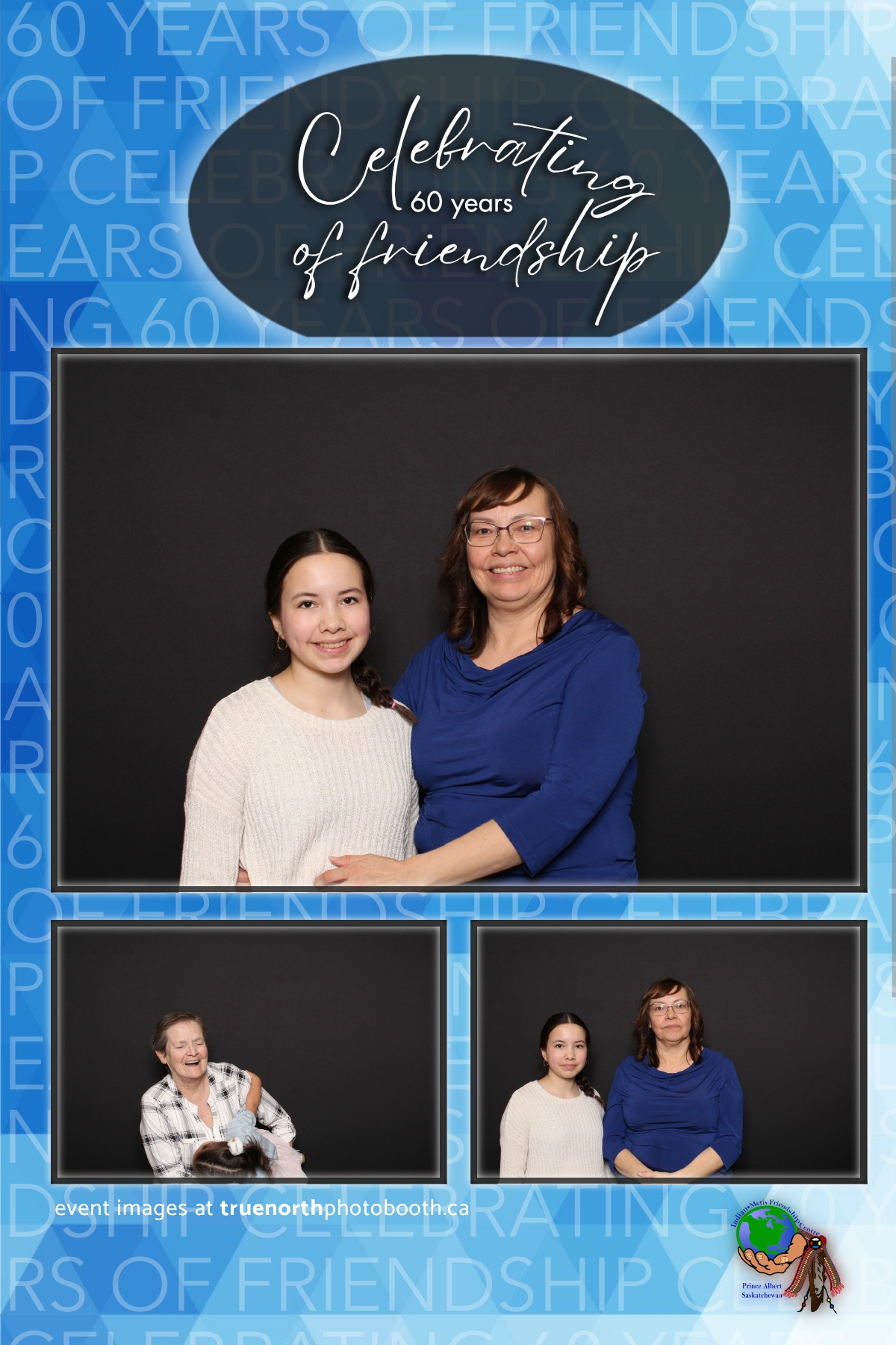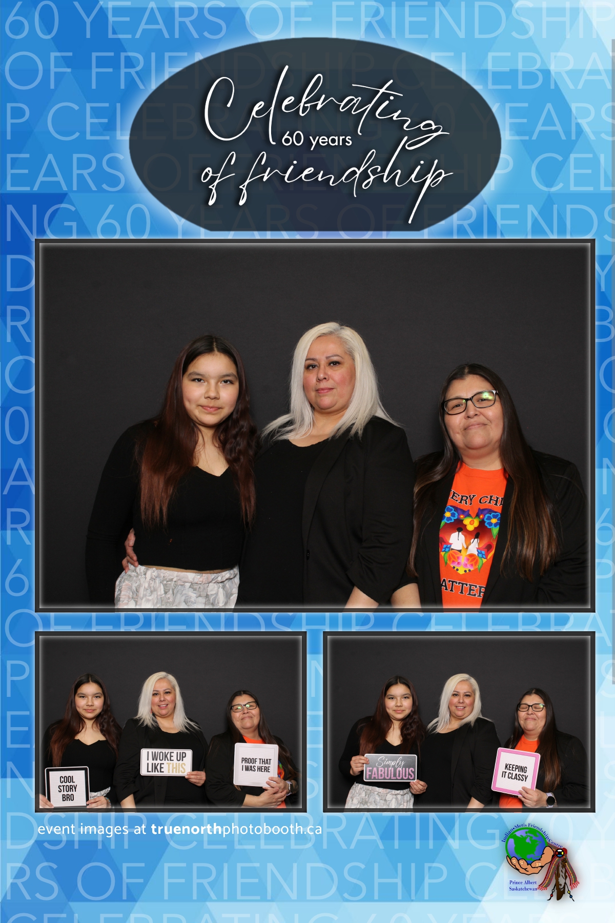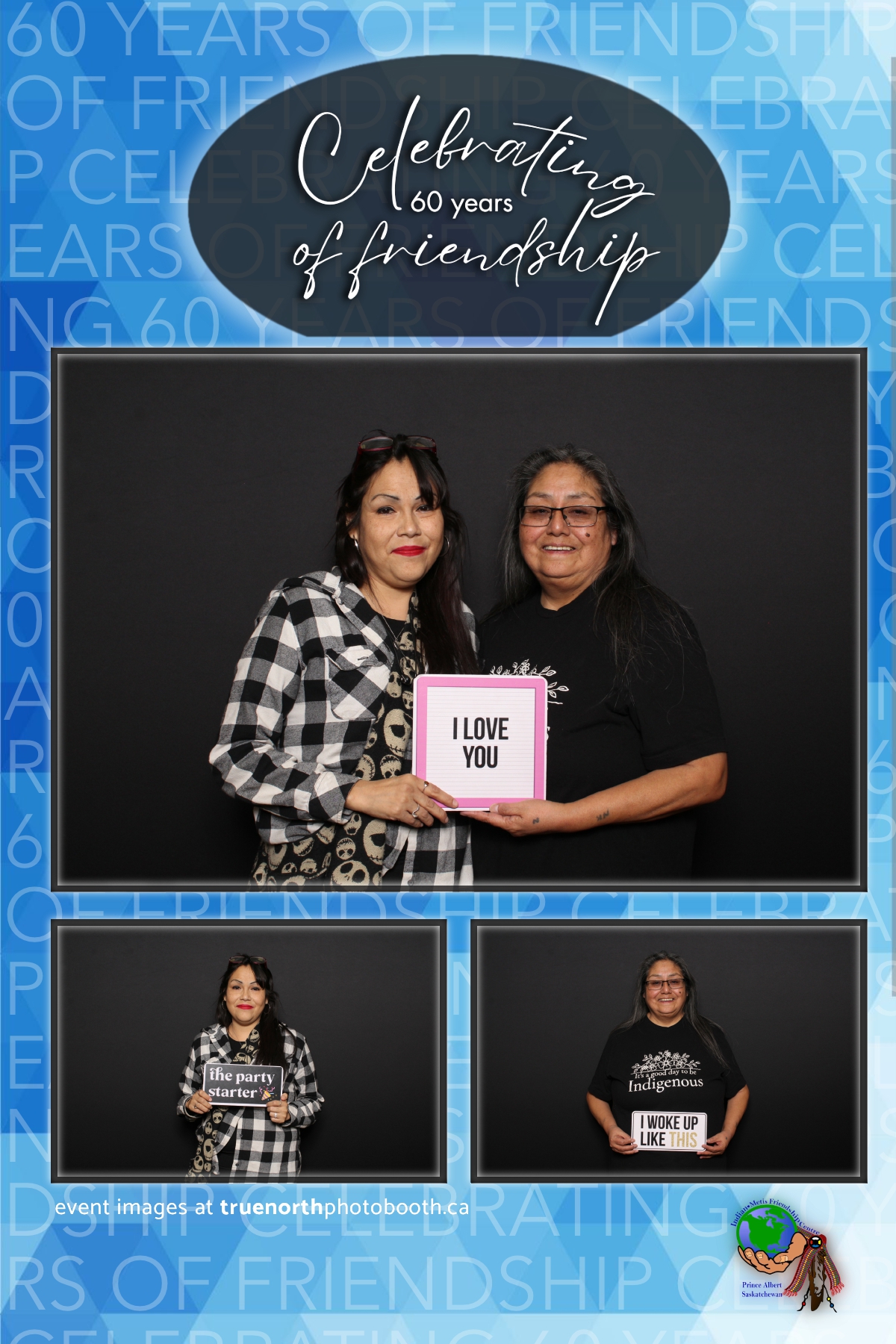 The Prince Albert Indian Metis Friendship Centre celebrated a remarkable milestone of “60 Years of Friendship” at Prairieland Park in Saskatoon, bringing together generations of community members to honor this enduring legacy. True North Photo Booth was thrilled to be part of this joyous occasion, capturing the spirit of camaraderie and celebration with their innovative photo booth experiences. From the classic 4X6 custom photo strips to the elegant black pillow backdrops, True North Photo Booth provided attendees with the perfect backdrop to create lasting memories.