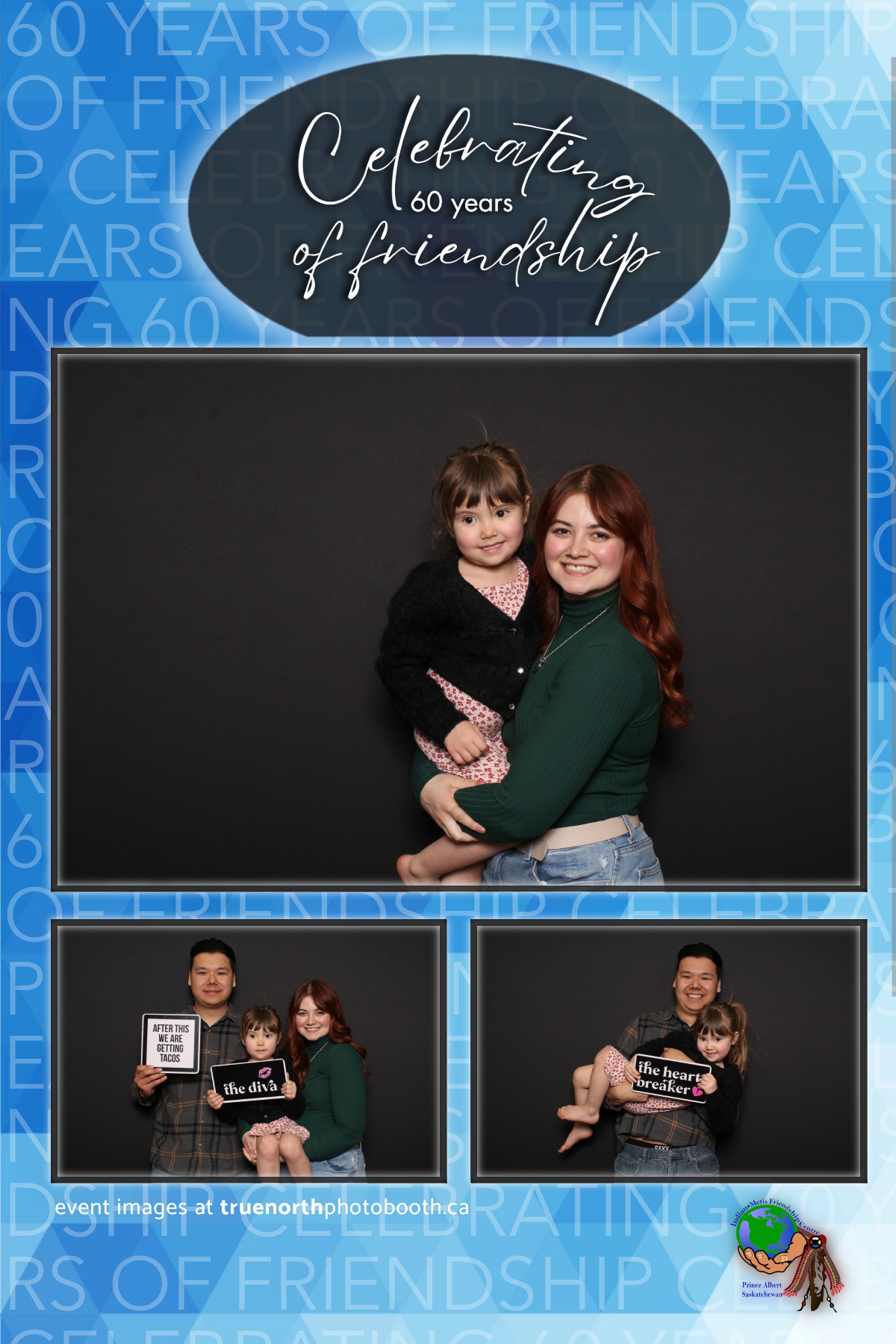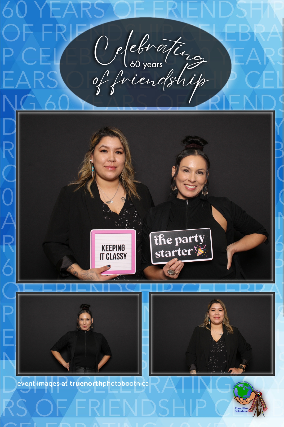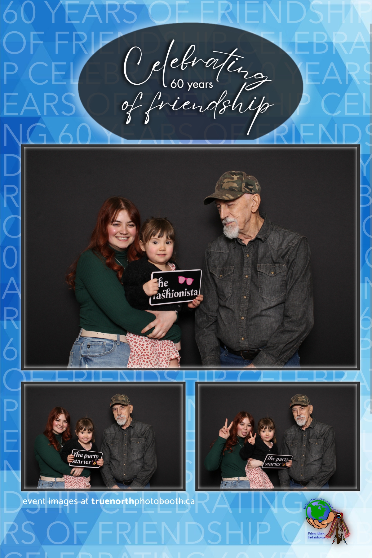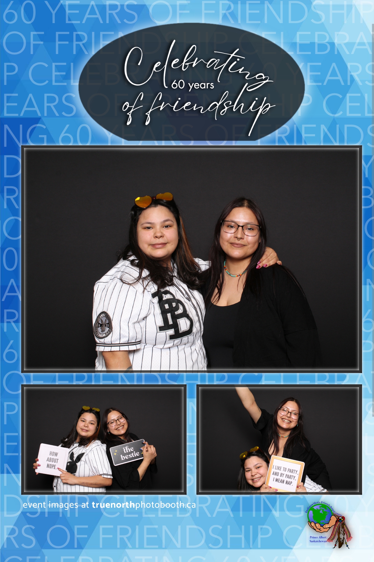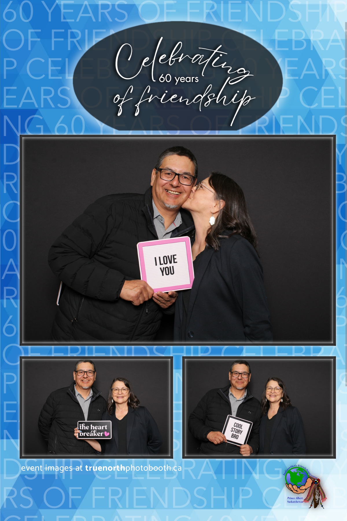 The Prince Albert Indian Metis Friendship Centre celebrated a remarkable milestone of “60 Years of Friendship” at Prairieland Park in Saskatoon, bringing together generations of community members to honor this enduring legacy. True North Photo Booth was thrilled to be part of this joyous occasion, capturing the spirit of camaraderie and celebration with their innovative photo booth experiences. From the classic 4X6 custom photo strips to the elegant black pillow backdrops, True North Photo Booth provided attendees with the perfect backdrop to create lasting memories.