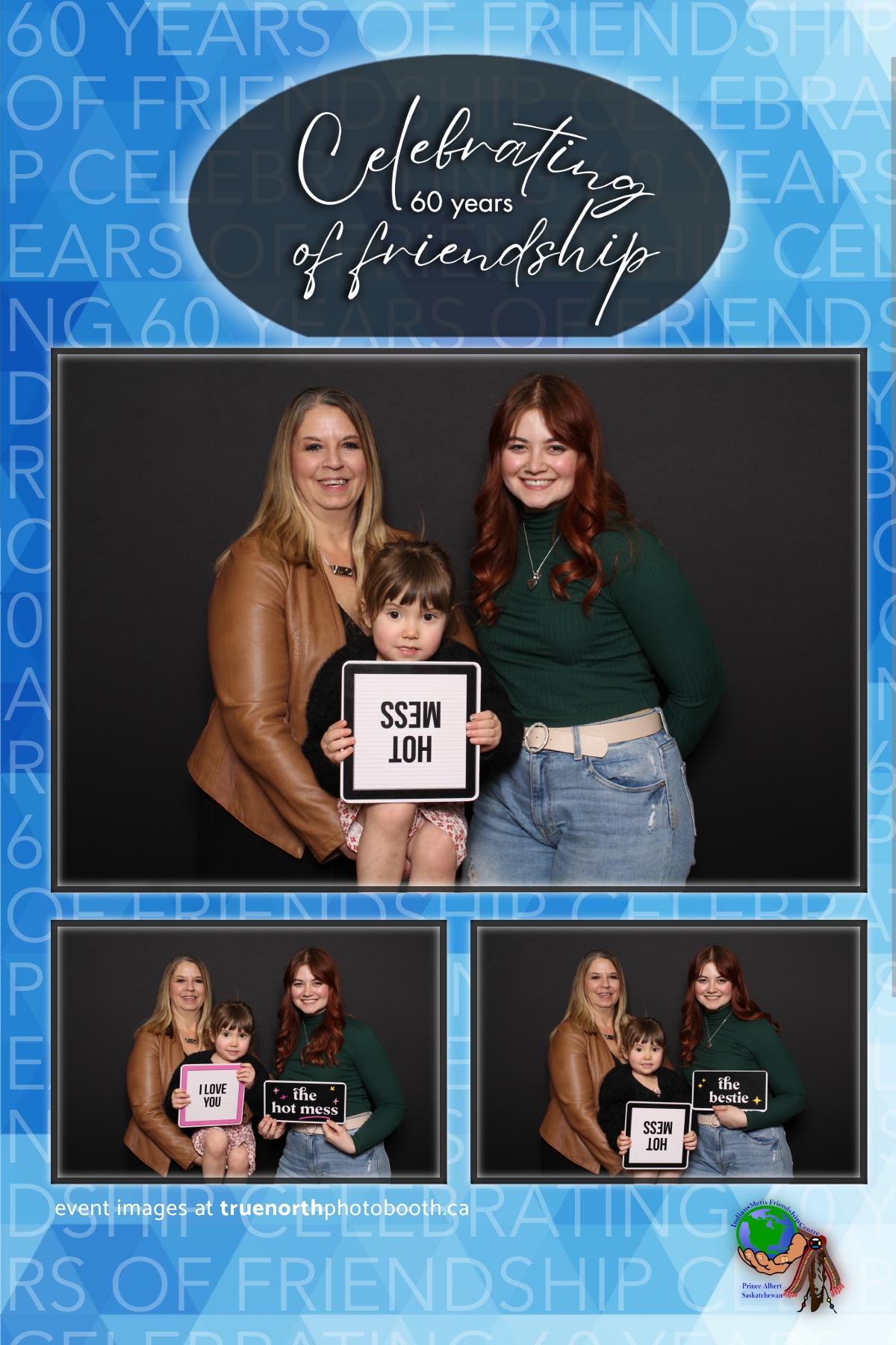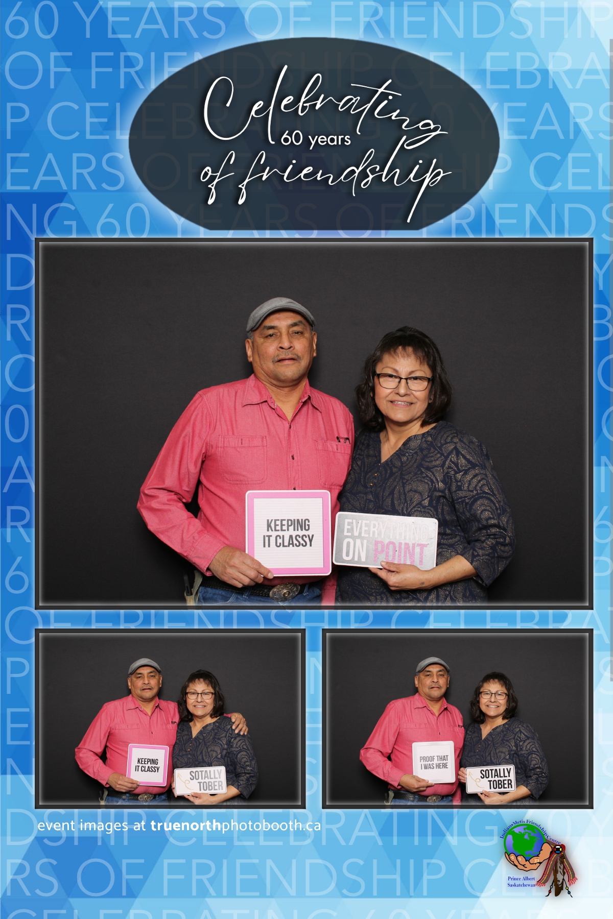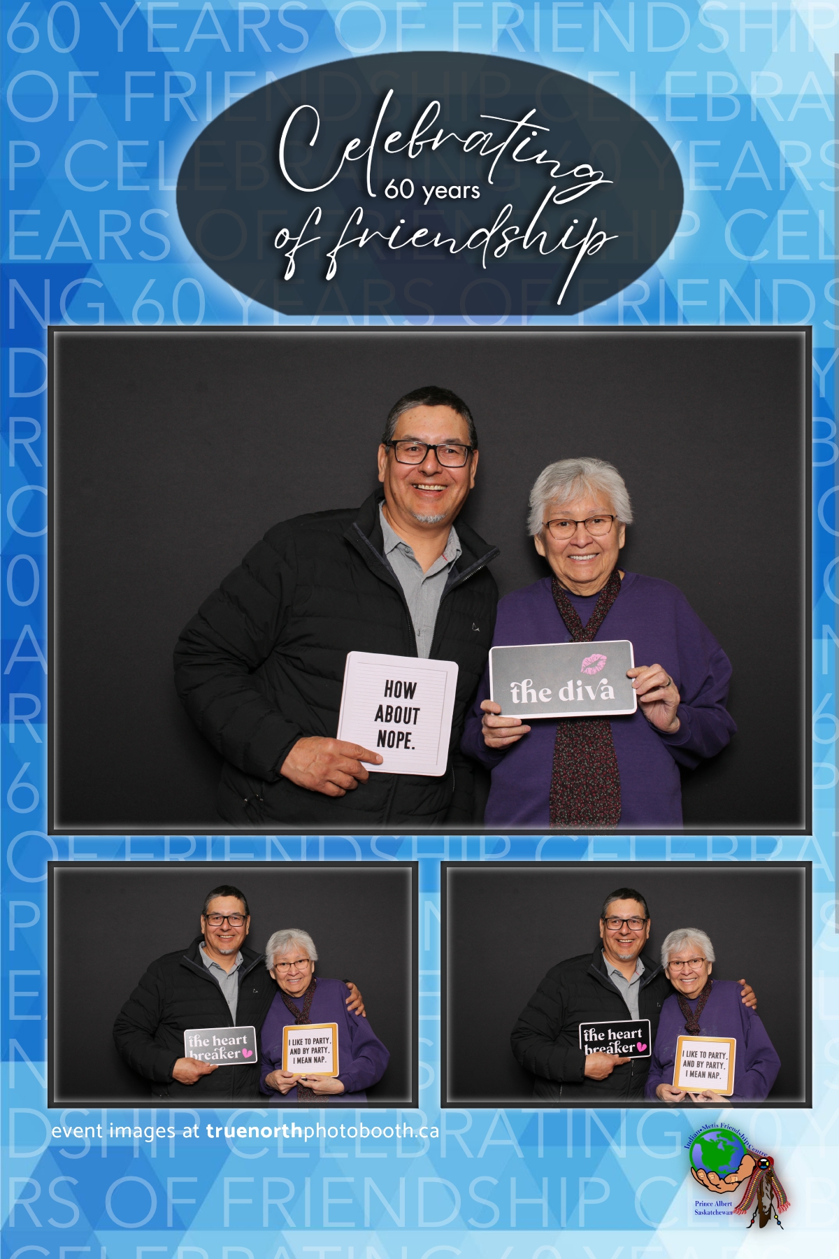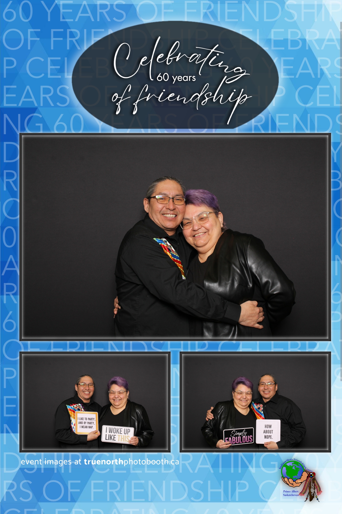 The Prince Albert Indian Metis Friendship Centre celebrated a remarkable milestone of “60 Years of Friendship” at Prairieland Park in Saskatoon, bringing together generations of community members to honor this enduring legacy. True North Photo Booth was thrilled to be part of this joyous occasion, capturing the spirit of camaraderie and celebration with their innovative photo booth experiences. From the classic 4X6 custom photo strips to the elegant black pillow backdrops, True North Photo Booth provided attendees with the perfect backdrop to create lasting memories.