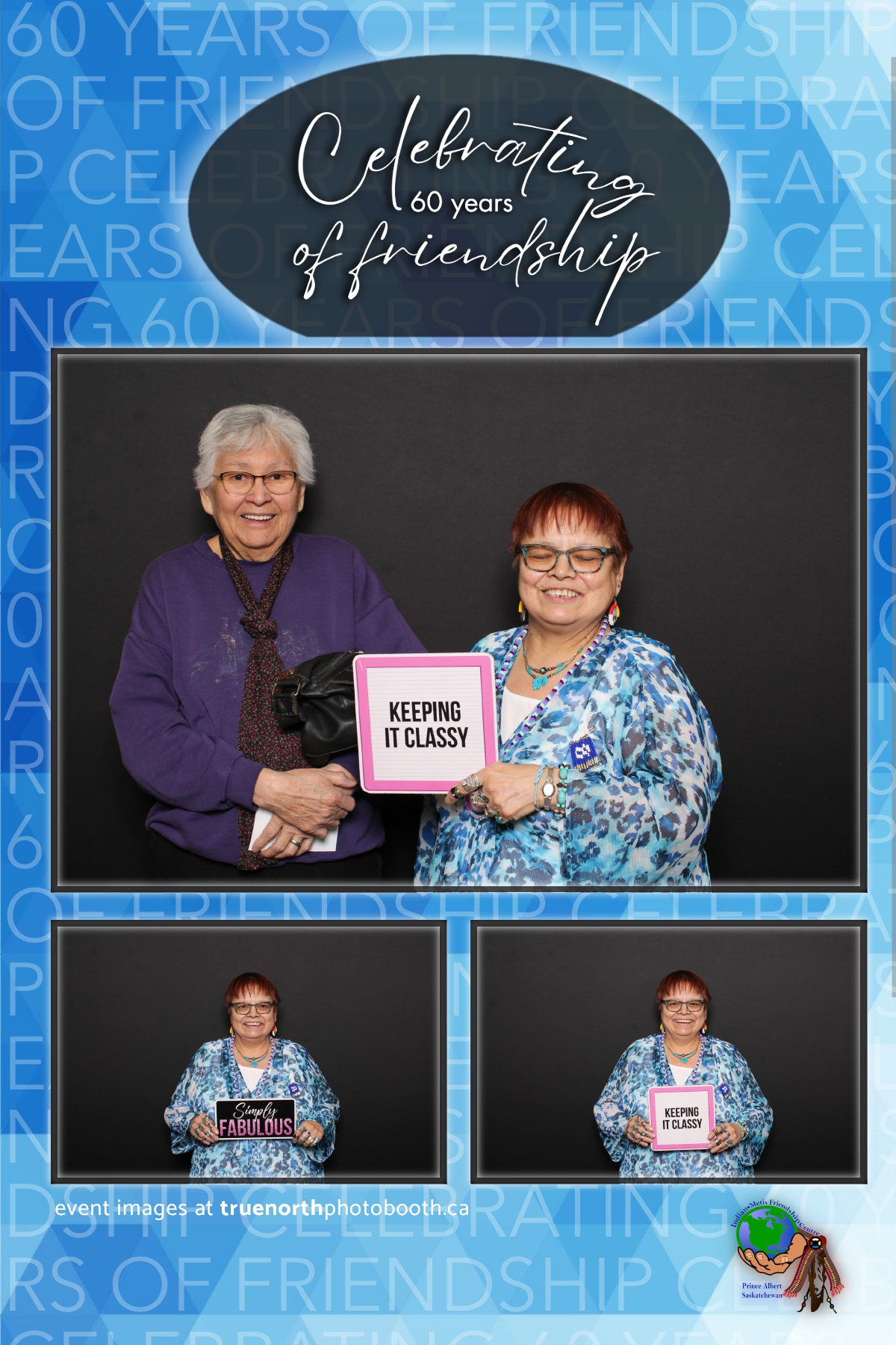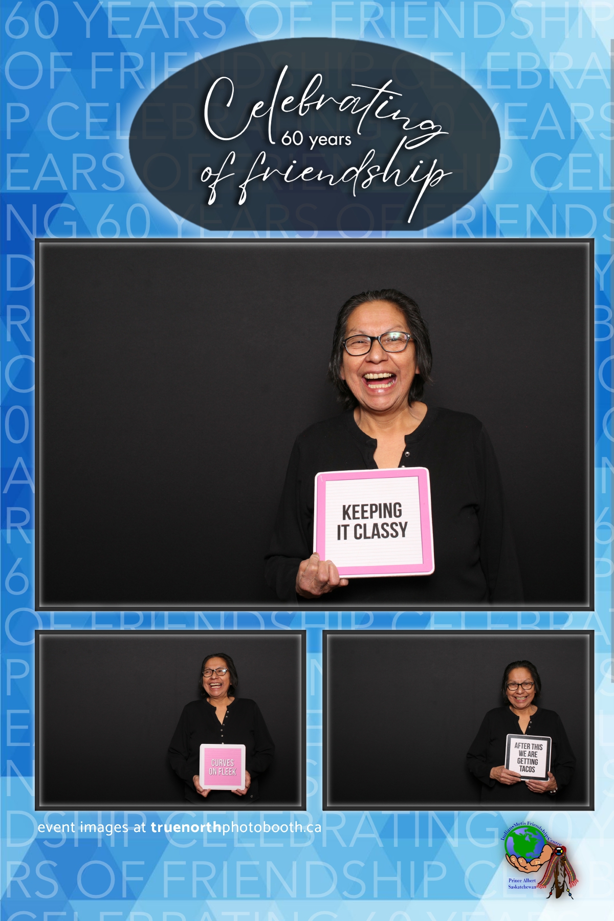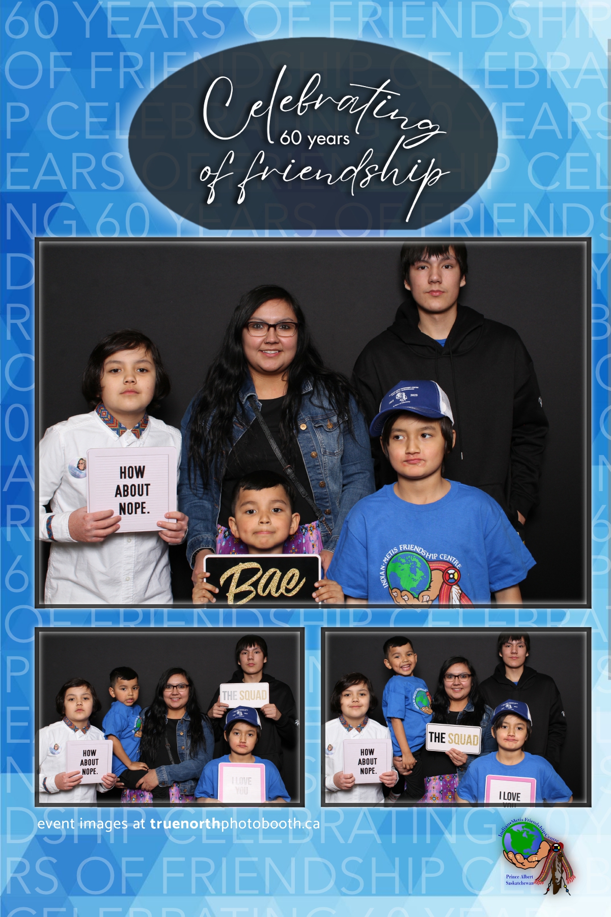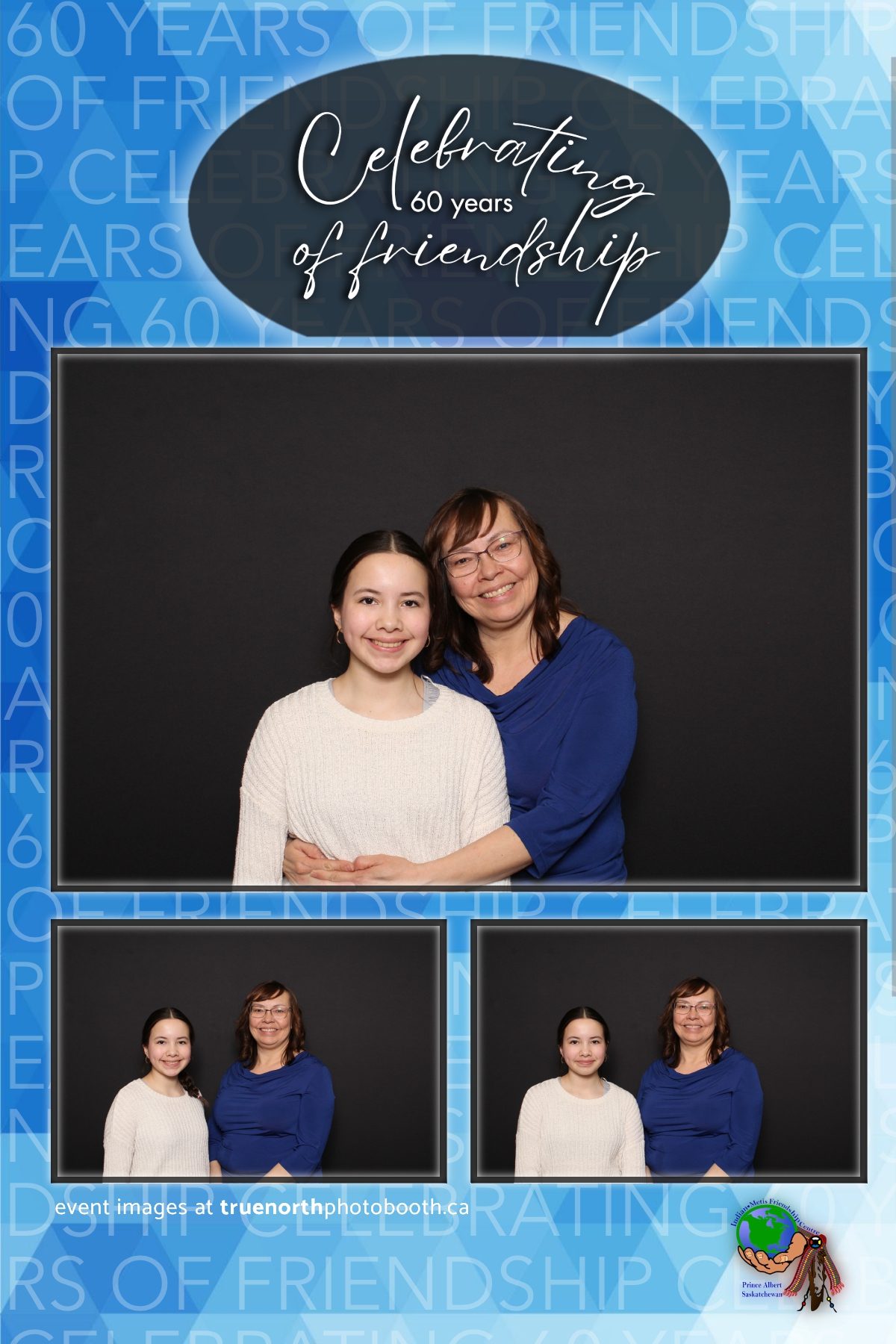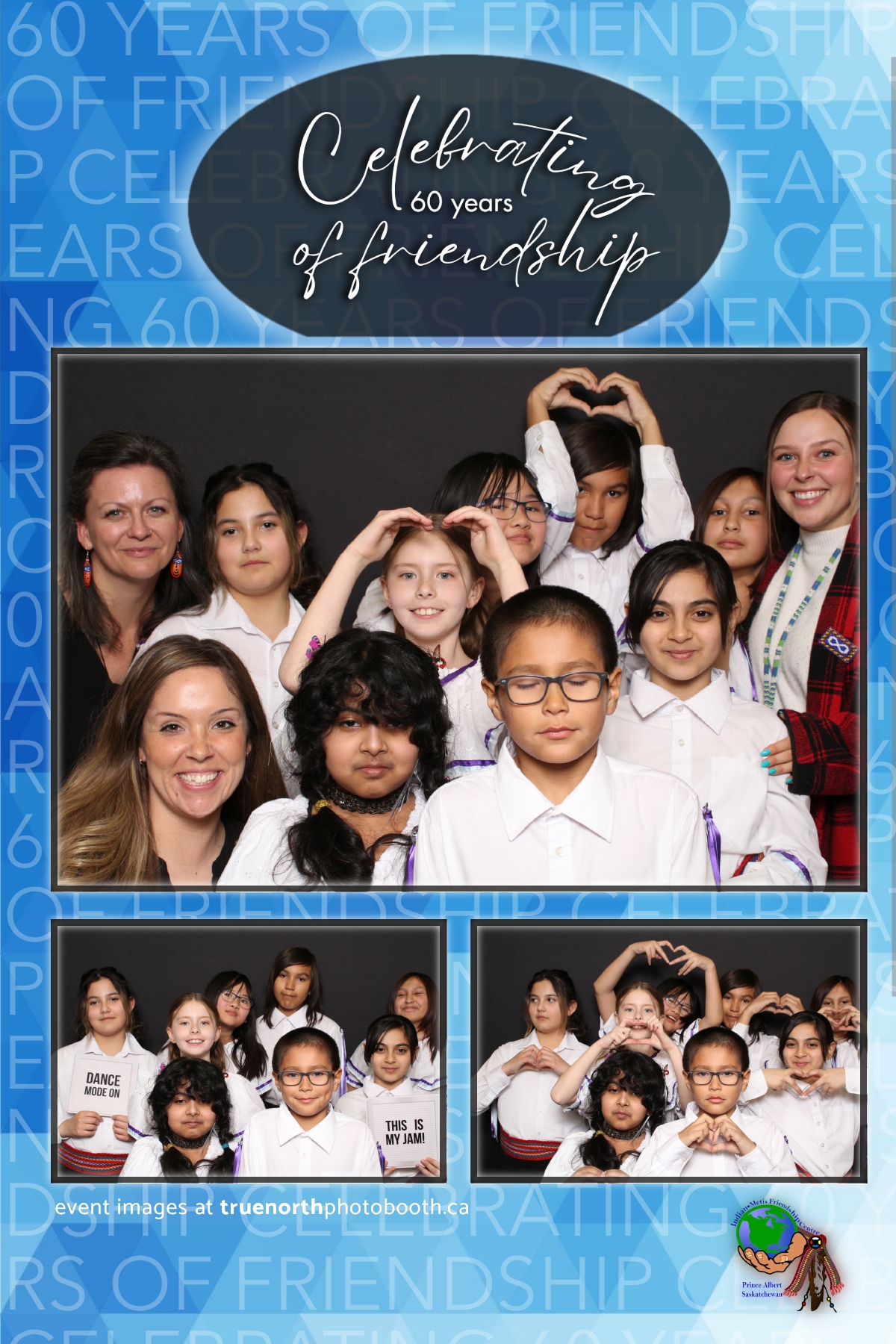 The Prince Albert Indian Metis Friendship Centre celebrated a remarkable milestone of “60 Years of Friendship” at Prairieland Park in Saskatoon, bringing together generations of community members to honor this enduring legacy. True North Photo Booth was thrilled to be part of this joyous occasion, capturing the spirit of camaraderie and celebration with their innovative photo booth experiences. From the classic 4X6 custom photo strips to the elegant black pillow backdrops, True North Photo Booth provided attendees with the perfect backdrop to create lasting memories.