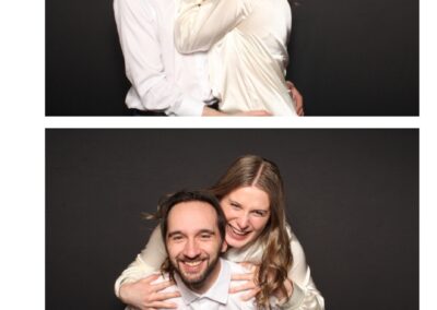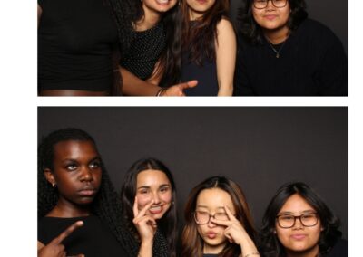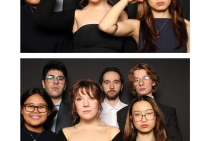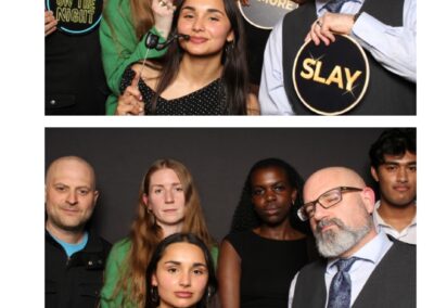 Guests made the most of the interactive photo booth, capturing moments with 2X6 custom photo strips against a sleek black pillow backdrop. The clean and modern setup added a polished touch to every photo, giving attendees fun and lasting keepsakes from an evening filled with great energy and connection.