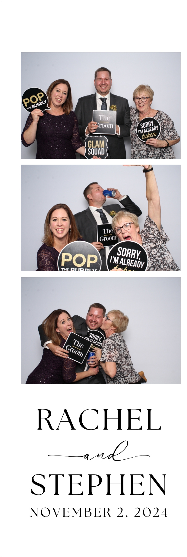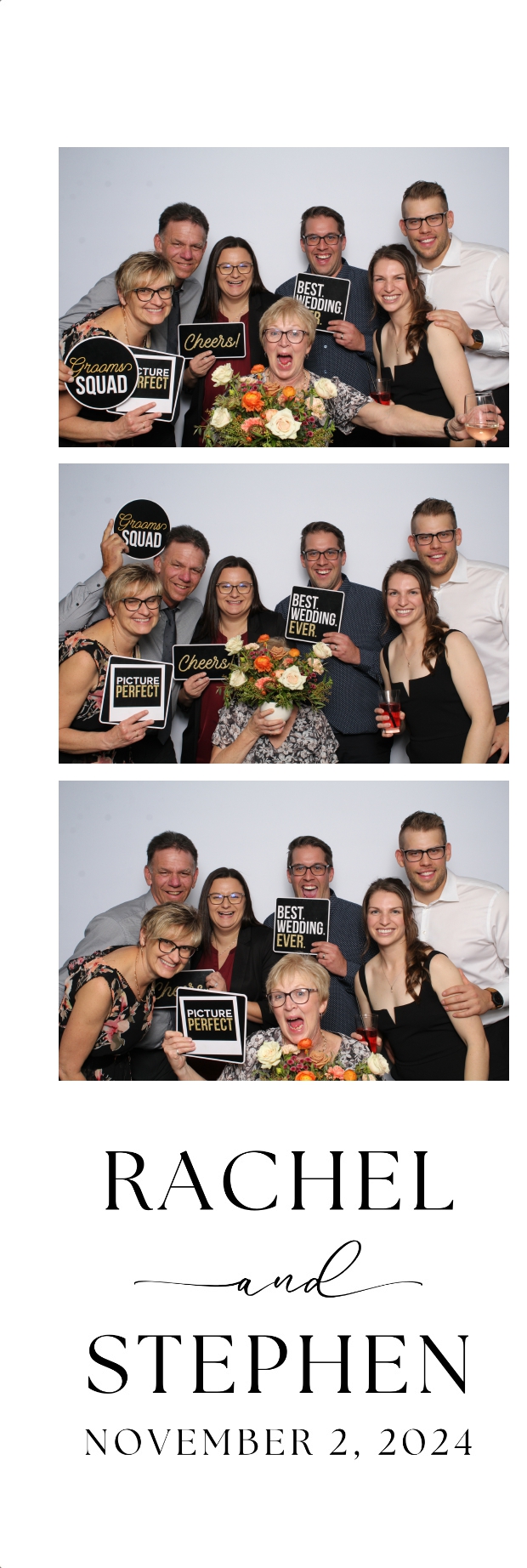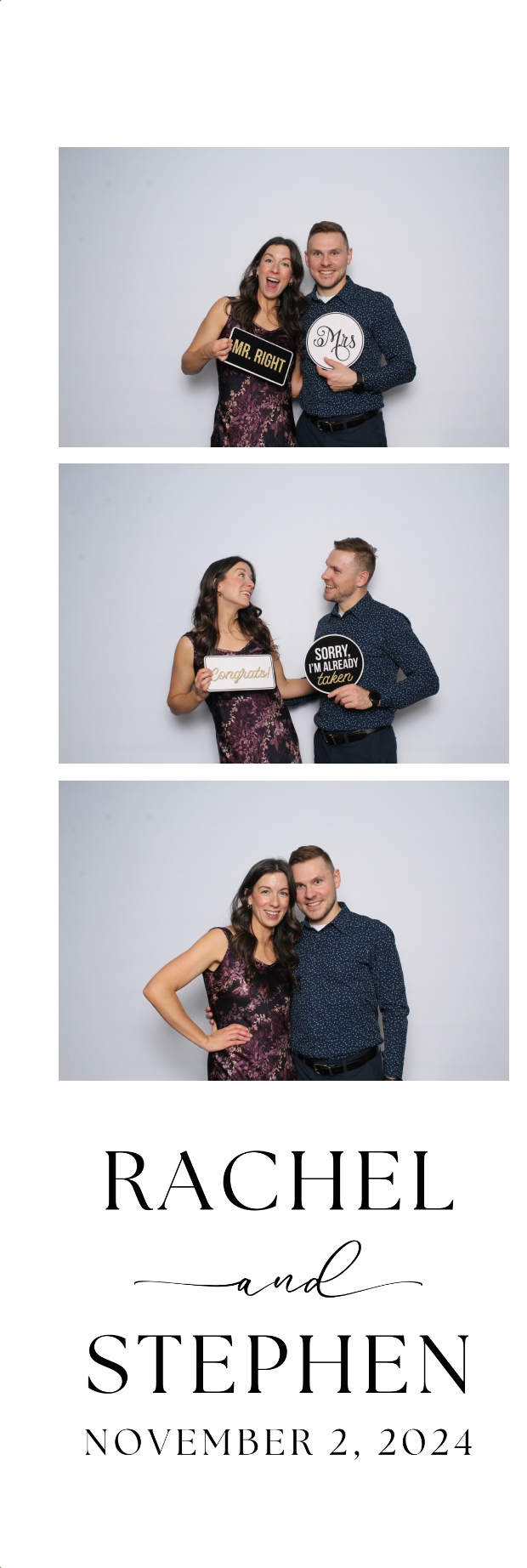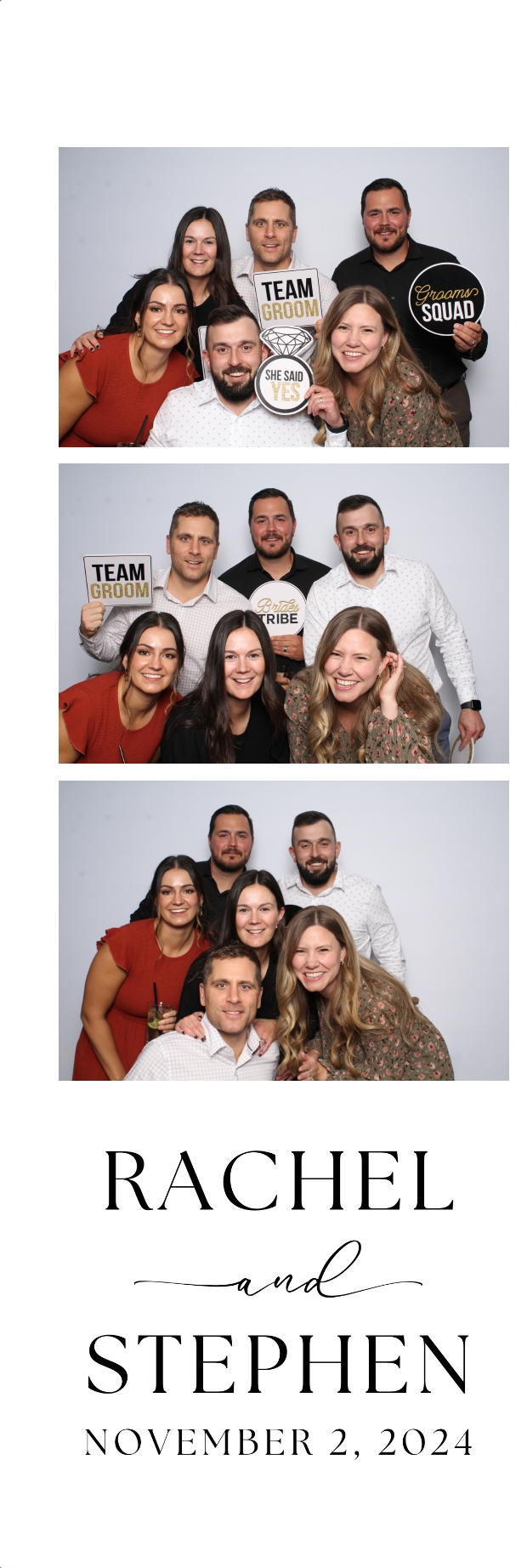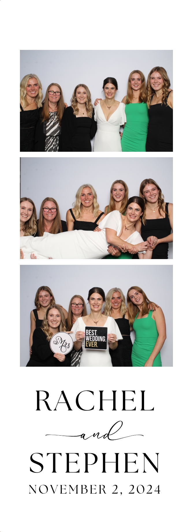 Our 2X6 custom photo strip with the white pillow backdrop was a huge hit, capturing all the happy smiles, silly poses, and cherished moments. Guests loved stepping into the booth to create keepsakes that Rachel and Stephen could treasure forever. From playful group shots to romantic couple snaps, the booth was buzzing with excitement all night. True North Photo Booth was honored to help make Rachel & Stephen’s wedding a truly memorable occasion at Saskatoon’s stunning golf and country club!