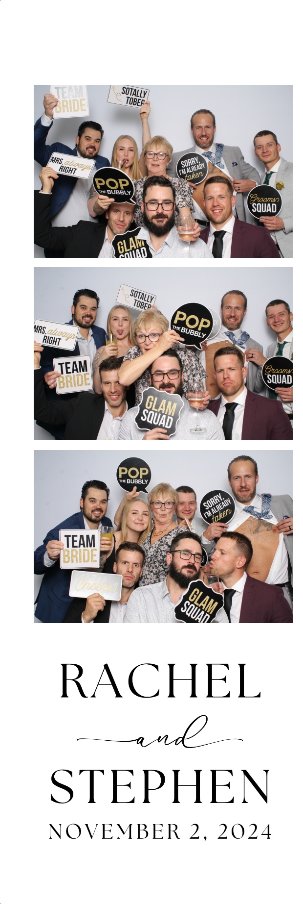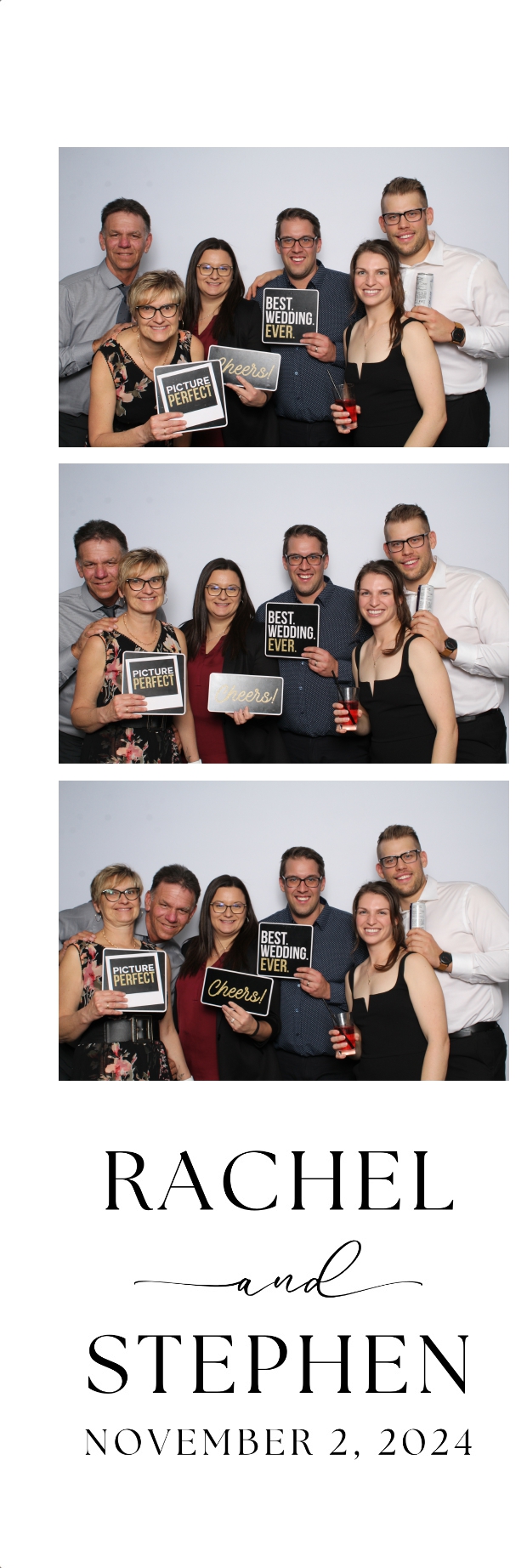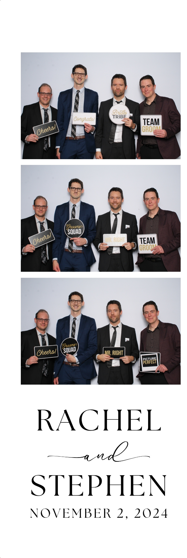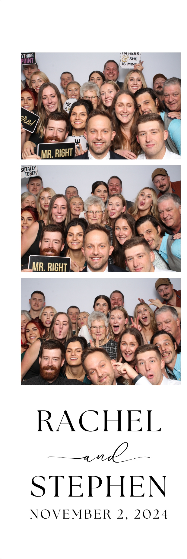 Our 2X6 custom photo strip with the white pillow backdrop was a huge hit, capturing all the happy smiles, silly poses, and cherished moments. Guests loved stepping into the booth to create keepsakes that Rachel and Stephen could treasure forever. From playful group shots to romantic couple snaps, the booth was buzzing with excitement all night. True North Photo Booth was honored to help make Rachel & Stephen’s wedding a truly memorable occasion at Saskatoon’s stunning golf and country club!