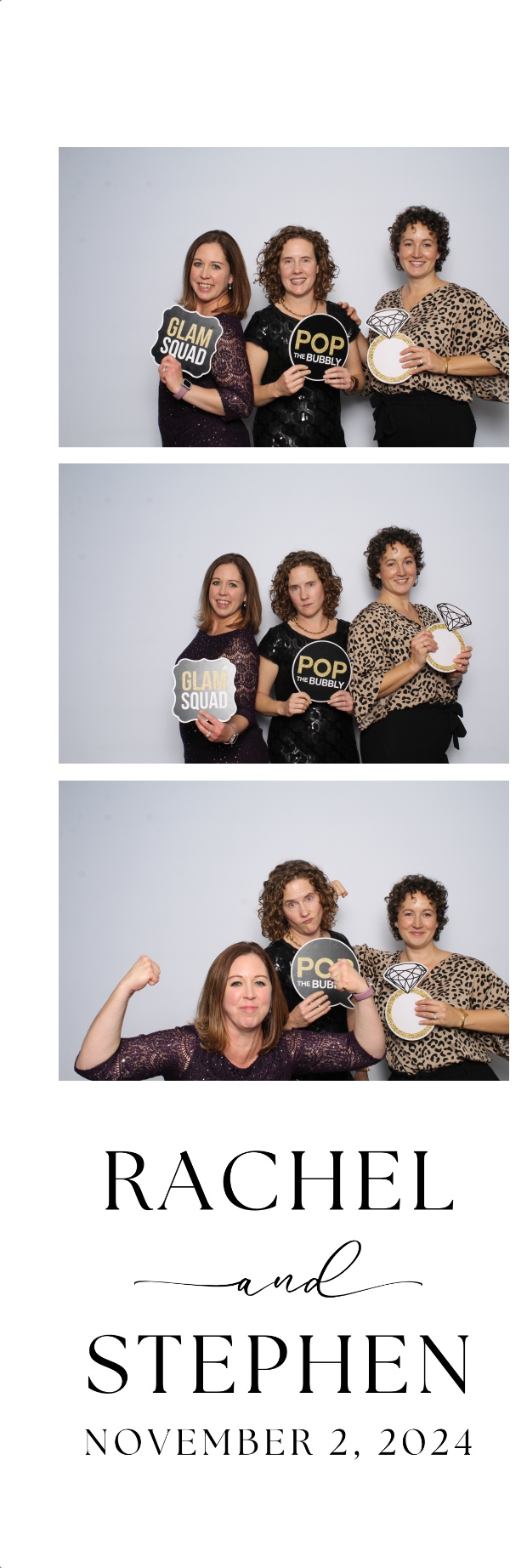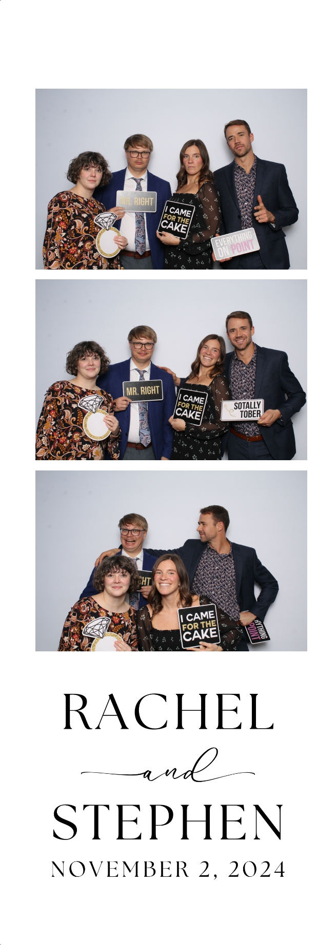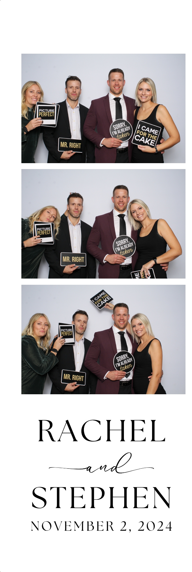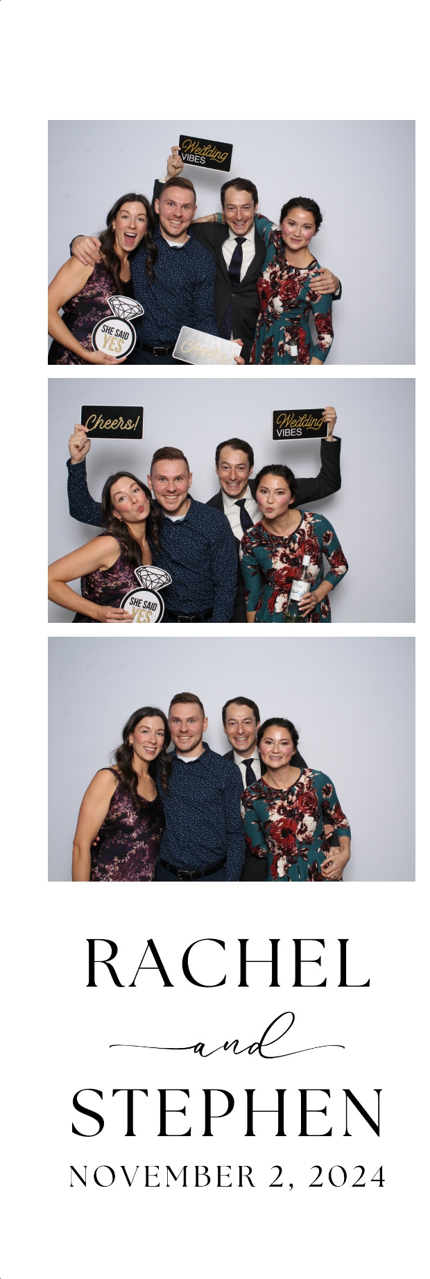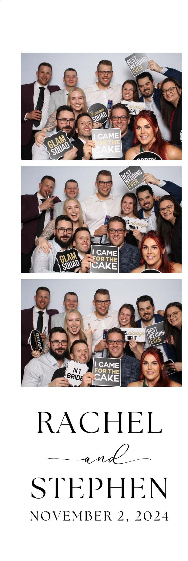 Our 2X6 custom photo strip with the white pillow backdrop was a huge hit, capturing all the happy smiles, silly poses, and cherished moments. Guests loved stepping into the booth to create keepsakes that Rachel and Stephen could treasure forever. From playful group shots to romantic couple snaps, the booth was buzzing with excitement all night. True North Photo Booth was honored to help make Rachel & Stephen’s wedding a truly memorable occasion at Saskatoon’s stunning golf and country club!