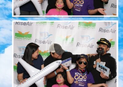 The energy at the terminal was electric, with laughter and smiles filling the space as guests enjoyed the festivities. True North Photo Booth’s presence added a lively touch, with its sleek setup and vibrant custom backdrop complementing the day’s fun activities. The event perfectly showcased the family-oriented culture of Rise Air, and True North was honored to help make those memories even more special with our signature photo booth experience!