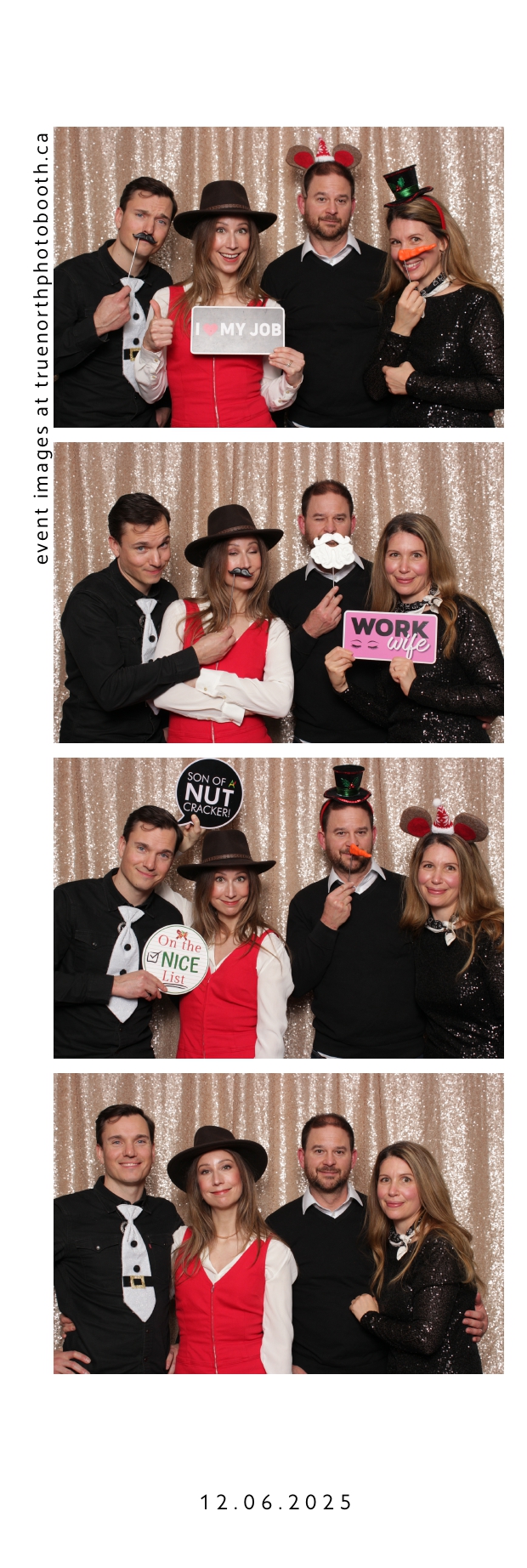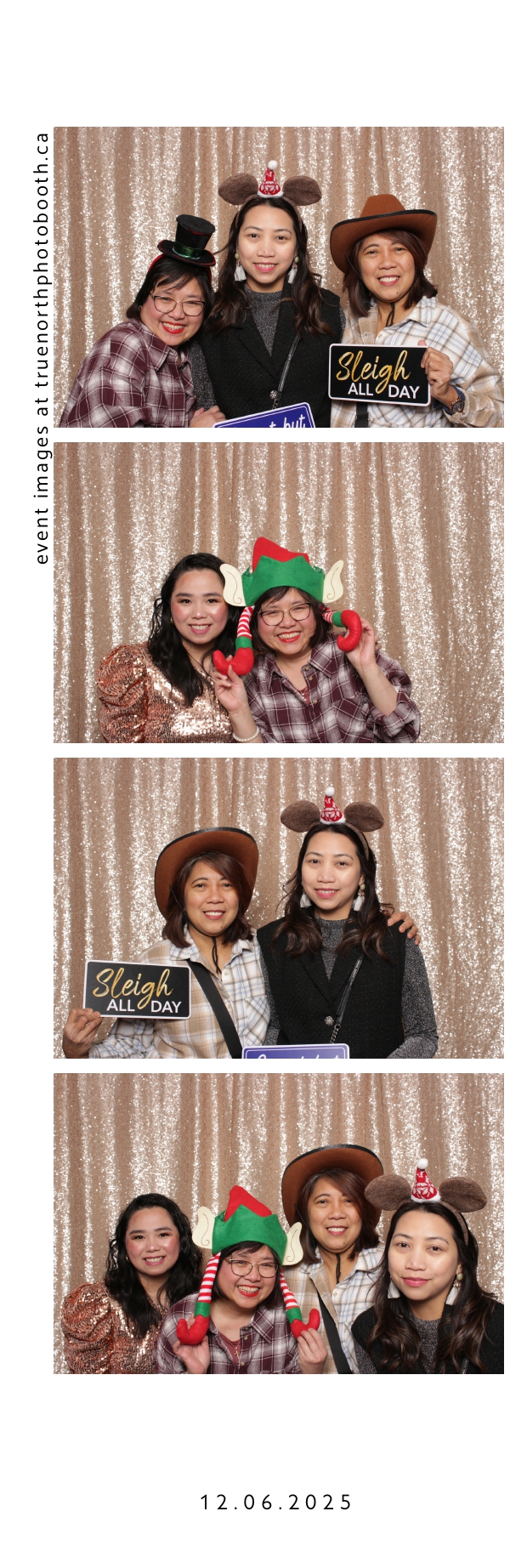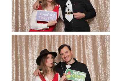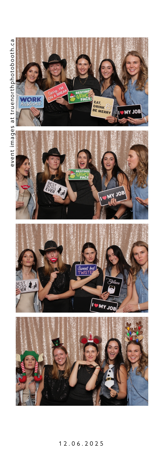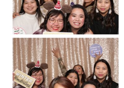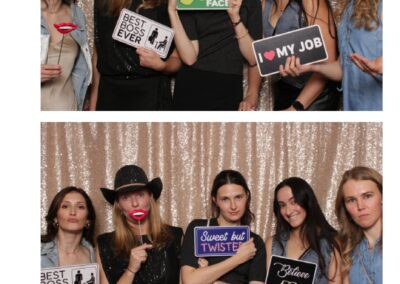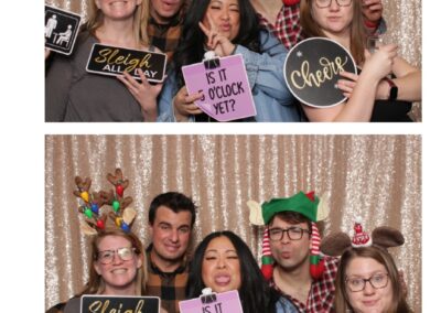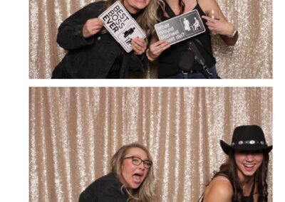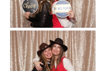 Guests enjoyed a lively photo booth experience featuring 2X6 custom photo strips and a glamorous champagne sequin backdrop. The sparkling setup added a touch of elegance to the celebration, allowing attendees to capture fun and memorable moments while taking home keepsake photos from a night dedicated to appreciation and teamwork.