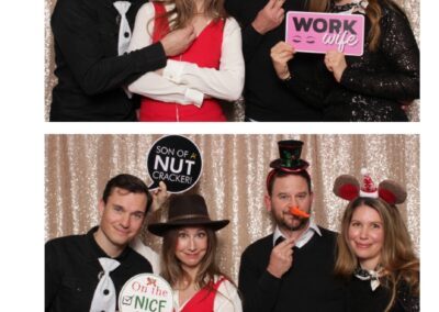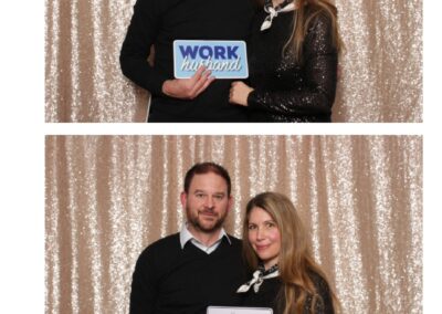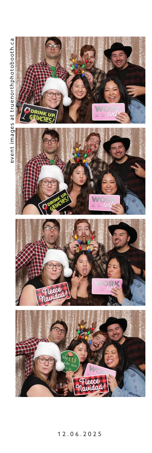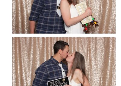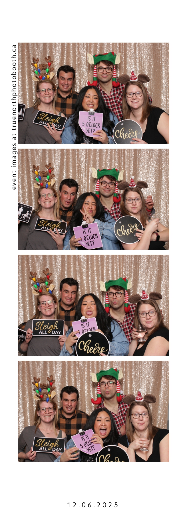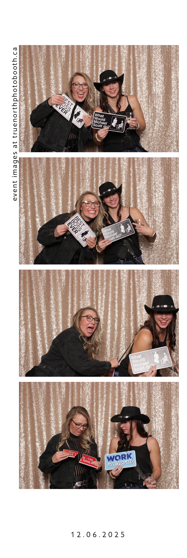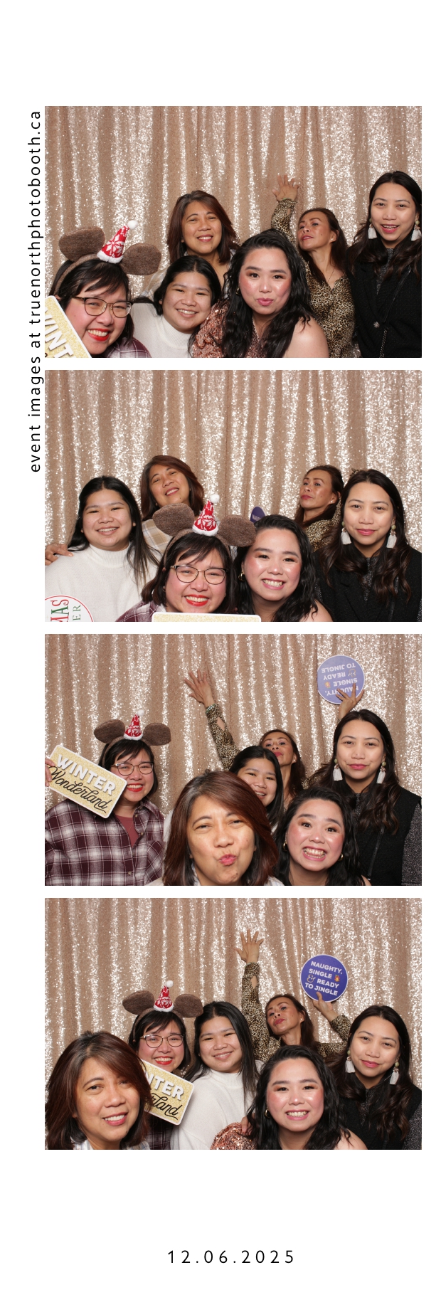 Guests enjoyed a lively photo booth experience featuring 2X6 custom photo strips and a glamorous champagne sequin backdrop. The sparkling setup added a touch of elegance to the celebration, allowing attendees to capture fun and memorable moments while taking home keepsake photos from a night dedicated to appreciation and teamwork.