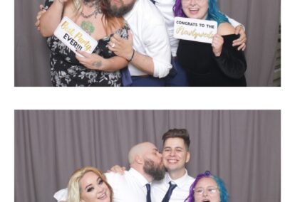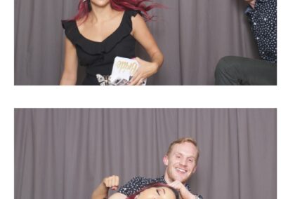 This was the party of the century and we were SOOOO happy to have been there. Ryan & Dayn had gotten married earlier this year. They decided to have a post-pandemic celebration where all of their loved ones could be together. With their creatively crafted 2X6 photo strip, their intense energy and their family & friends, the photo booth printer didn’t stop all night. Between hitting the dance floor & hydration breaks, guests would grab a prop, or two and made standing in front of our grey backdrop a regular destination throughout the night. The couple also opted for our digital download option. This was so that after the night was over, they would be able to pull up the pictures of each photo strip or one of the high resolution originals and remember all the fun that was had. Ryan and Dayn, your happiness is tangibly evident. And if the saying is true: “Show me your friends and I’ll show you your future.” Your future together is incredibly bright. All the best! Â