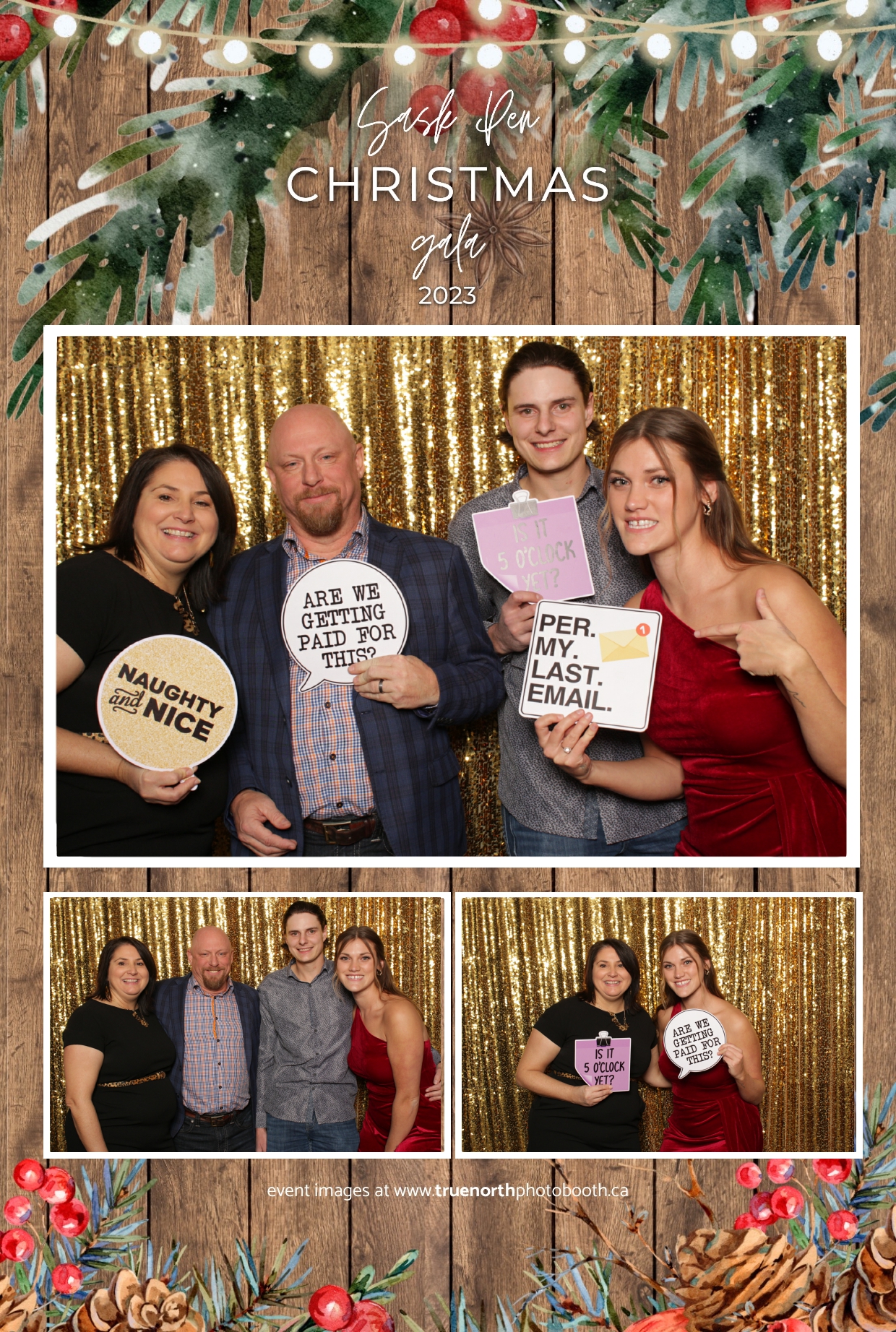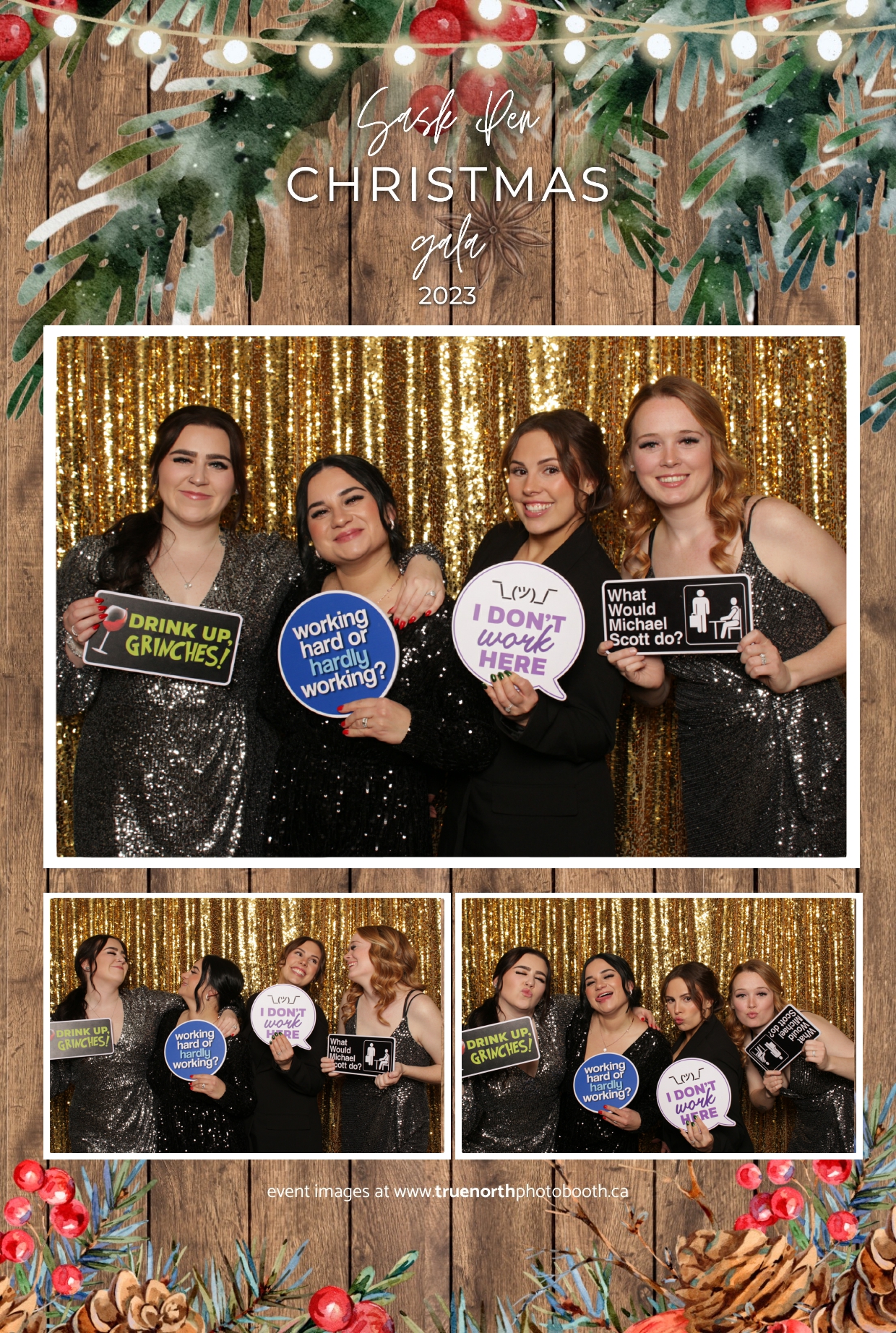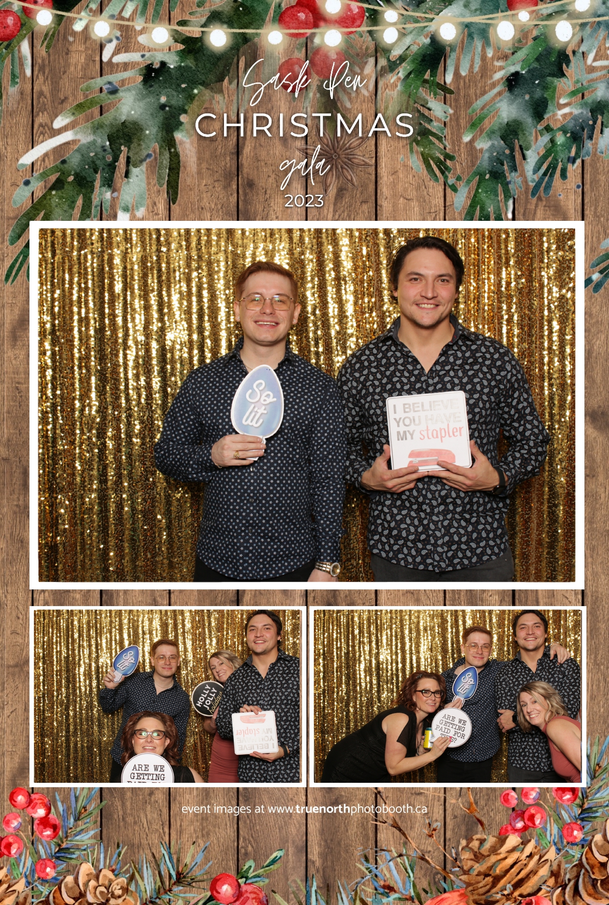 Saskatchewan Penitentiary’s Staff Holiday Party 2023 at the Art Hauser Centre in Prince Albert was a unique blend of festivity and community spirit, and True North Photo Booth added a touch of glamour to the celebration. The 4X6 custom photo strips served as personalized souvenirs, capturing the camaraderie and joy that transcended the traditional setting. Against the backdrop of the dazzling Gold Sequin Backdrop, every photo became a testament to the resilience and spirit of the Saskatchewan Penitentiary staff.