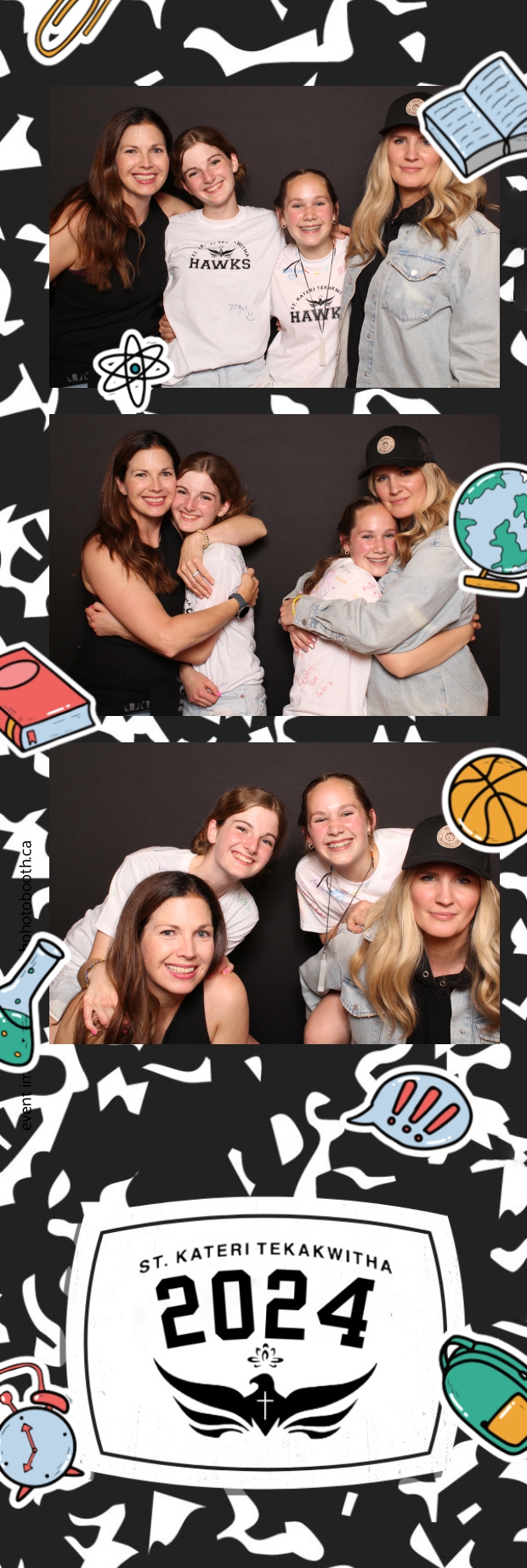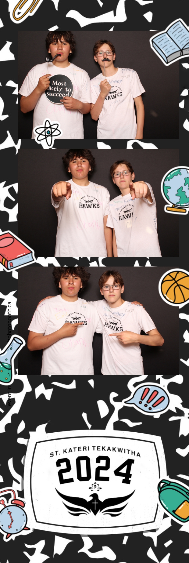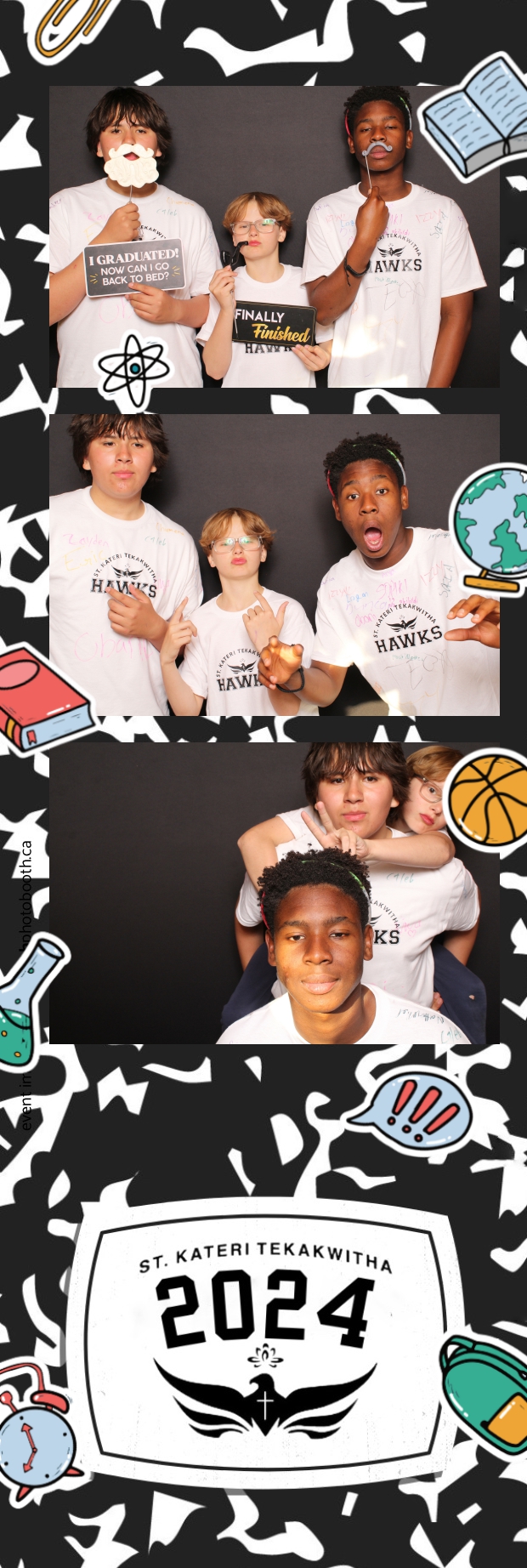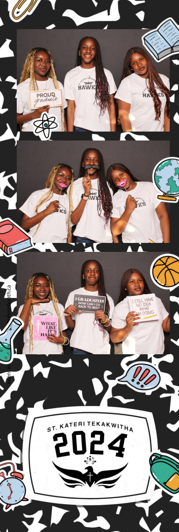 With a sleek black pillow backdrop and custom 2X6 photo strips, True North Photo Booth provided the perfect setting for capturing unforgettable moments. The photo booth was a hit among students, parents, and teachers, offering everyone the opportunity to create cherished keepsakes from the evening. The professionalism and creativity of True North Photo Booth ensured that the St. Kateri Grade 8 Grad was a truly memorable event, leaving all attendees with lasting memories and beautifully captured photos.