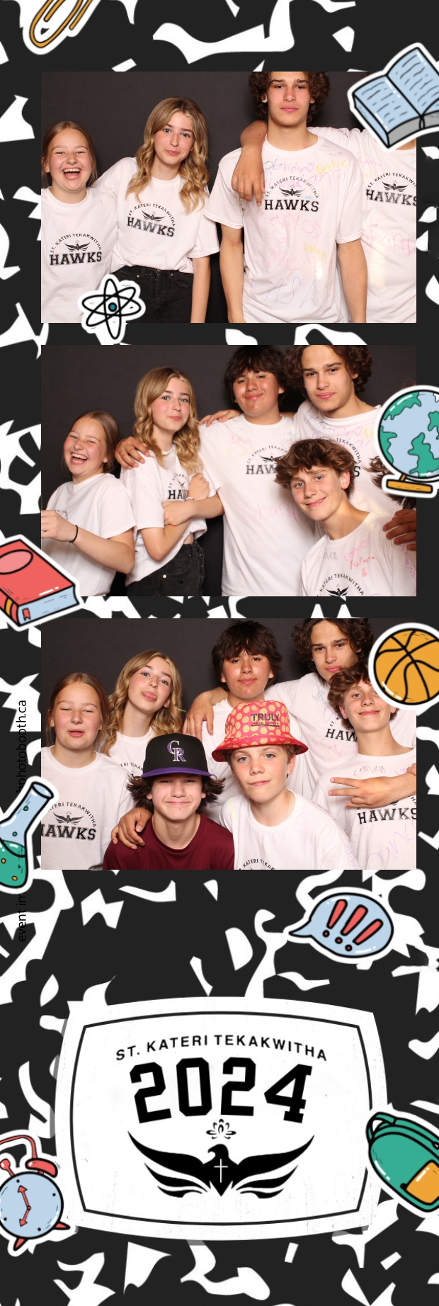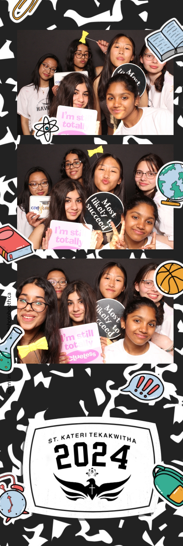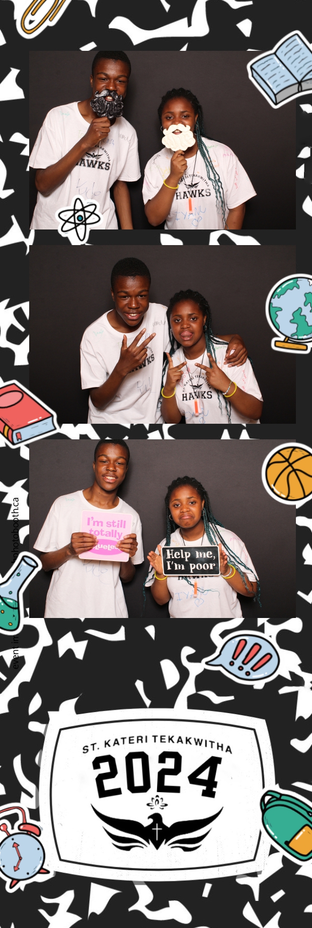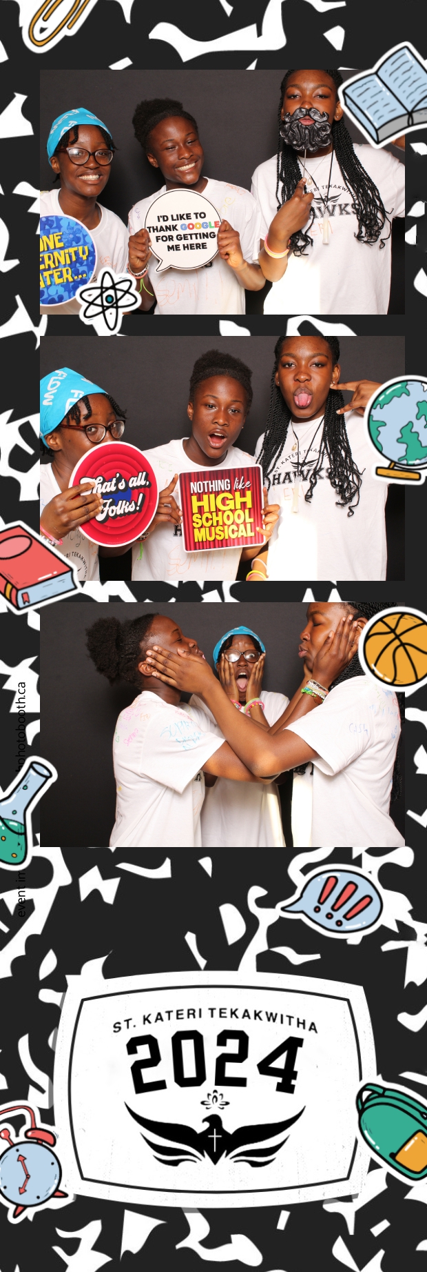 With a sleek black pillow backdrop and custom 2X6 photo strips, True North Photo Booth provided the perfect setting for capturing unforgettable moments. The photo booth was a hit among students, parents, and teachers, offering everyone the opportunity to create cherished keepsakes from the evening. The professionalism and creativity of True North Photo Booth ensured that the St. Kateri Grade 8 Grad was a truly memorable event, leaving all attendees with lasting memories and beautifully captured photos.
