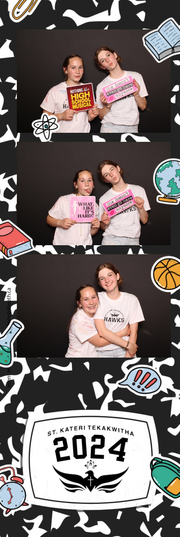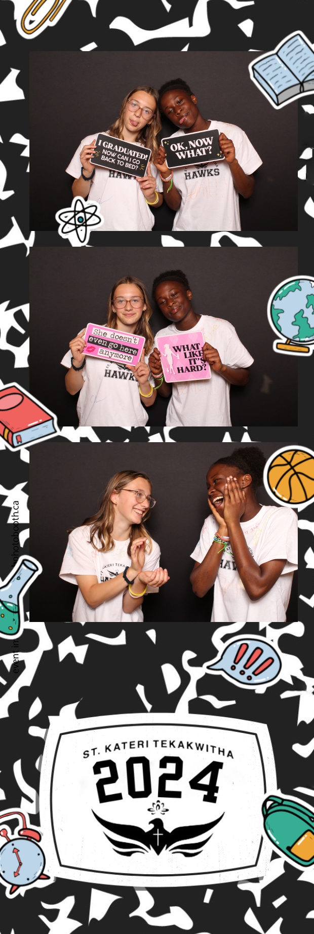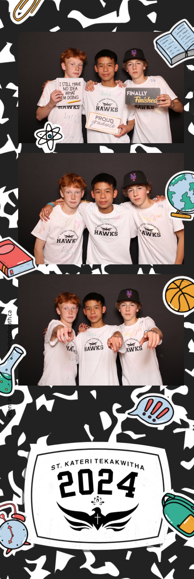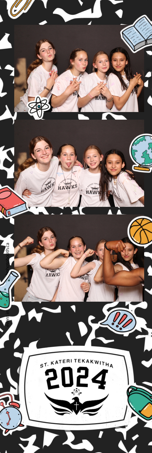 With a sleek black pillow backdrop and custom 2X6 photo strips, True North Photo Booth provided the perfect setting for capturing unforgettable moments. The photo booth was a hit among students, parents, and teachers, offering everyone the opportunity to create cherished keepsakes from the evening. The professionalism and creativity of True North Photo Booth ensured that the St. Kateri Grade 8 Grad was a truly memorable event, leaving all attendees with lasting memories and beautifully captured photos.