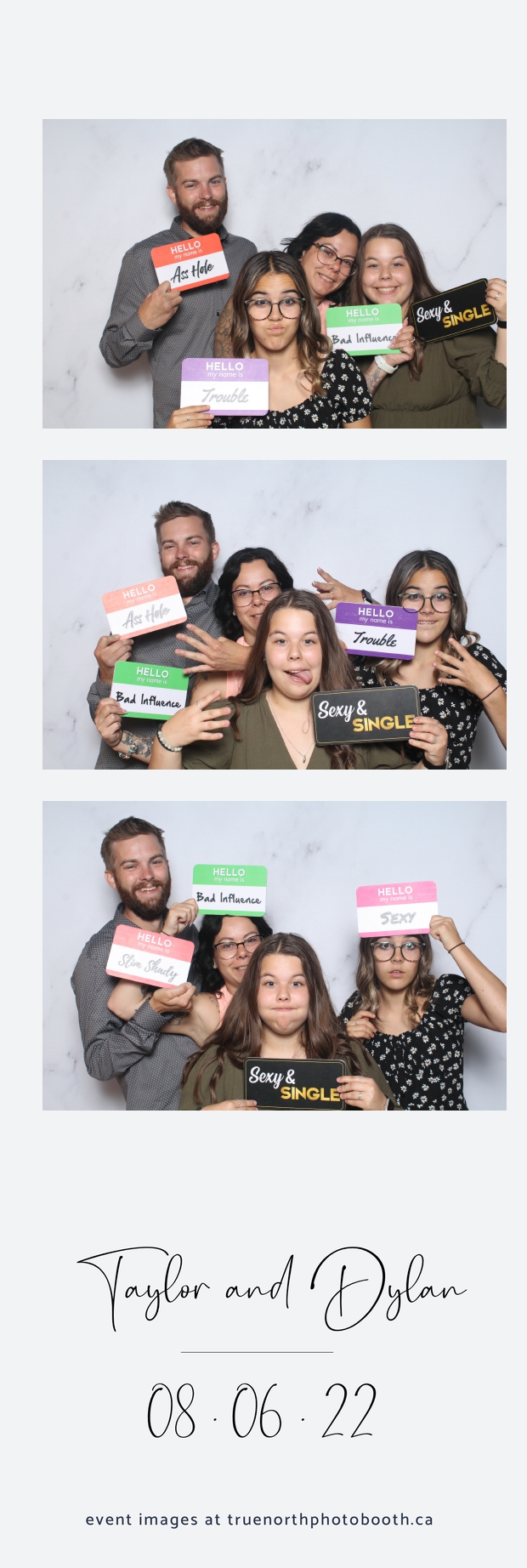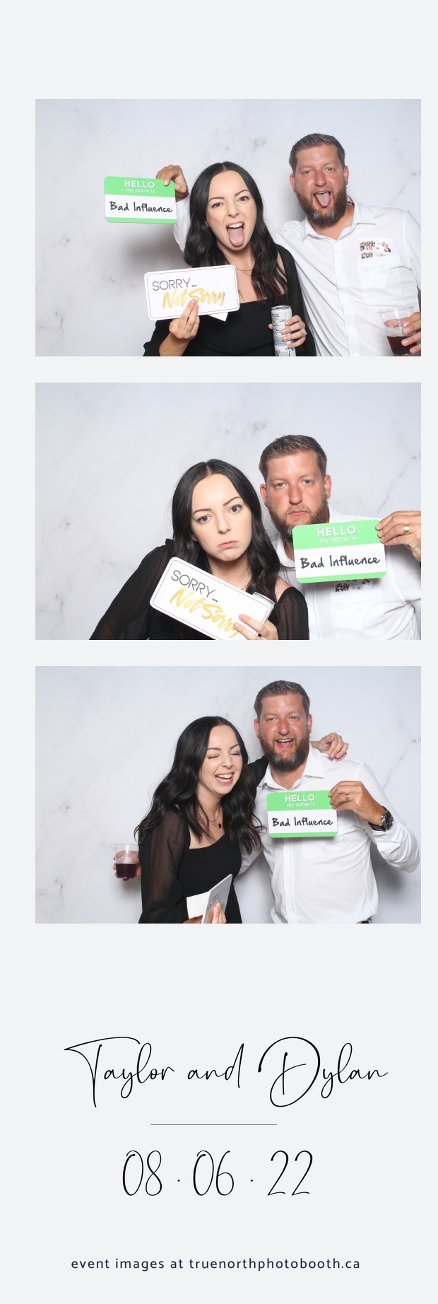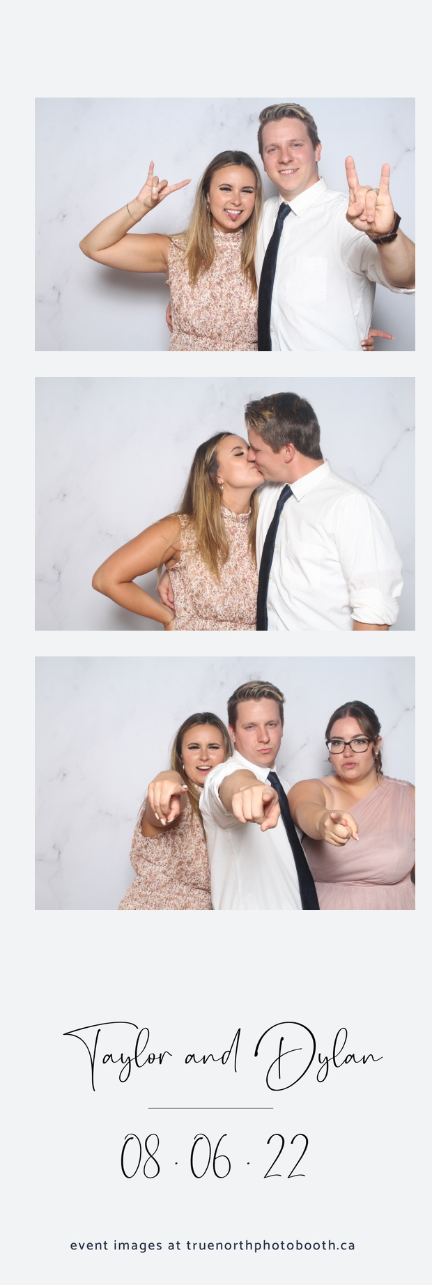 What can we say about Taylor & Dylan? Well, to be honest… There aren’t enough words to describe these two generous and caring people. With a 2X6 custom photo strip, & our white marble pillow backdrop; guests had a chance to let loose. Both young & more seasoned guests seemed to be having a blast showing off their best poses and planning out what the next photo was going to entail during their 5 second pause between each picture. All in all, it was a great night. We truly wish all the best to this great couple as they begin this new chapter of their journey together.