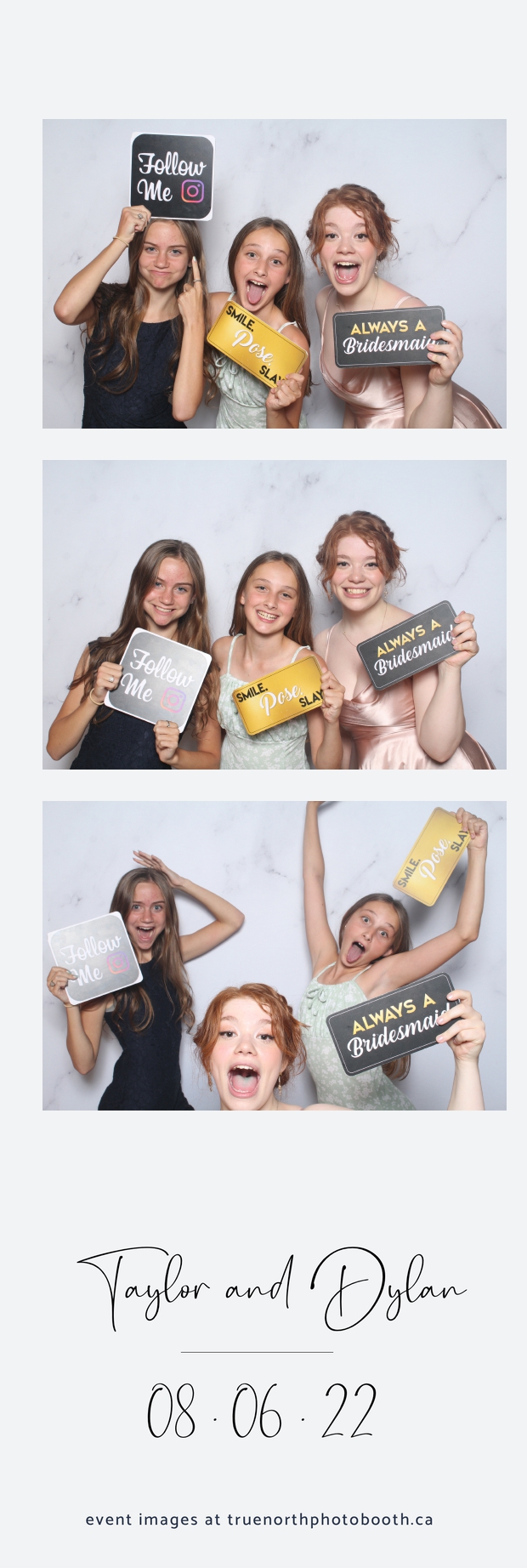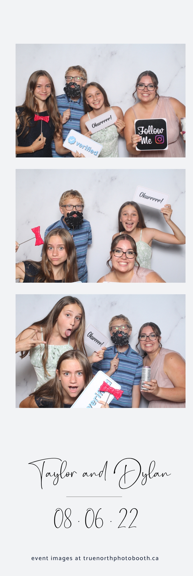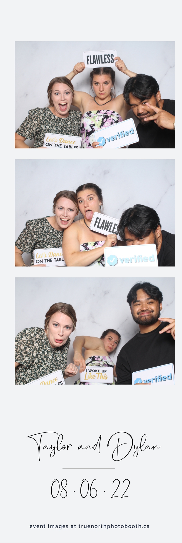 What can we say about Taylor & Dylan? Well, to be honest… There aren’t enough words to describe these two generous and caring people. With a 2X6 custom photo strip, & our white marble pillow backdrop; guests had a chance to let loose. Both young & more seasoned guests seemed to be having a blast showing off their best poses and planning out what the next photo was going to entail during their 5 second pause between each picture. All in all, it was a great night. We truly wish all the best to this great couple as they begin this new chapter of their journey together.