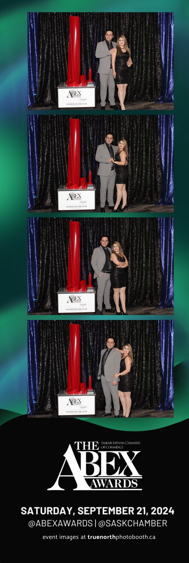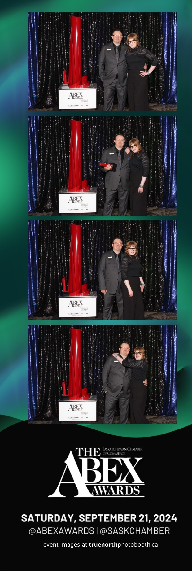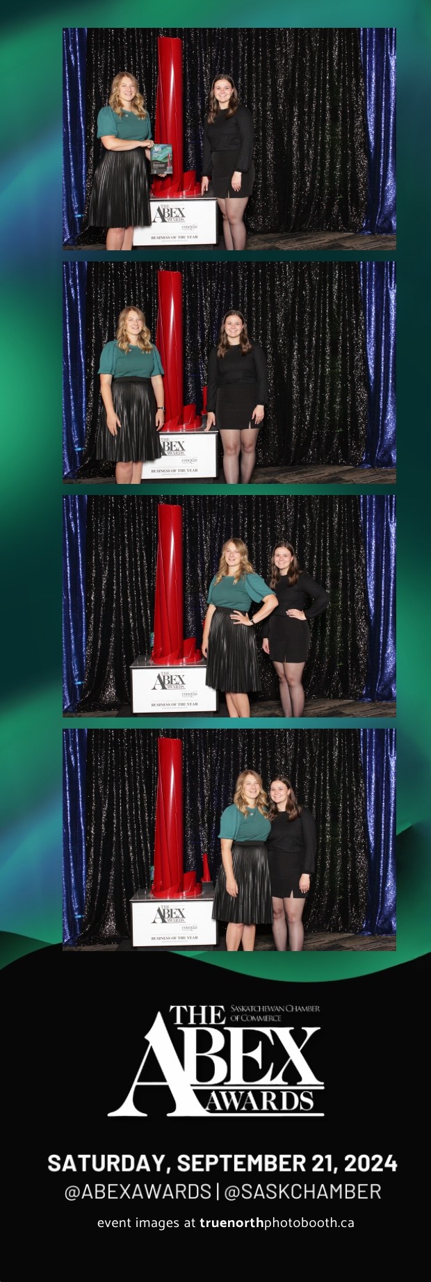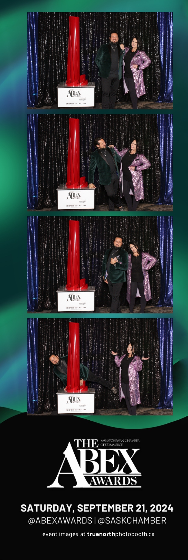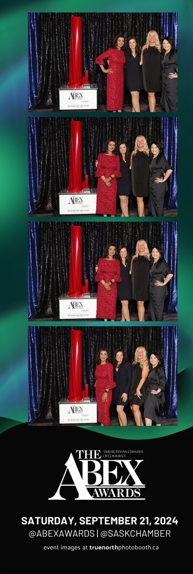 The Saskatchewan Chamber of Commerce once again put together an amazing evening for the 2024 ABEX Awards! Saskatchewan’s premier business event presented by Conexus Credit Union, was an unforgettable evening celebrating excellence in local business. Held at the prestigious TCU Place in Saskatoon, the event honored the incredible achievements of businesses that have made a significant impact since the awards’ inception in 1984. True North Photo Booth was proud to be part of this glamorous celebration, adding a fun and interactive element to the night with our 2X6 custom photo strips and the company’s own striking custom backdrop.