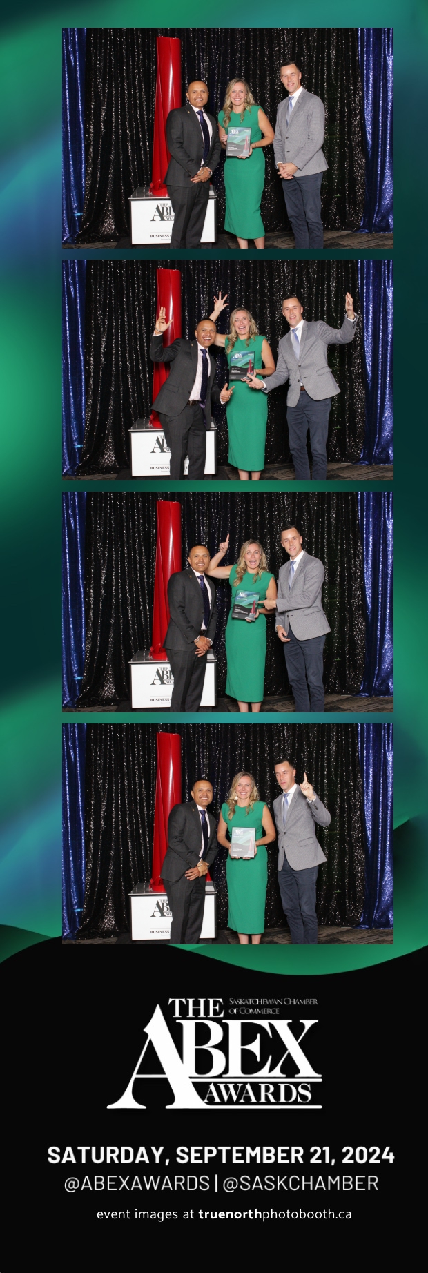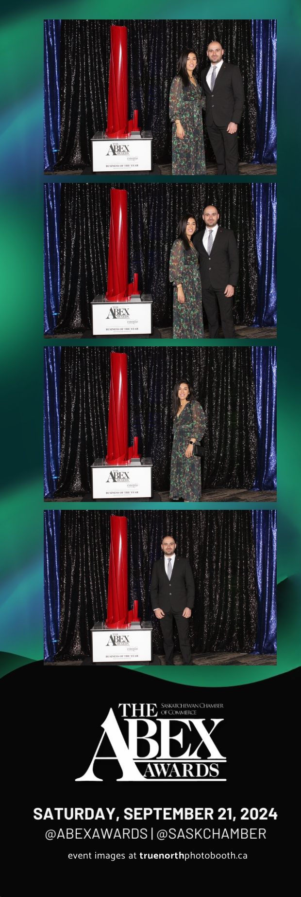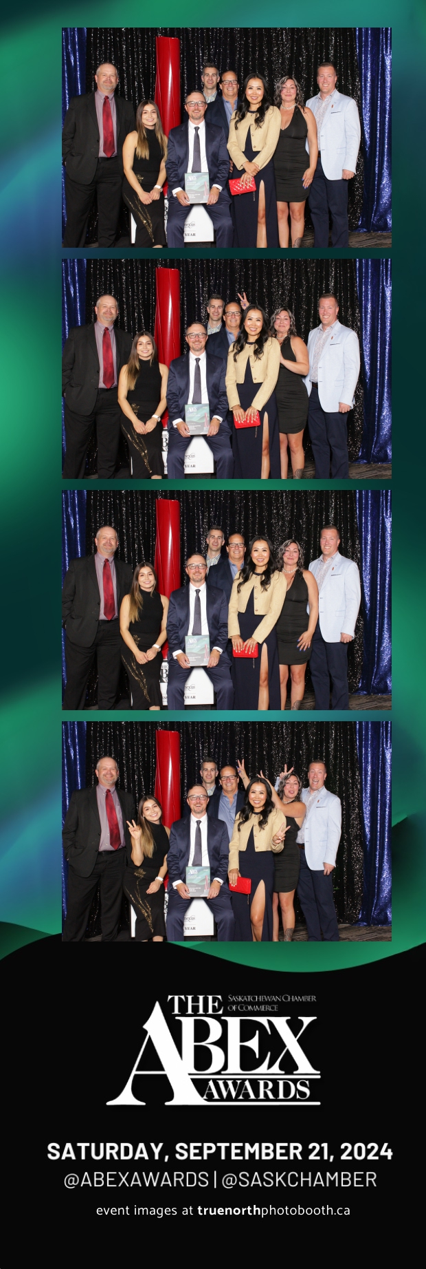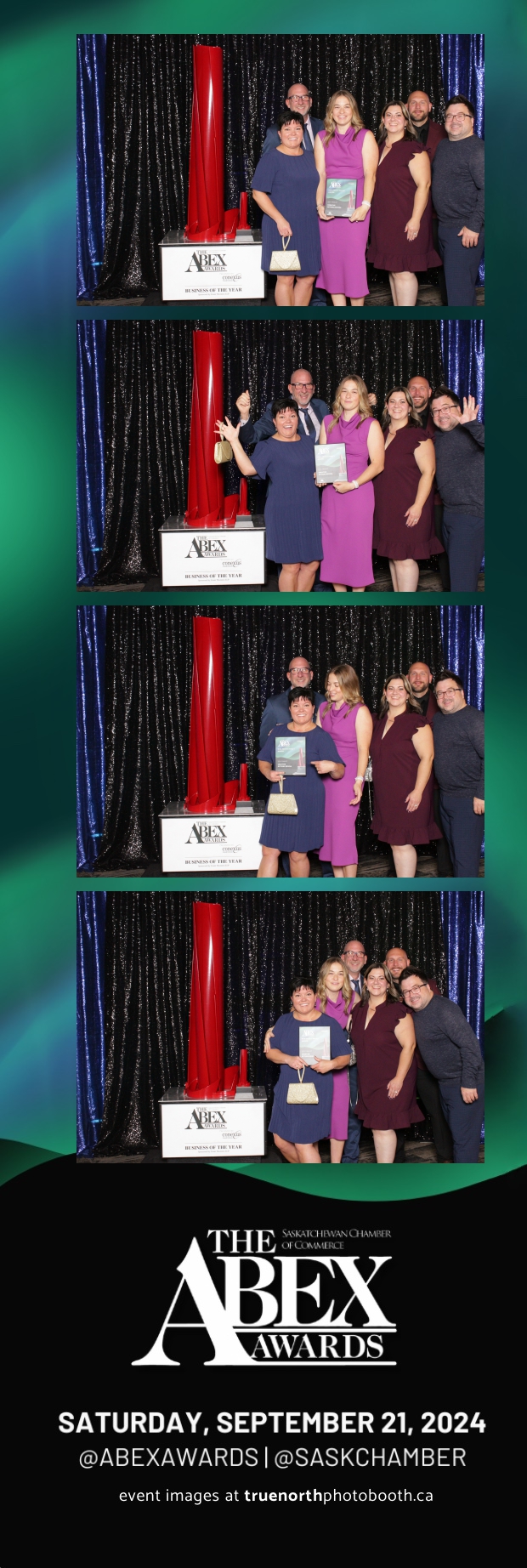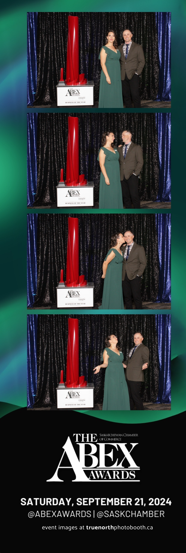 The Saskatchewan Chamber of Commerce once again put together an amazing evening for the 2024 ABEX Awards! Saskatchewan’s premier business event presented by Conexus Credit Union, was an unforgettable evening celebrating excellence in local business. Held at the prestigious TCU Place in Saskatoon, the event honored the incredible achievements of businesses that have made a significant impact since the awards’ inception in 1984. True North Photo Booth was proud to be part of this glamorous celebration, adding a fun and interactive element to the night with our 2X6 custom photo strips and the company’s own striking custom backdrop.