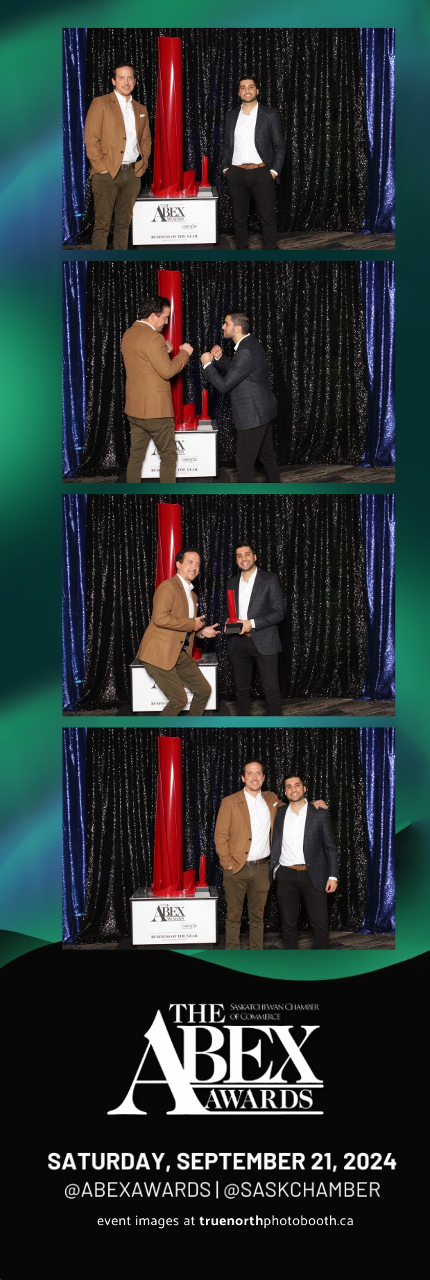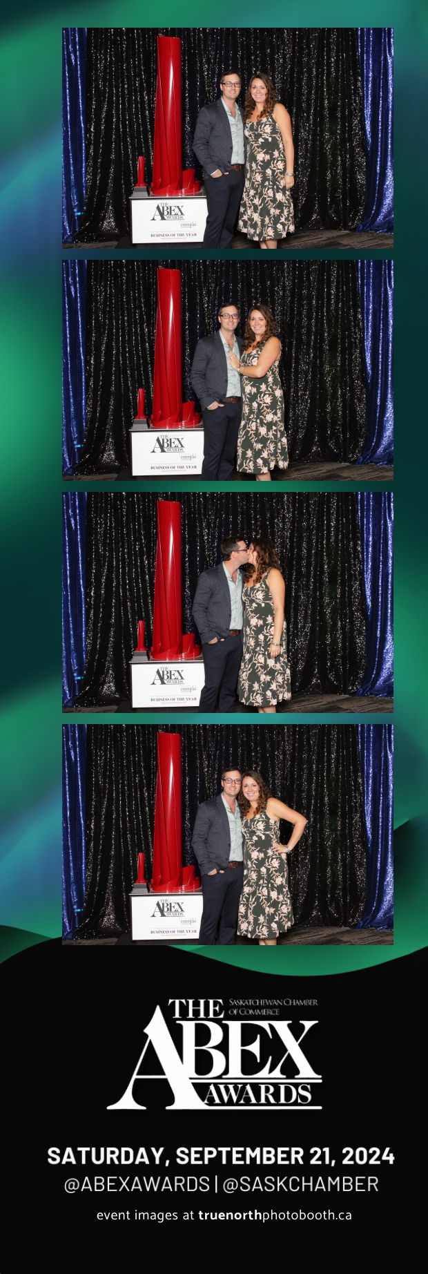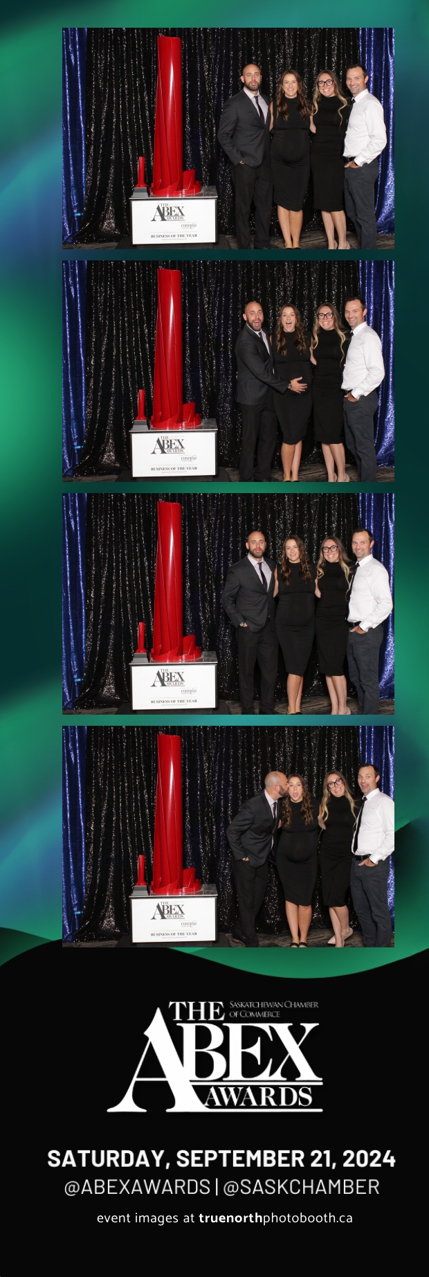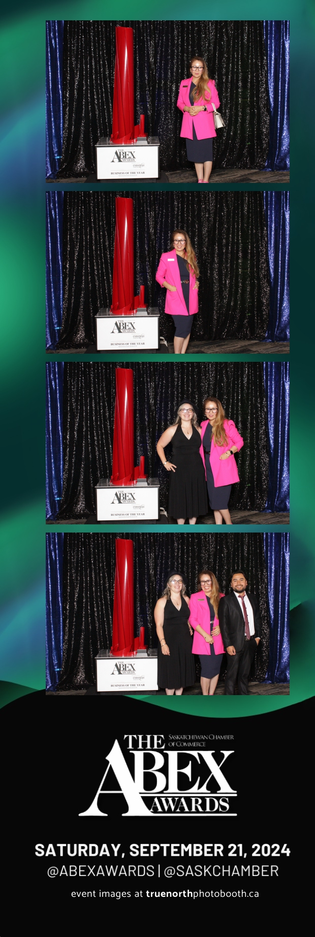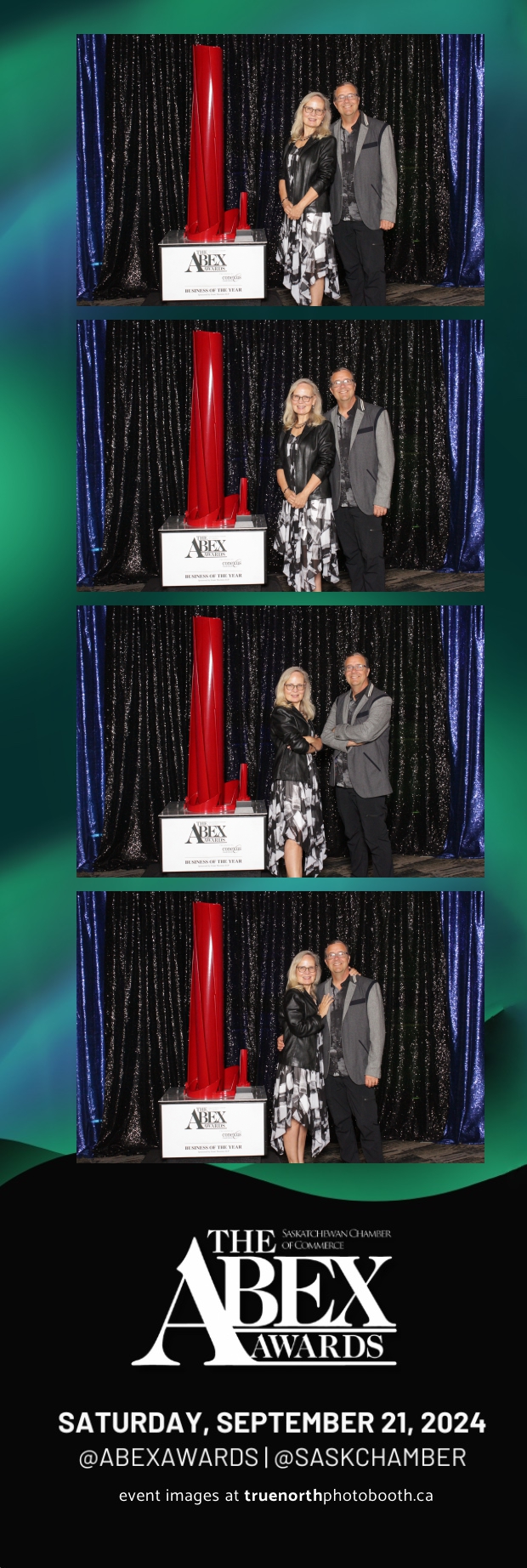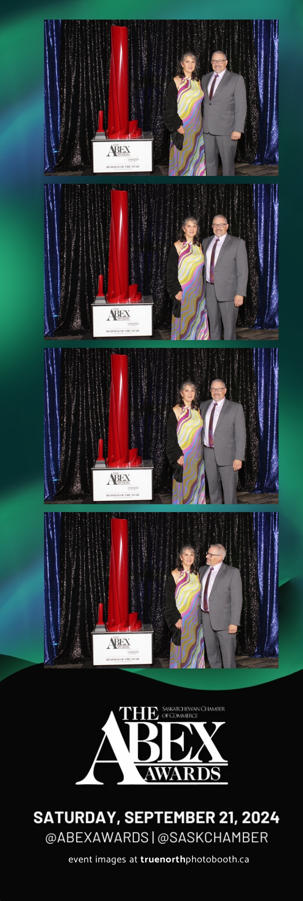 The Saskatchewan Chamber of Commerce once again put together an amazing evening for the 2024 ABEX Awards! Saskatchewan’s premier business event presented by Conexus Credit Union, was an unforgettable evening celebrating excellence in local business. Held at the prestigious TCU Place in Saskatoon, the event honored the incredible achievements of businesses that have made a significant impact since the awards’ inception in 1984. True North Photo Booth was proud to be part of this glamorous celebration, adding a fun and interactive element to the night with our 2X6 custom photo strips and the company’s own striking custom backdrop.