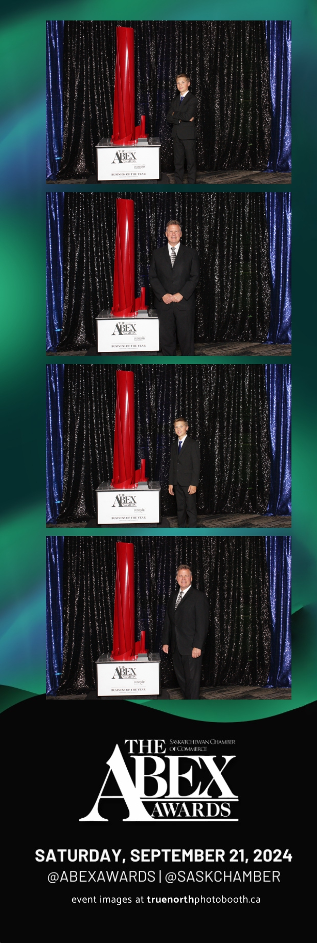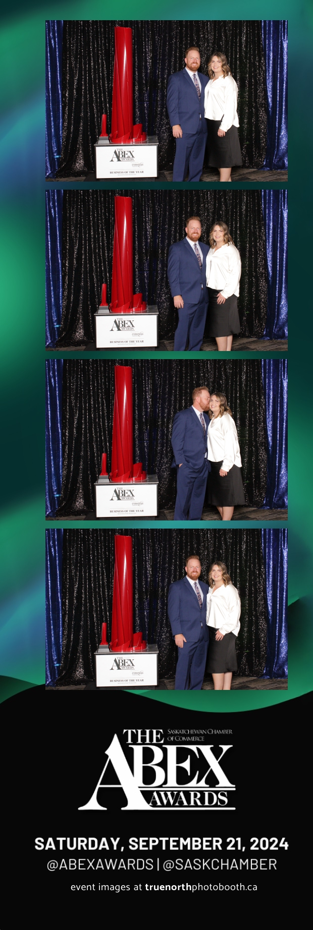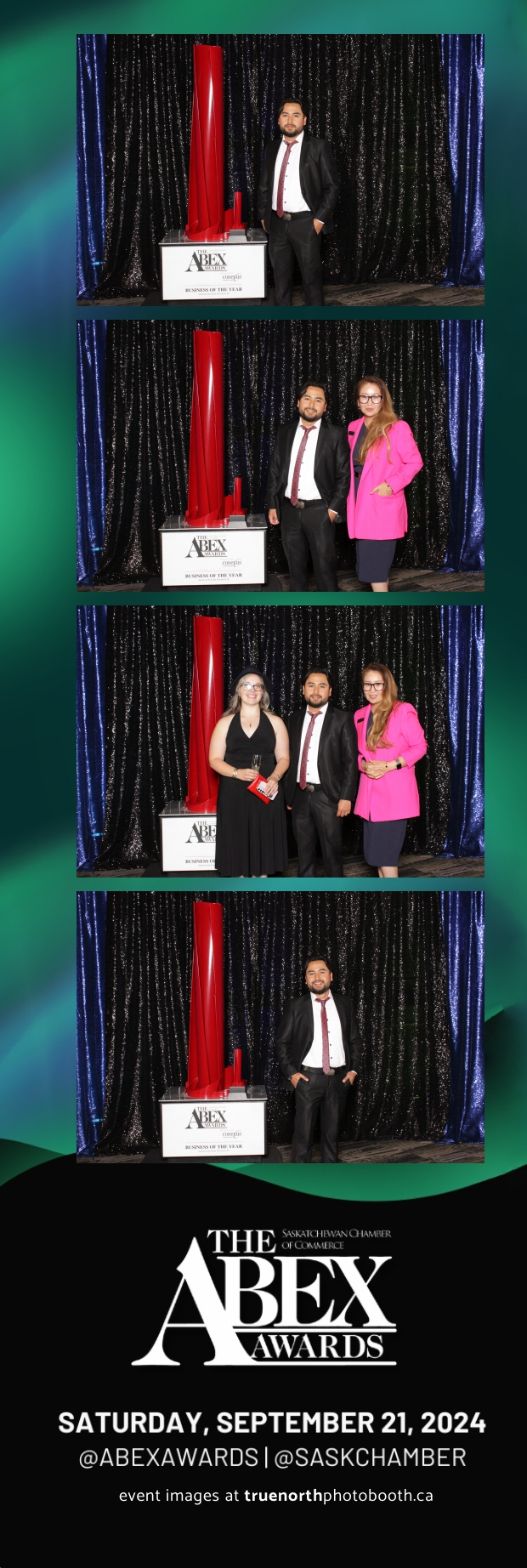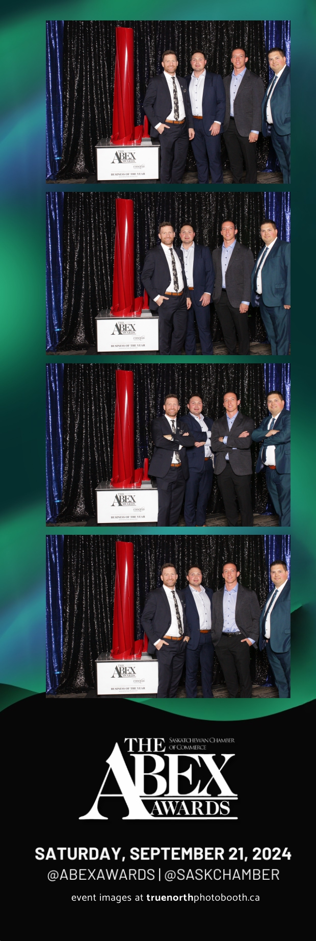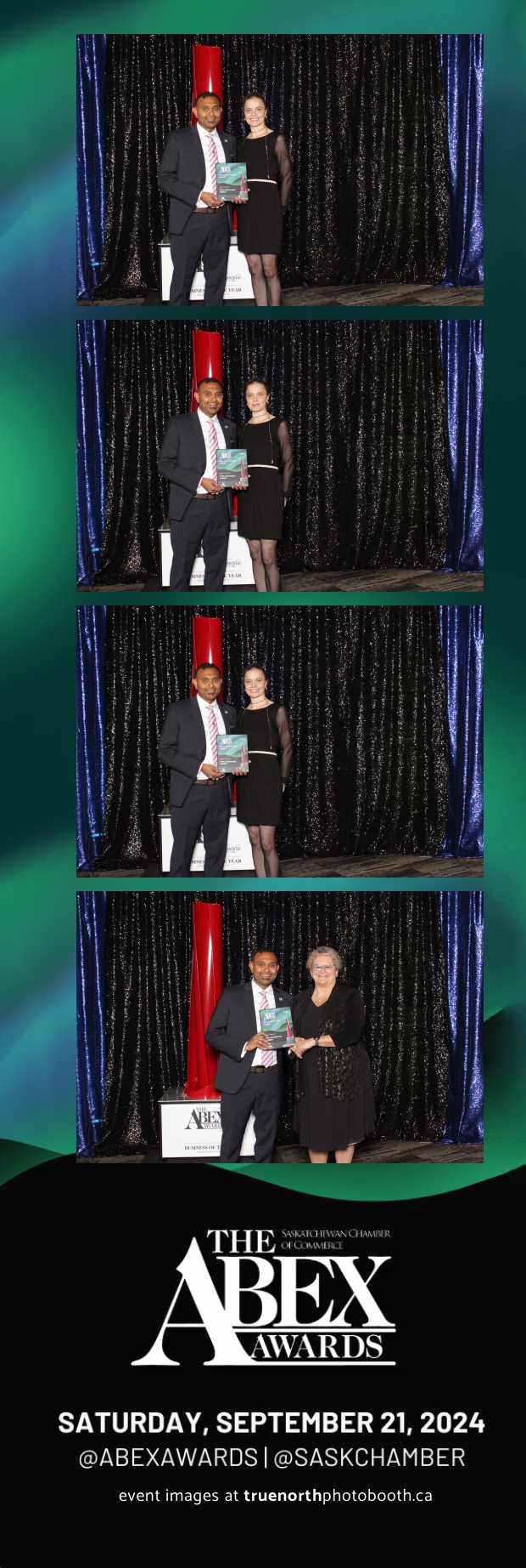 The Saskatchewan Chamber of Commerce once again put together an amazing evening for the 2024 ABEX Awards! Saskatchewan’s premier business event presented by Conexus Credit Union, was an unforgettable evening celebrating excellence in local business. Held at the prestigious TCU Place in Saskatoon, the event honored the incredible achievements of businesses that have made a significant impact since the awards’ inception in 1984. True North Photo Booth was proud to be part of this glamorous celebration, adding a fun and interactive element to the night with our 2X6 custom photo strips and the company’s own striking custom backdrop.
