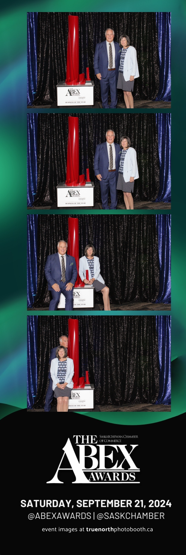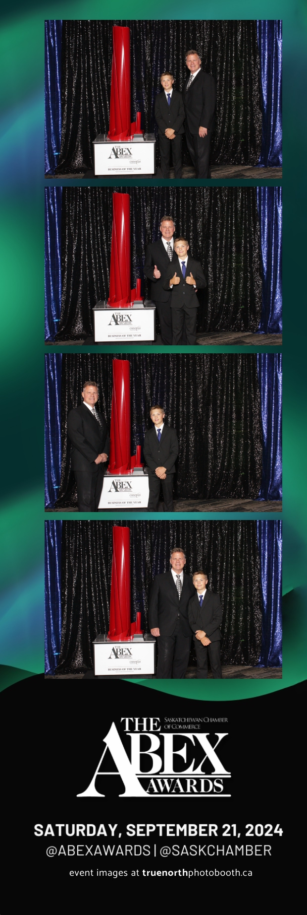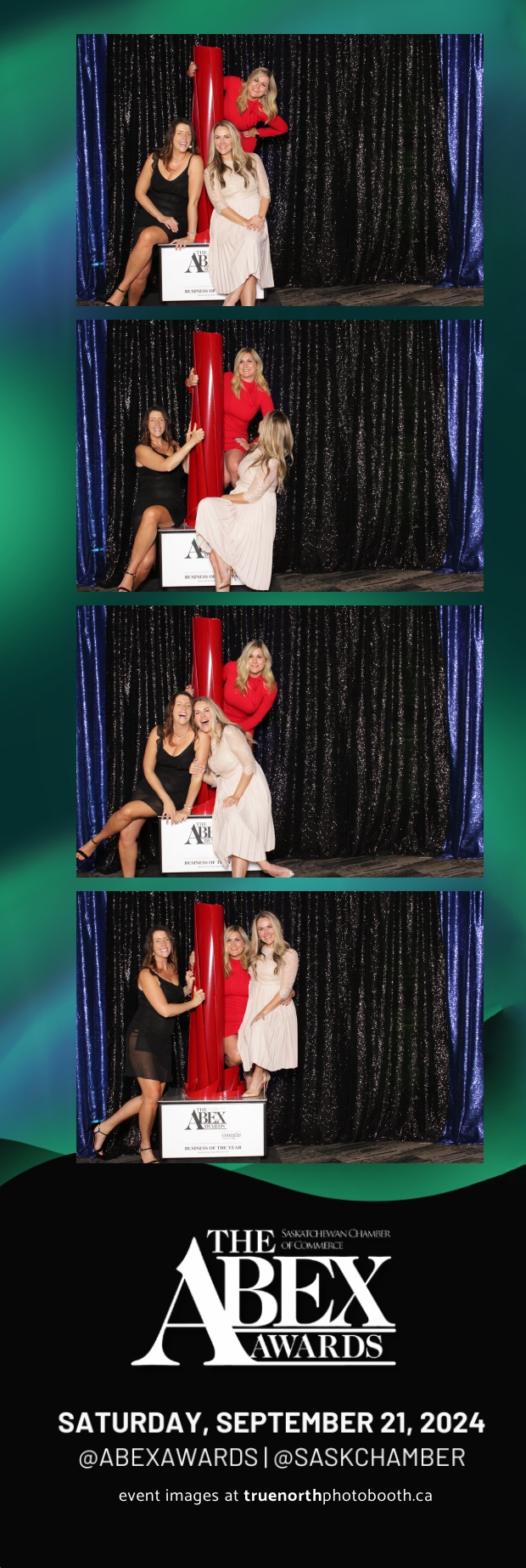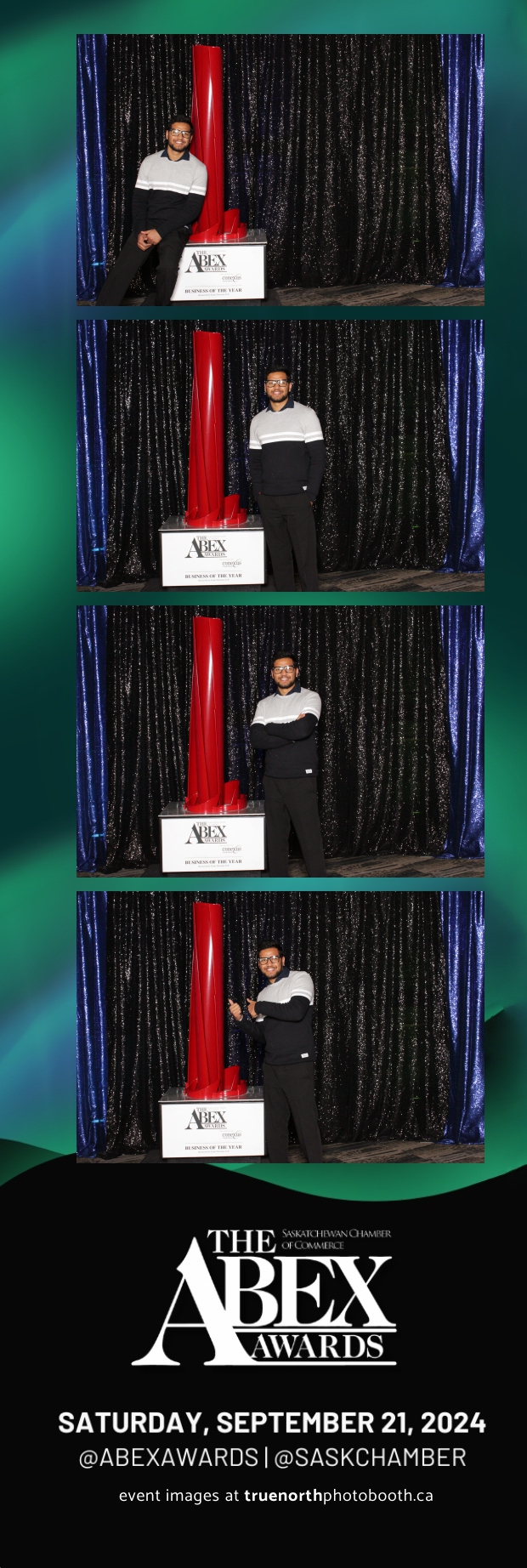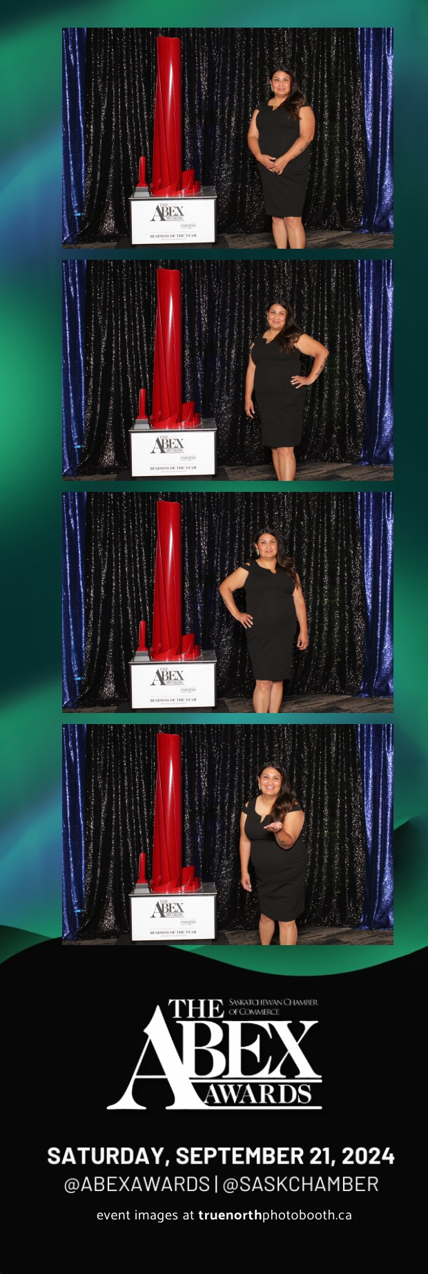 The Saskatchewan Chamber of Commerce once again put together an amazing evening for the 2024 ABEX Awards! Saskatchewan’s premier business event presented by Conexus Credit Union, was an unforgettable evening celebrating excellence in local business. Held at the prestigious TCU Place in Saskatoon, the event honored the incredible achievements of businesses that have made a significant impact since the awards’ inception in 1984. True North Photo Booth was proud to be part of this glamorous celebration, adding a fun and interactive element to the night with our 2X6 custom photo strips and the company’s own striking custom backdrop.