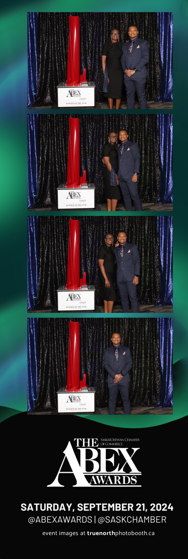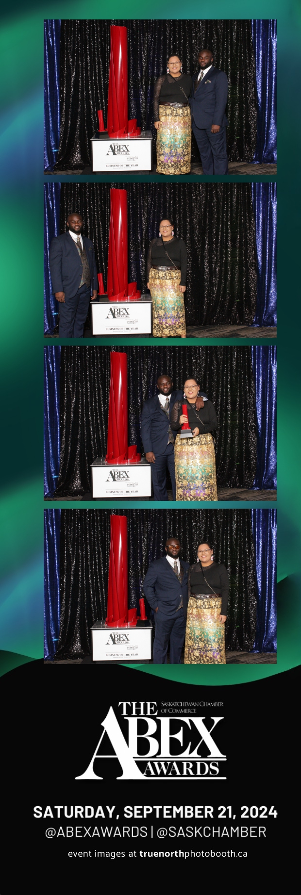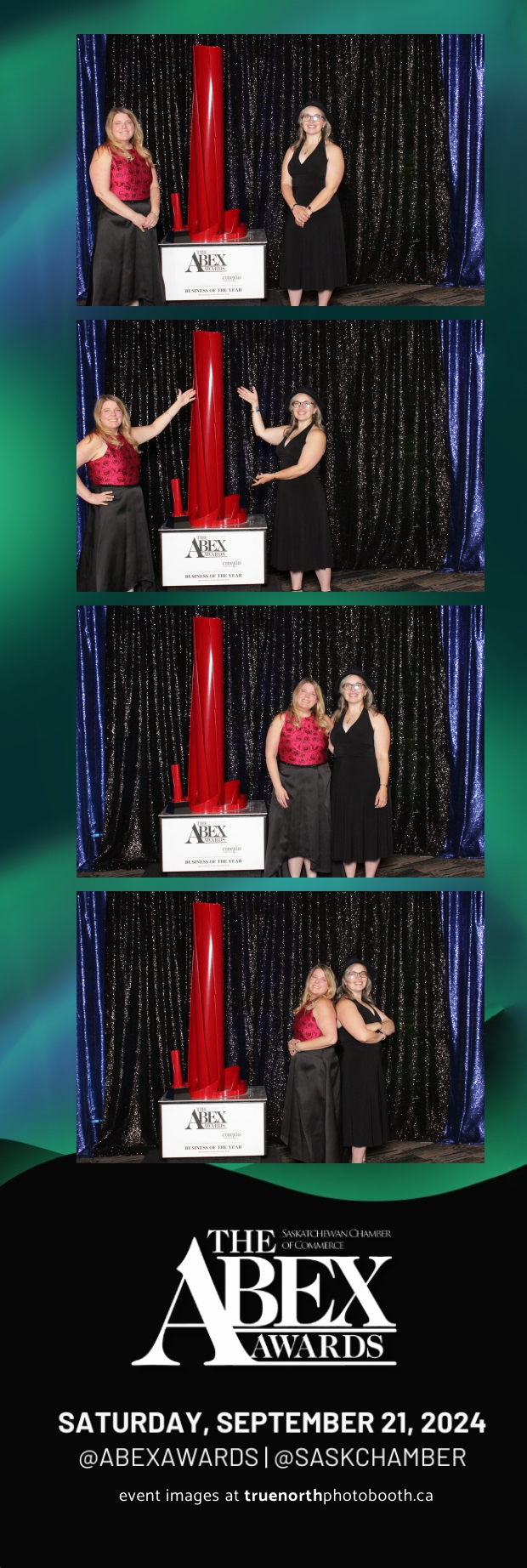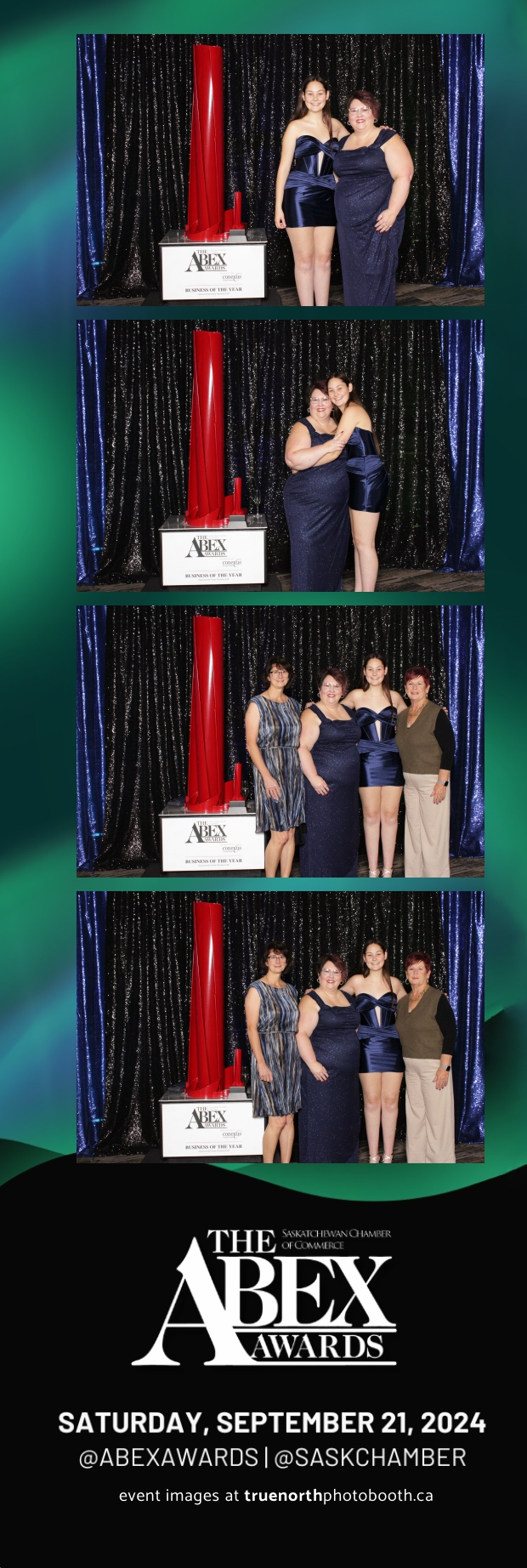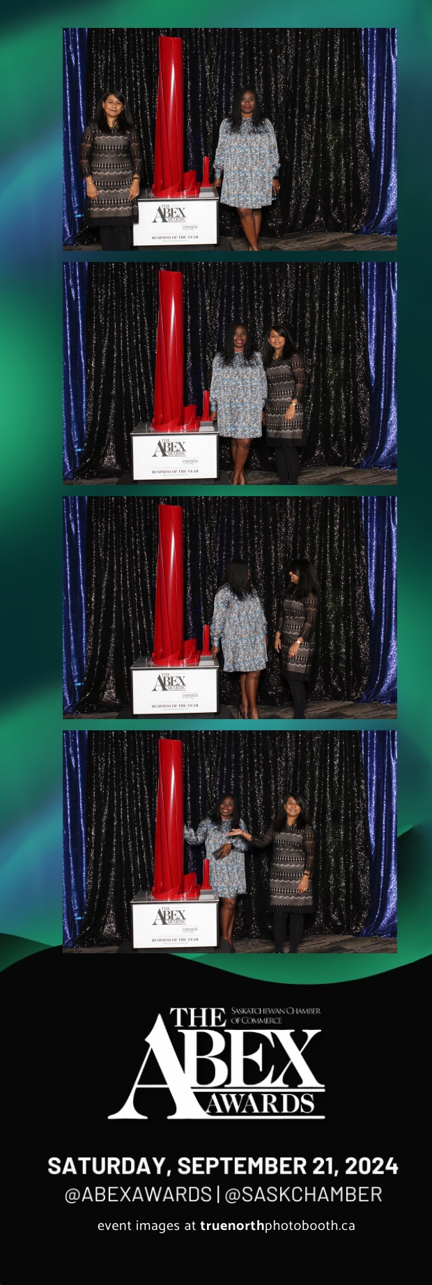 The Saskatchewan Chamber of Commerce once again put together an amazing evening for the 2024 ABEX Awards! Saskatchewan’s premier business event presented by Conexus Credit Union, was an unforgettable evening celebrating excellence in local business. Held at the prestigious TCU Place in Saskatoon, the event honored the incredible achievements of businesses that have made a significant impact since the awards’ inception in 1984. True North Photo Booth was proud to be part of this glamorous celebration, adding a fun and interactive element to the night with our 2X6 custom photo strips and the company’s own striking custom backdrop.