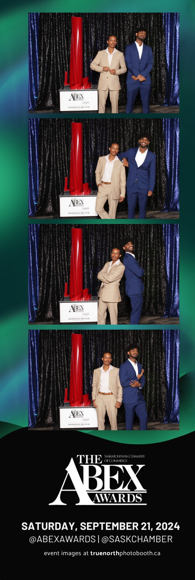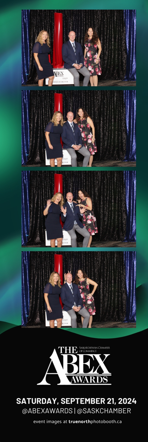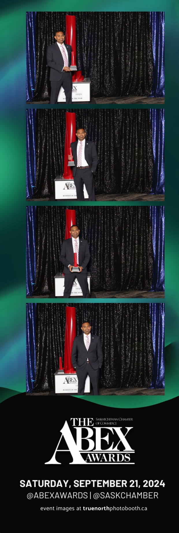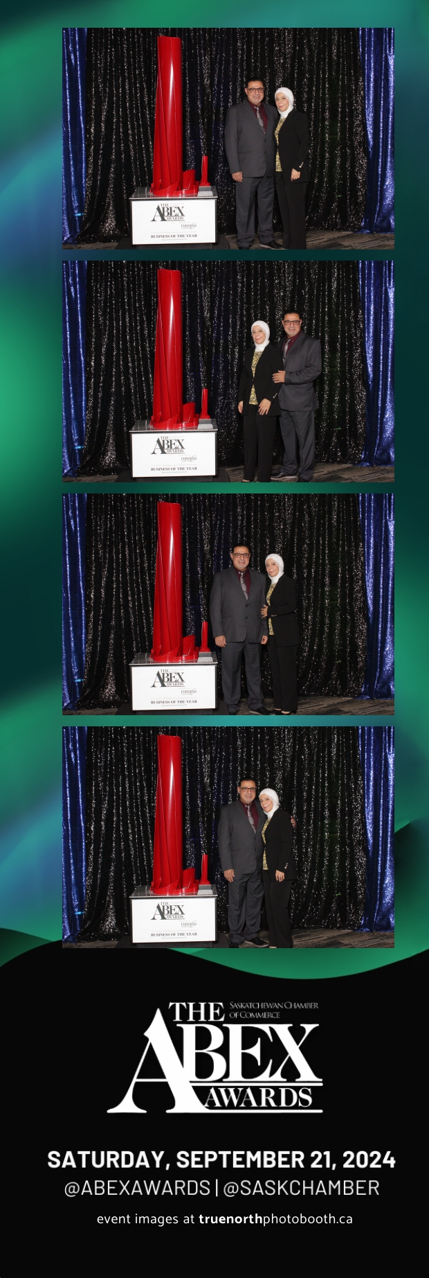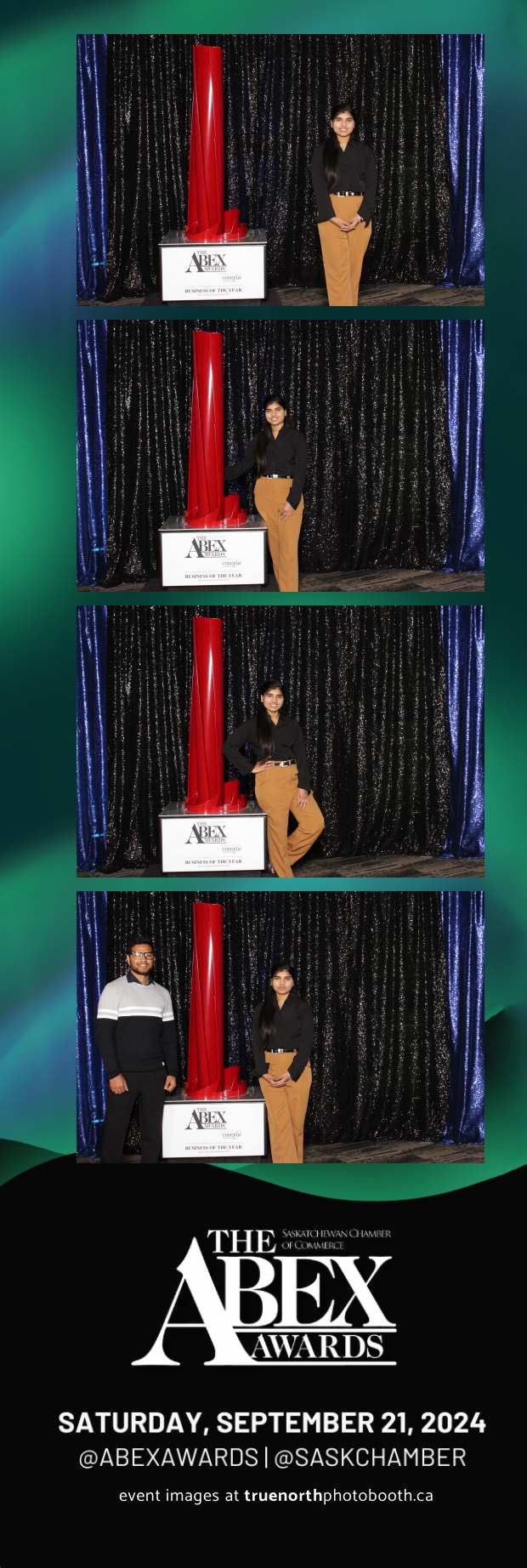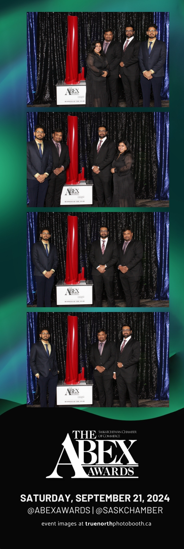 The Saskatchewan Chamber of Commerce once again put together an amazing evening for the 2024 ABEX Awards! Saskatchewan’s premier business event presented by Conexus Credit Union, was an unforgettable evening celebrating excellence in local business. Held at the prestigious TCU Place in Saskatoon, the event honored the incredible achievements of businesses that have made a significant impact since the awards’ inception in 1984. True North Photo Booth was proud to be part of this glamorous celebration, adding a fun and interactive element to the night with our 2X6 custom photo strips and the company’s own striking custom backdrop.