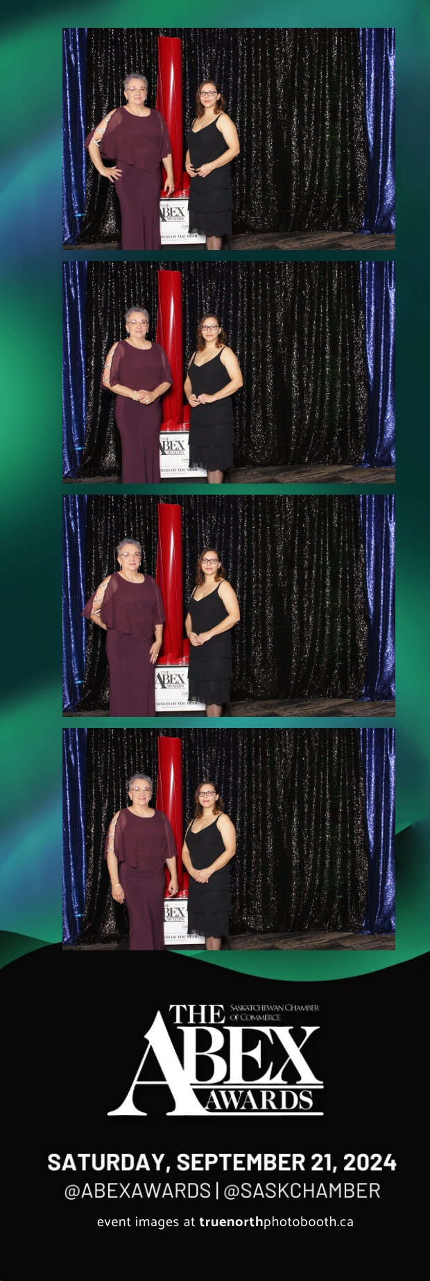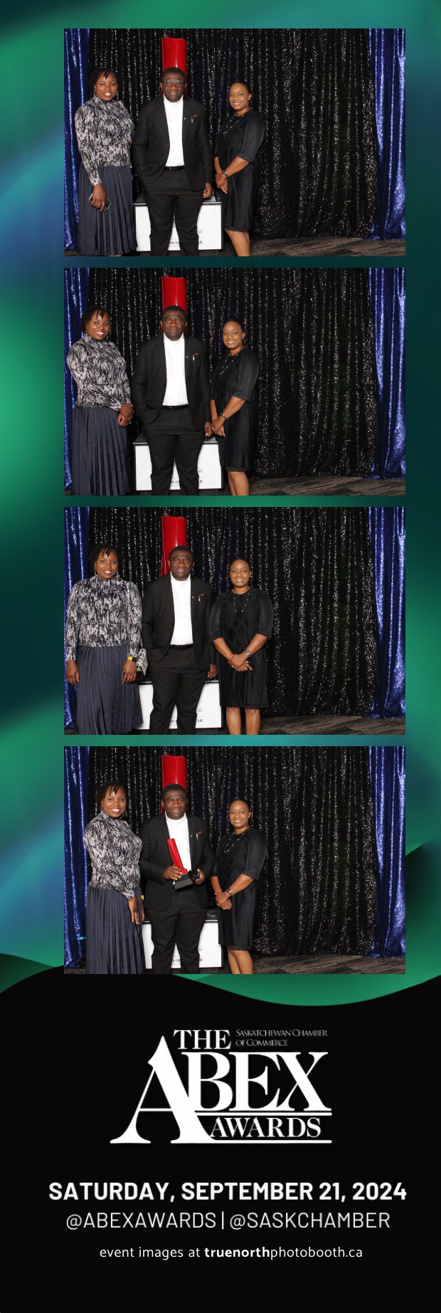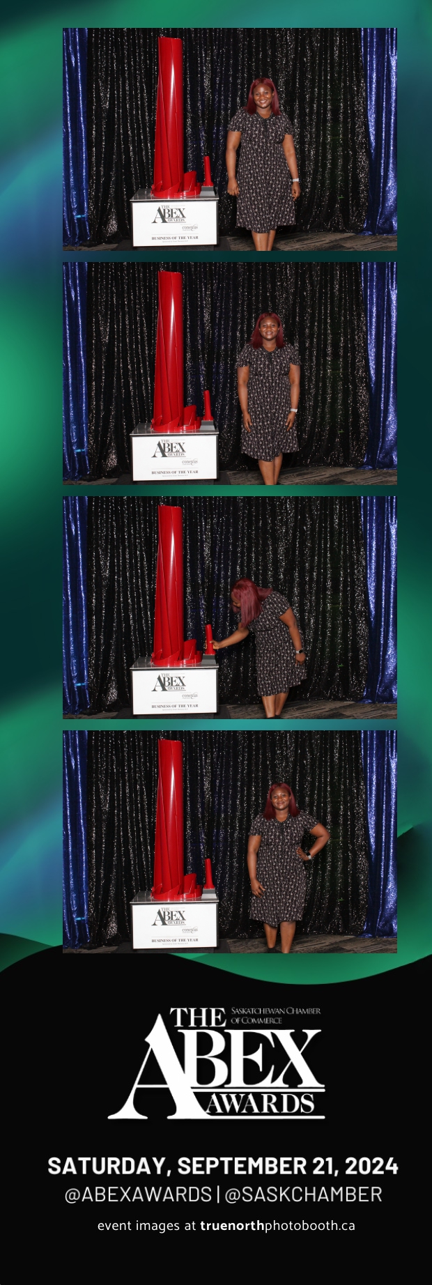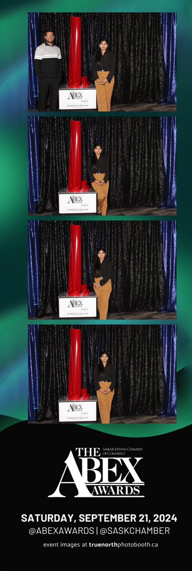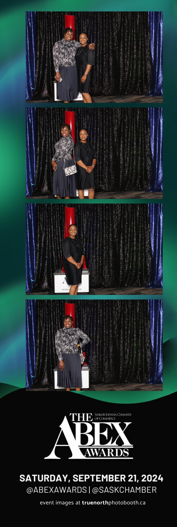 The Saskatchewan Chamber of Commerce once again put together an amazing evening for the 2024 ABEX Awards! Saskatchewan’s premier business event presented by Conexus Credit Union, was an unforgettable evening celebrating excellence in local business. Held at the prestigious TCU Place in Saskatoon, the event honored the incredible achievements of businesses that have made a significant impact since the awards’ inception in 1984. True North Photo Booth was proud to be part of this glamorous celebration, adding a fun and interactive element to the night with our 2X6 custom photo strips and the company’s own striking custom backdrop.