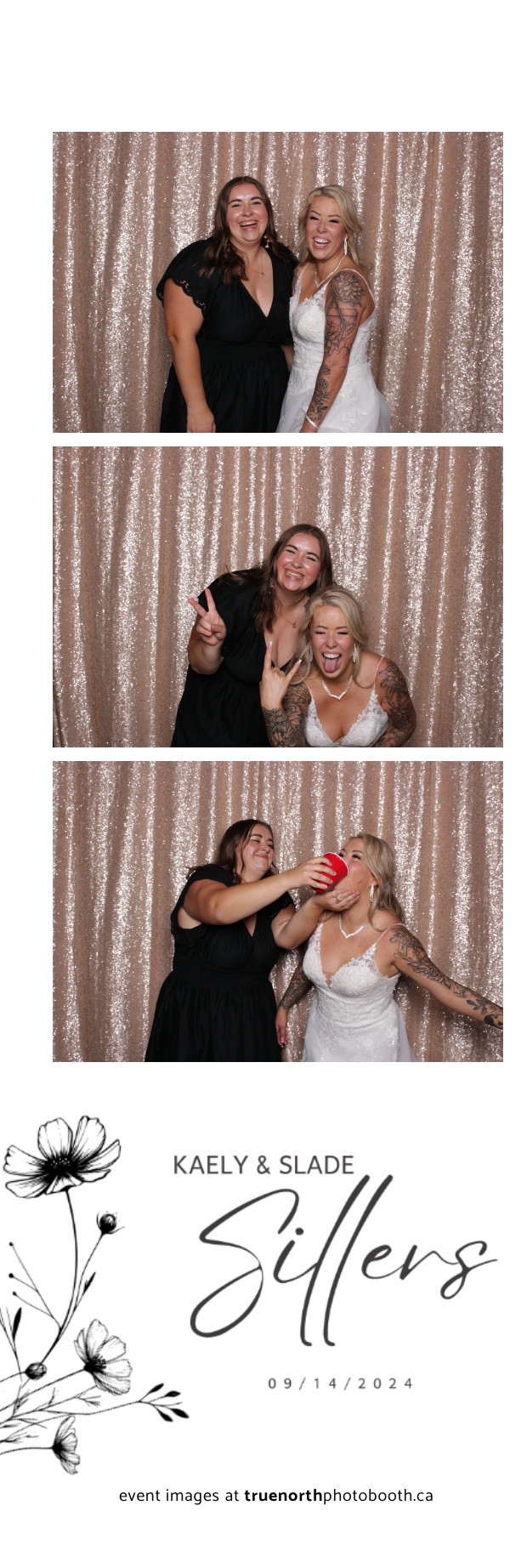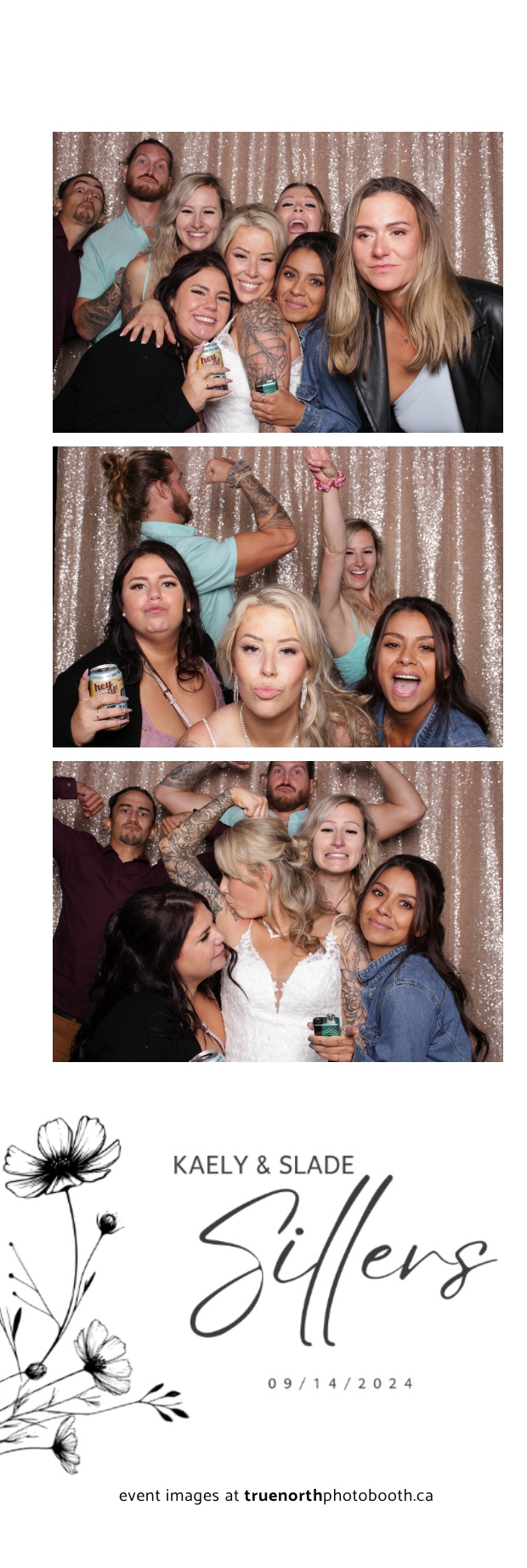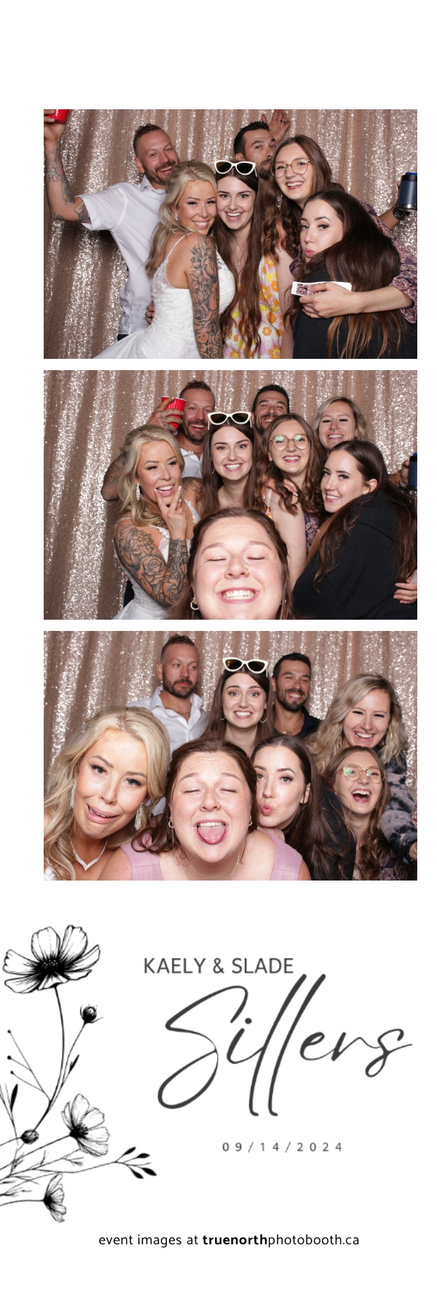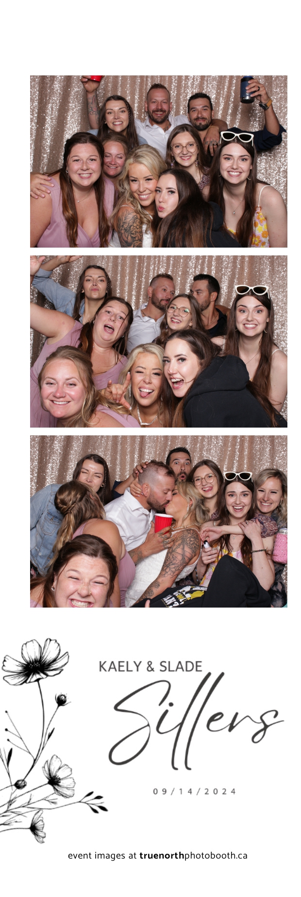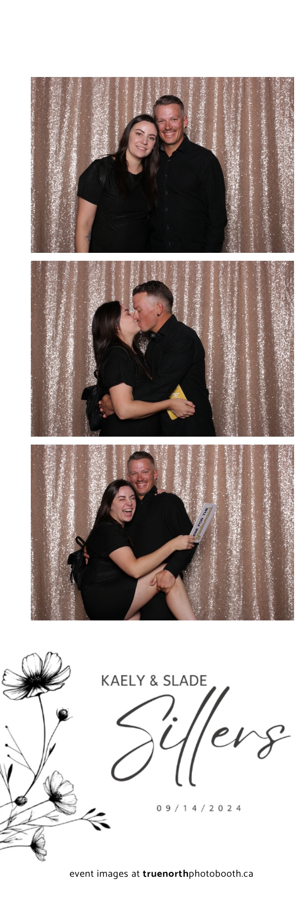 Kaely & Slade, now known as The Sillers, had an absolutely breathtaking wedding at the beautiful Netskar Farm in Grandora, Saskatchewan. True North Photo Booth was thrilled to be part of their big day, bringing in the fun with our 2X6 custom photo strip and stunning champagne sequin backdrop. The guests couldn’t get enough of the booth, capturing tons of memorable moments throughout the night. The shimmering champagne backdrop added an elegant touch, making each photo strip a picture-perfect keepsake from this magical day.