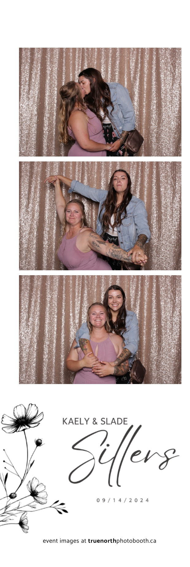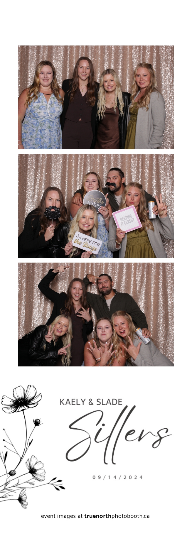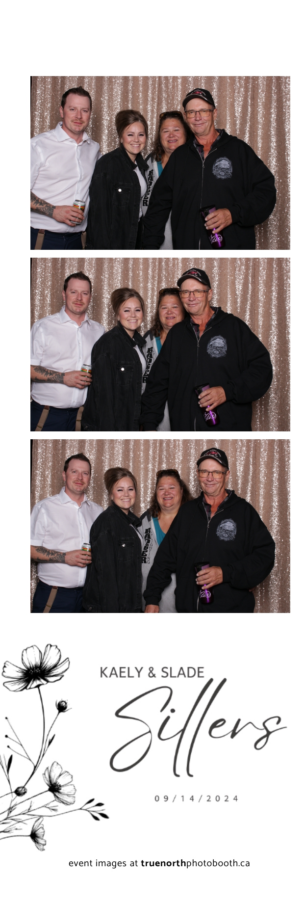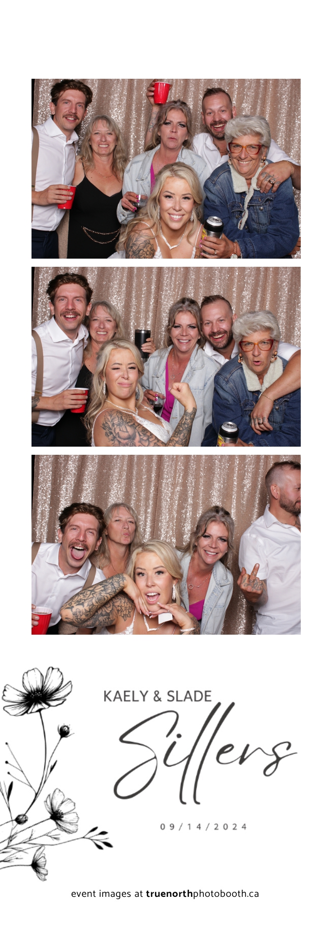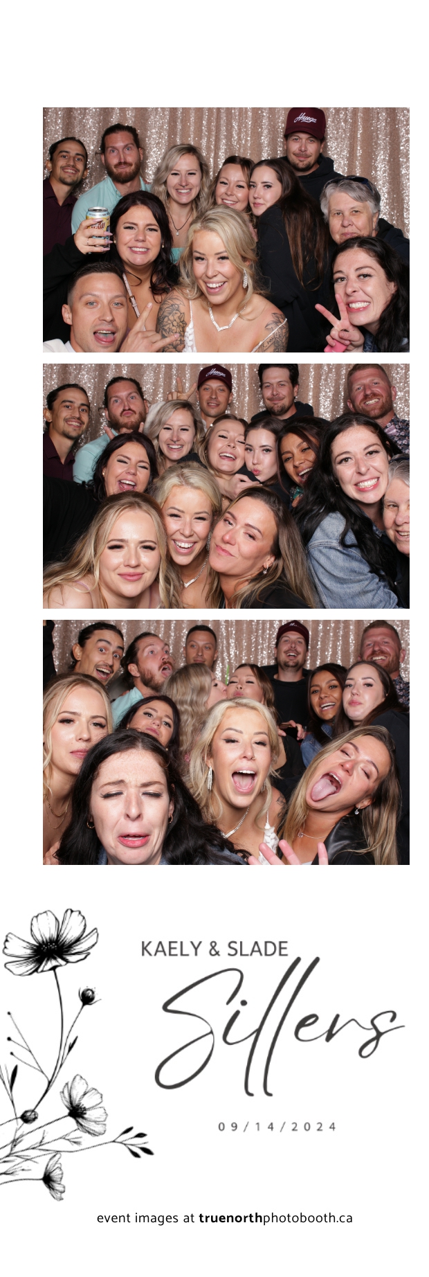 Kaely & Slade, now known as The Sillers, had an absolutely breathtaking wedding at the beautiful Netskar Farm in Grandora, Saskatchewan. True North Photo Booth was thrilled to be part of their big day, bringing in the fun with our 2X6 custom photo strip and stunning champagne sequin backdrop. The guests couldn’t get enough of the booth, capturing tons of memorable moments throughout the night. The shimmering champagne backdrop added an elegant touch, making each photo strip a picture-perfect keepsake from this magical day.