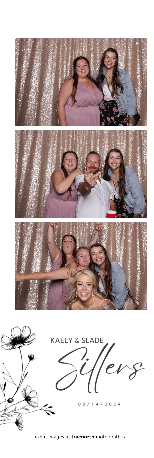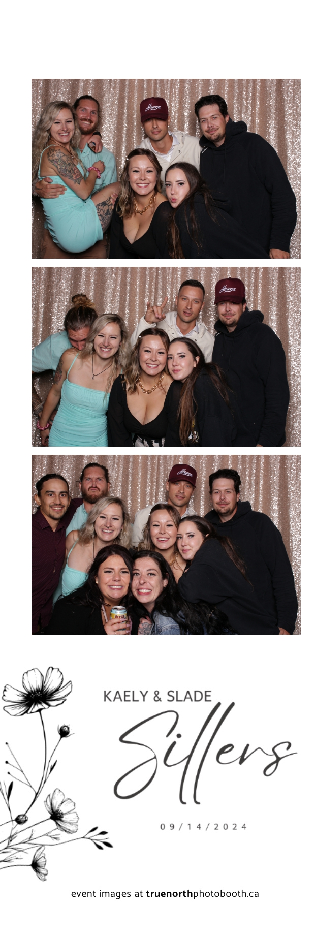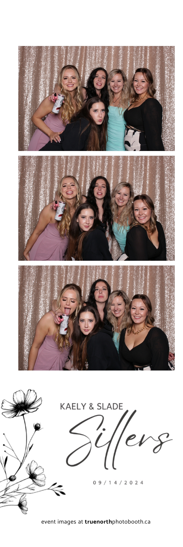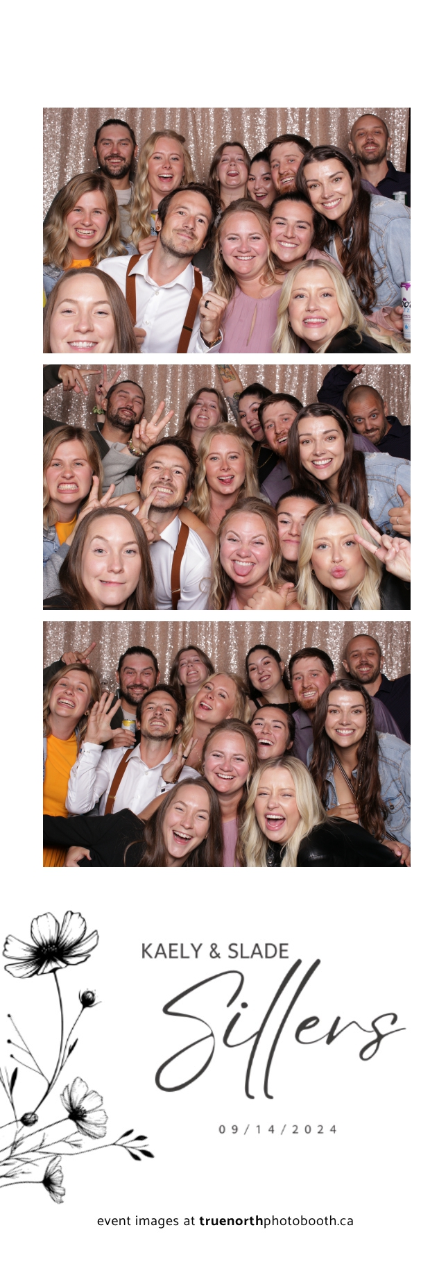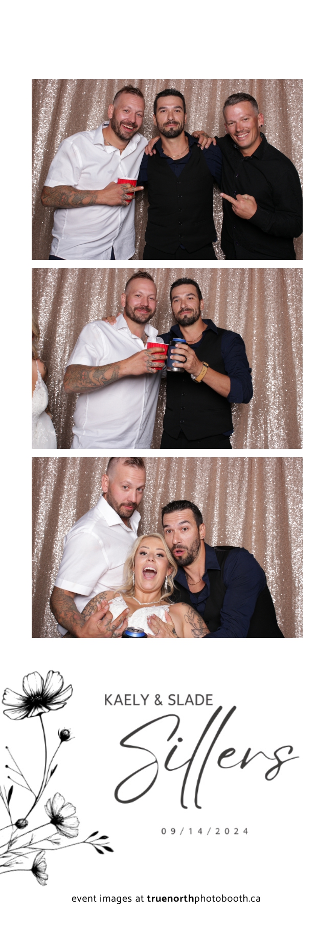 Kaely & Slade, now known as The Sillers, had an absolutely breathtaking wedding at the beautiful Netskar Farm in Grandora, Saskatchewan. True North Photo Booth was thrilled to be part of their big day, bringing in the fun with our 2X6 custom photo strip and stunning champagne sequin backdrop. The guests couldn’t get enough of the booth, capturing tons of memorable moments throughout the night. The shimmering champagne backdrop added an elegant touch, making each photo strip a picture-perfect keepsake from this magical day.
