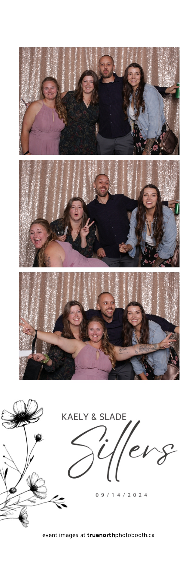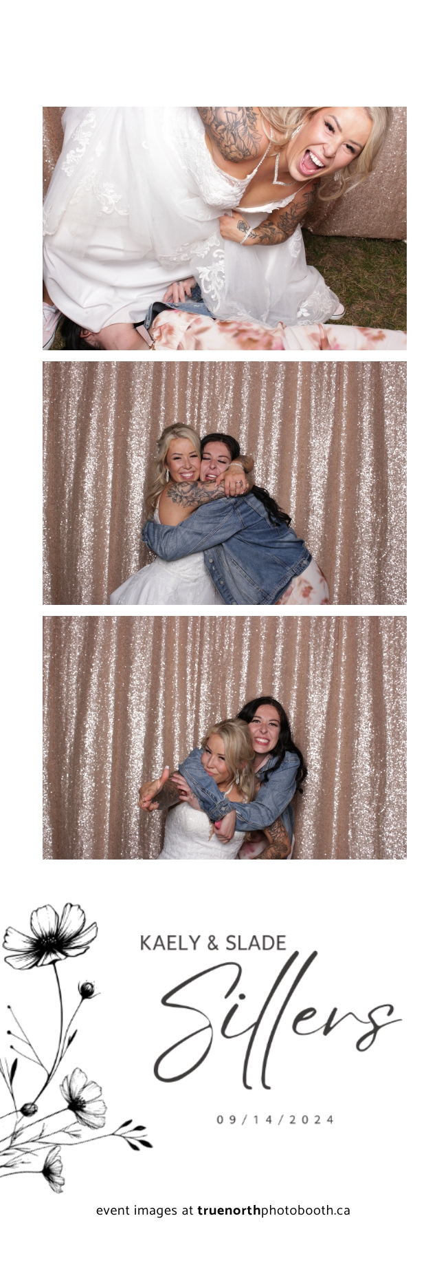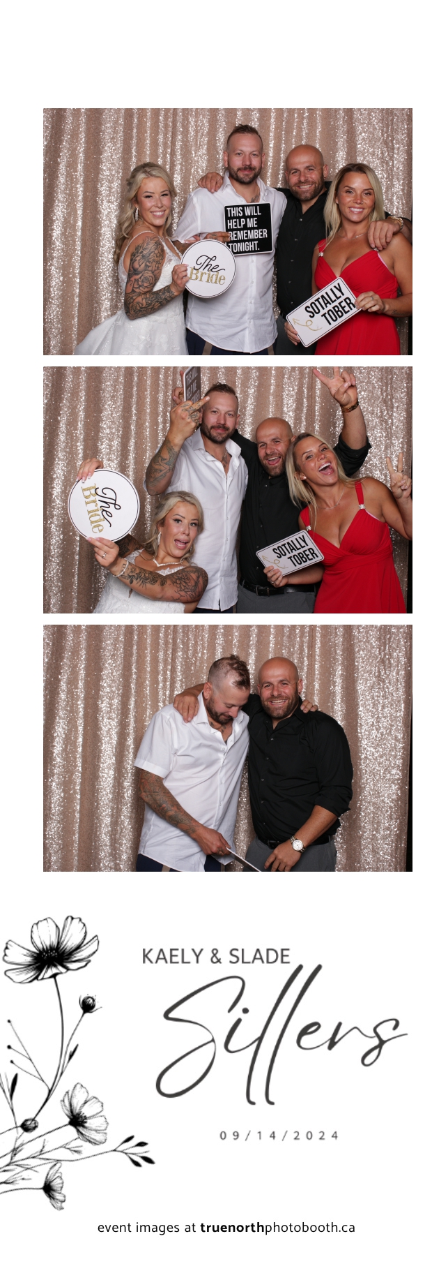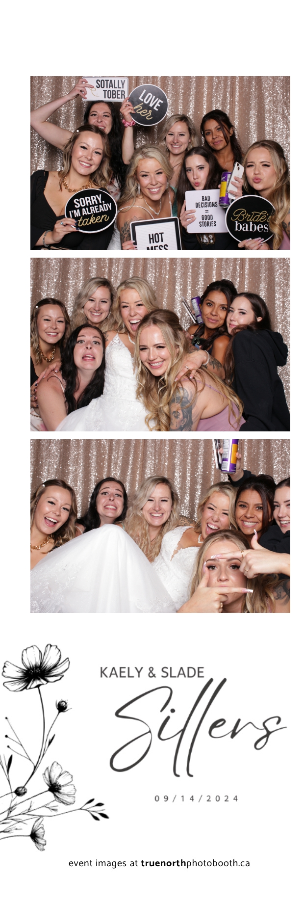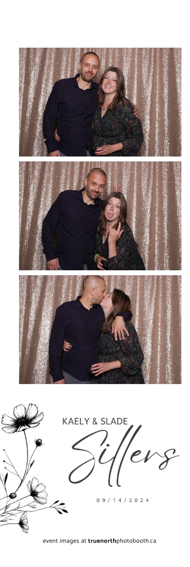 Kaely & Slade, now known as The Sillers, had an absolutely breathtaking wedding at the beautiful Netskar Farm in Grandora, Saskatchewan. True North Photo Booth was thrilled to be part of their big day, bringing in the fun with our 2X6 custom photo strip and stunning champagne sequin backdrop. The guests couldn’t get enough of the booth, capturing tons of memorable moments throughout the night. The shimmering champagne backdrop added an elegant touch, making each photo strip a picture-perfect keepsake from this magical day.