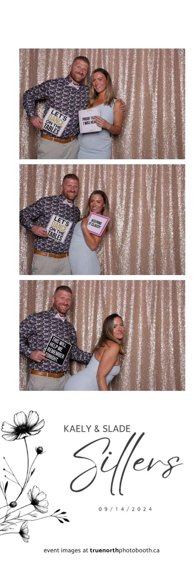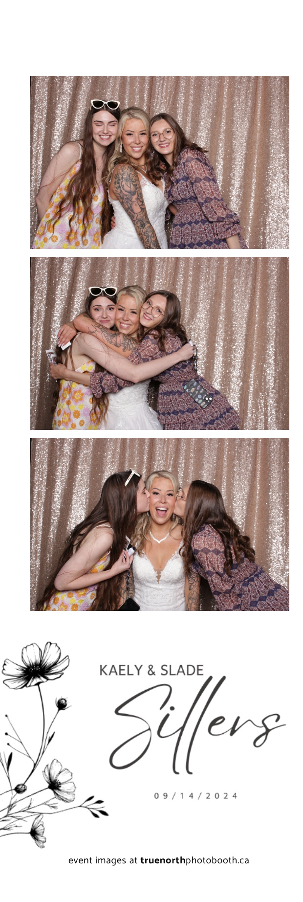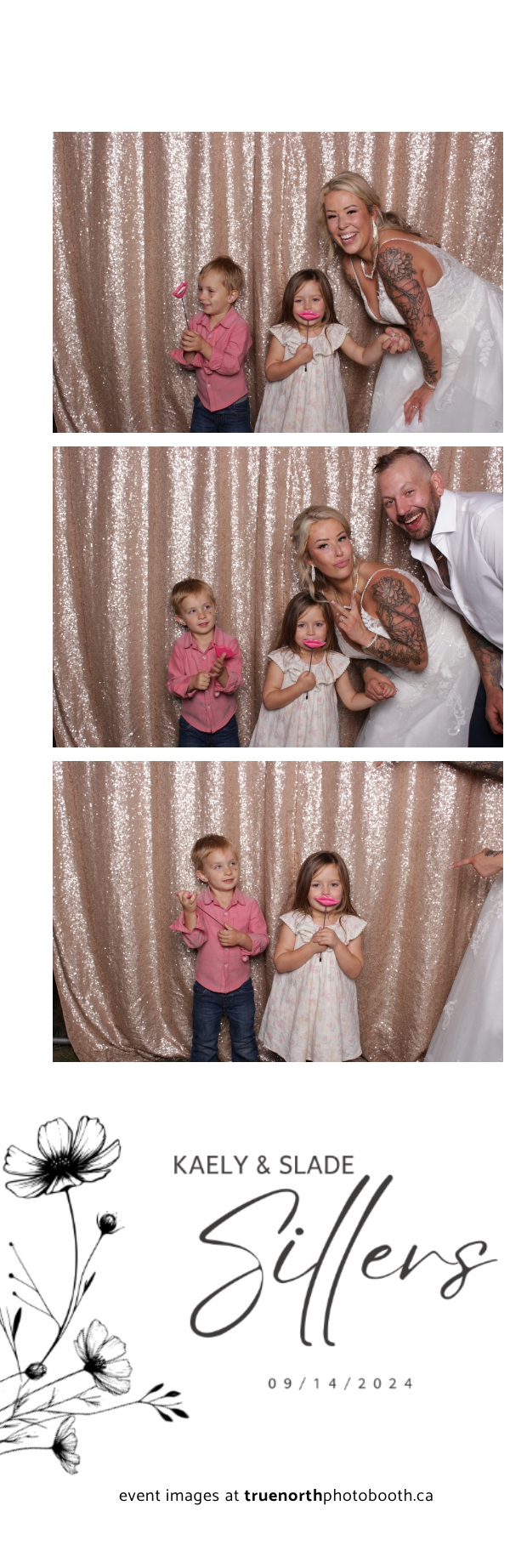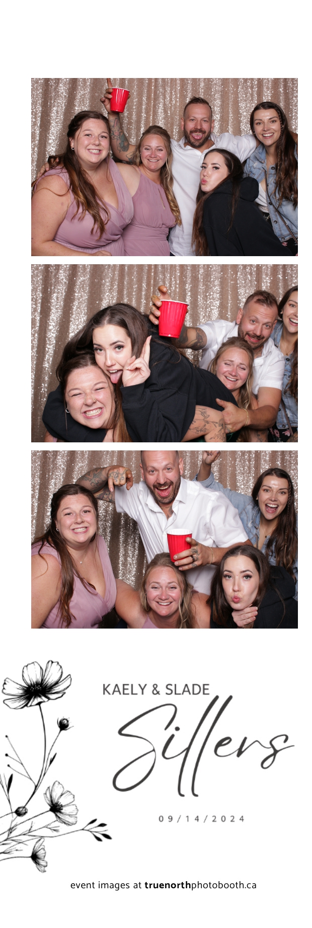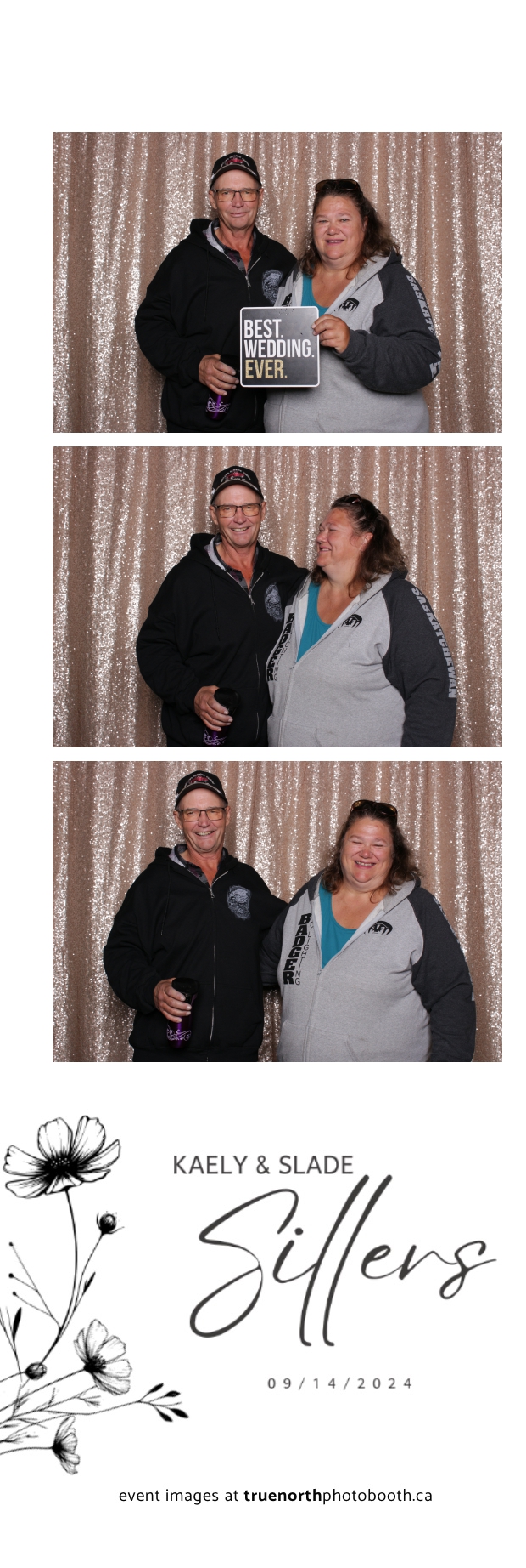 Kaely & Slade, now known as The Sillers, had an absolutely breathtaking wedding at the beautiful Netskar Farm in Grandora, Saskatchewan. True North Photo Booth was thrilled to be part of their big day, bringing in the fun with our 2X6 custom photo strip and stunning champagne sequin backdrop. The guests couldn’t get enough of the booth, capturing tons of memorable moments throughout the night. The shimmering champagne backdrop added an elegant touch, making each photo strip a picture-perfect keepsake from this magical day.