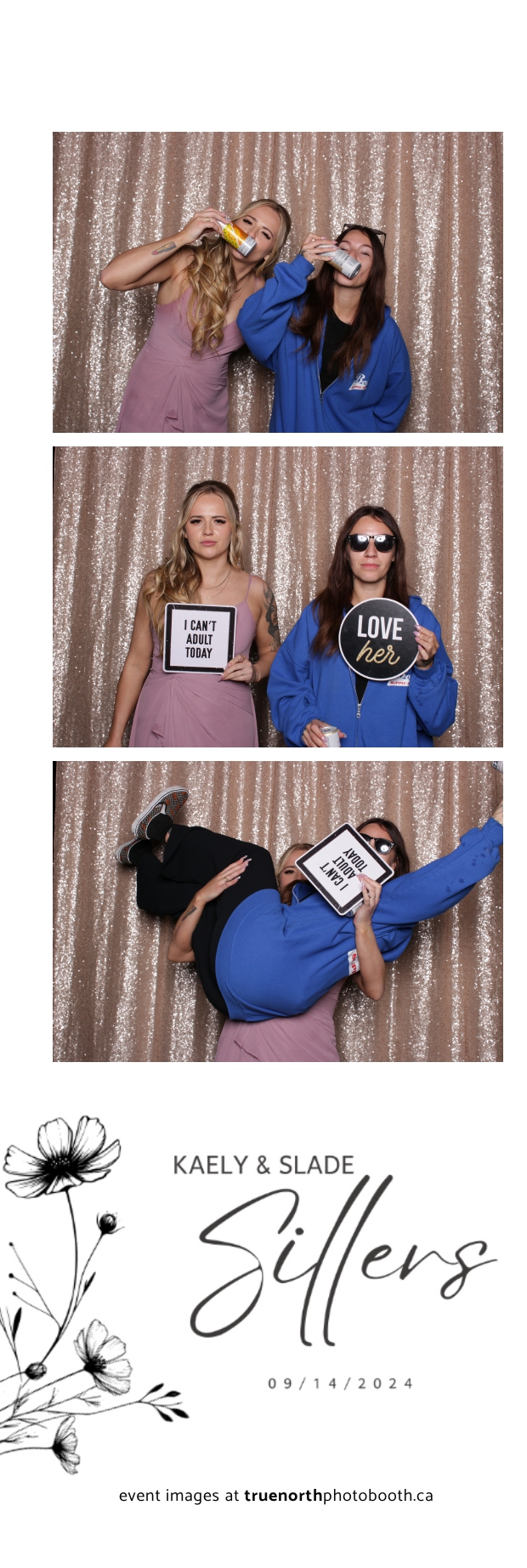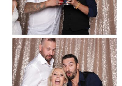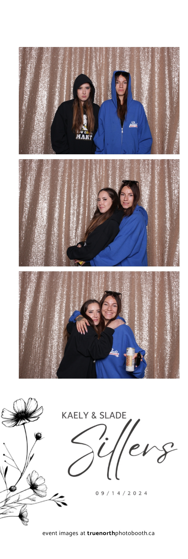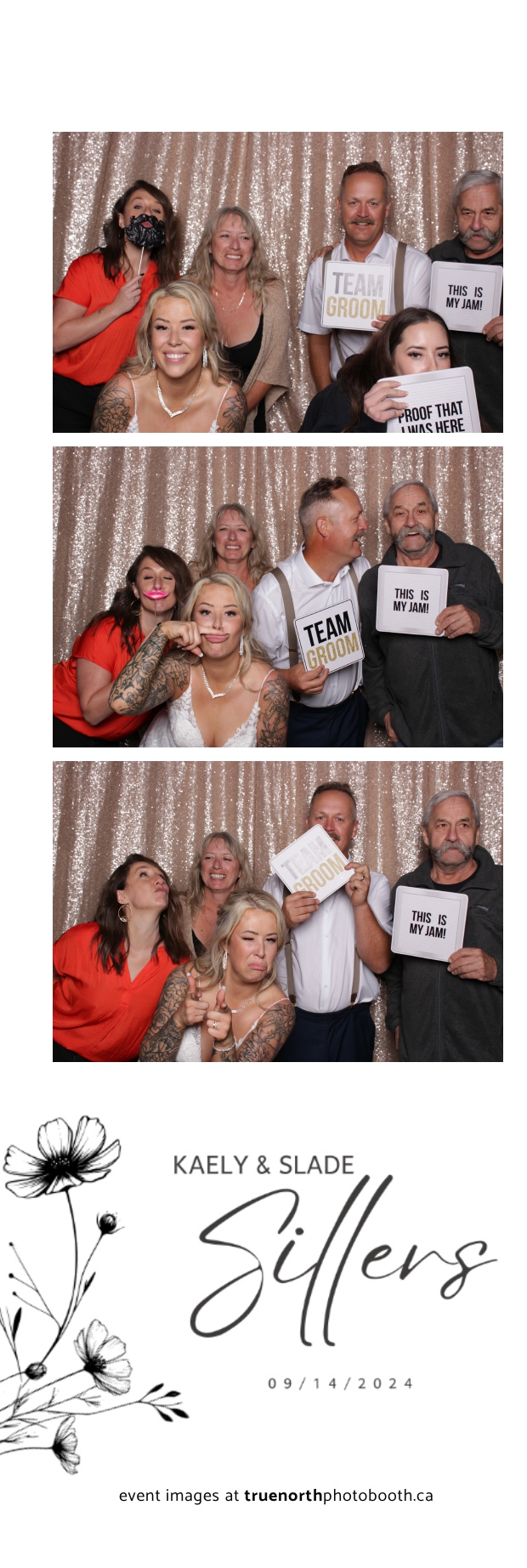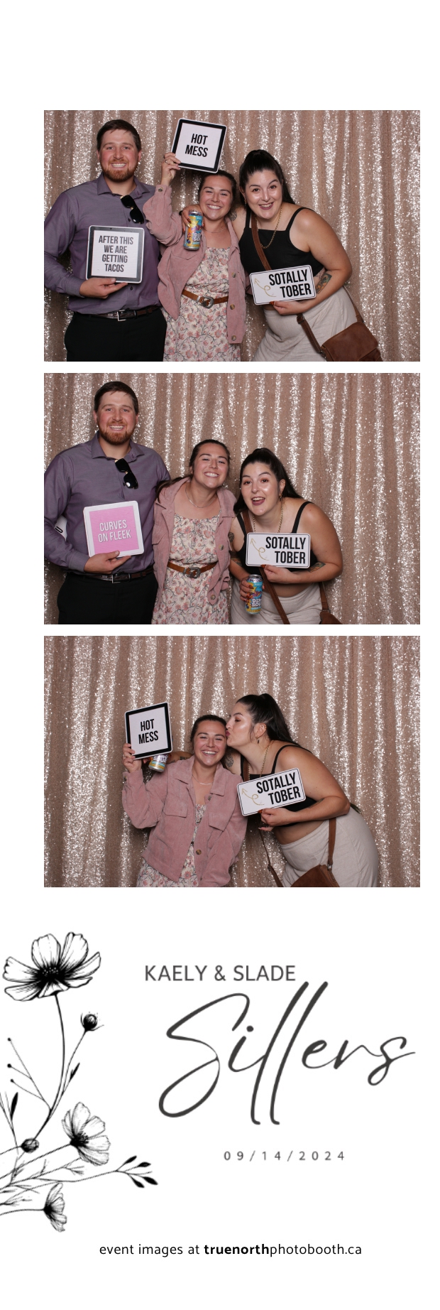 Kaely & Slade, now known as The Sillers, had an absolutely breathtaking wedding at the beautiful Netskar Farm in Grandora, Saskatchewan. True North Photo Booth was thrilled to be part of their big day, bringing in the fun with our 2X6 custom photo strip and stunning champagne sequin backdrop. The guests couldn’t get enough of the booth, capturing tons of memorable moments throughout the night. The shimmering champagne backdrop added an elegant touch, making each photo strip a picture-perfect keepsake from this magical day.