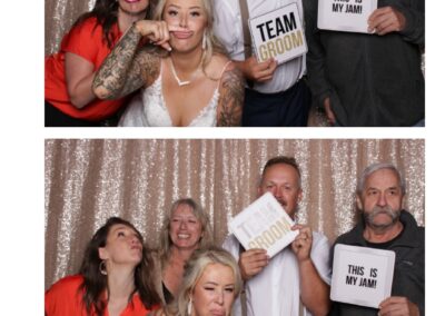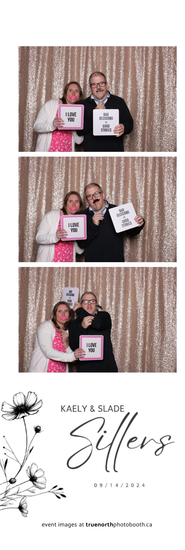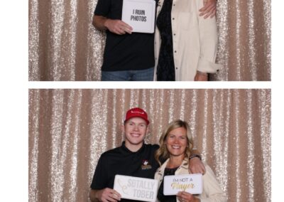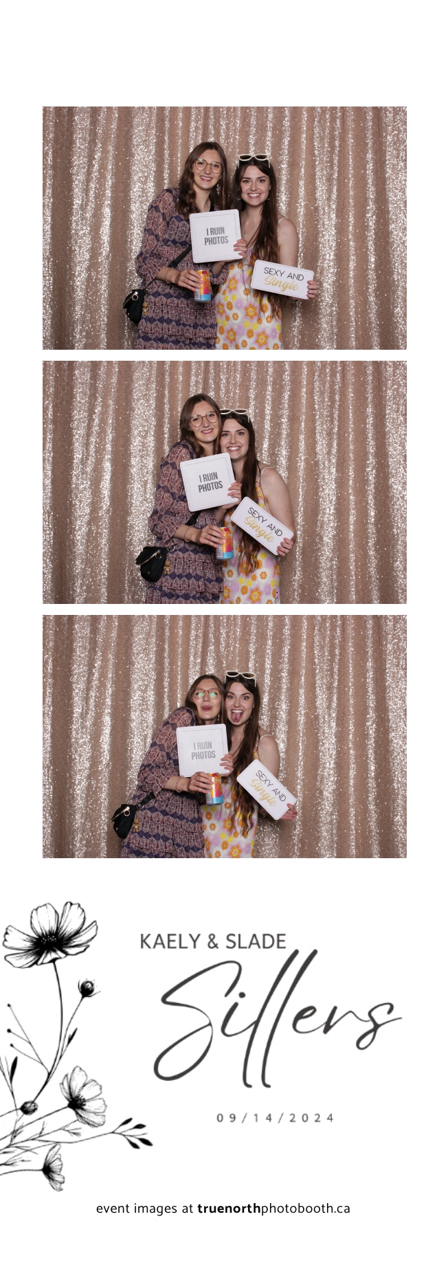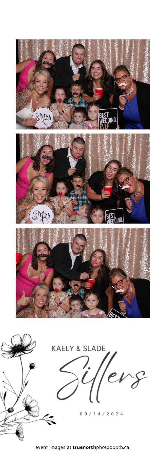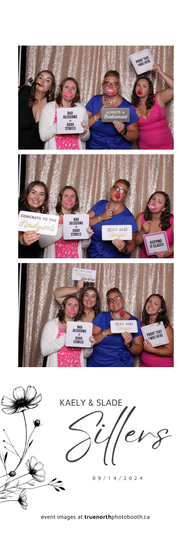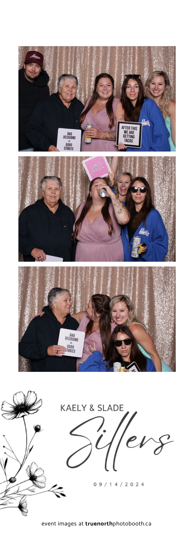 Kaely & Slade, now known as The Sillers, had an absolutely breathtaking wedding at the beautiful Netskar Farm in Grandora, Saskatchewan. True North Photo Booth was thrilled to be part of their big day, bringing in the fun with our 2X6 custom photo strip and stunning champagne sequin backdrop. The guests couldn’t get enough of the booth, capturing tons of memorable moments throughout the night. The shimmering champagne backdrop added an elegant touch, making each photo strip a picture-perfect keepsake from this magical day.