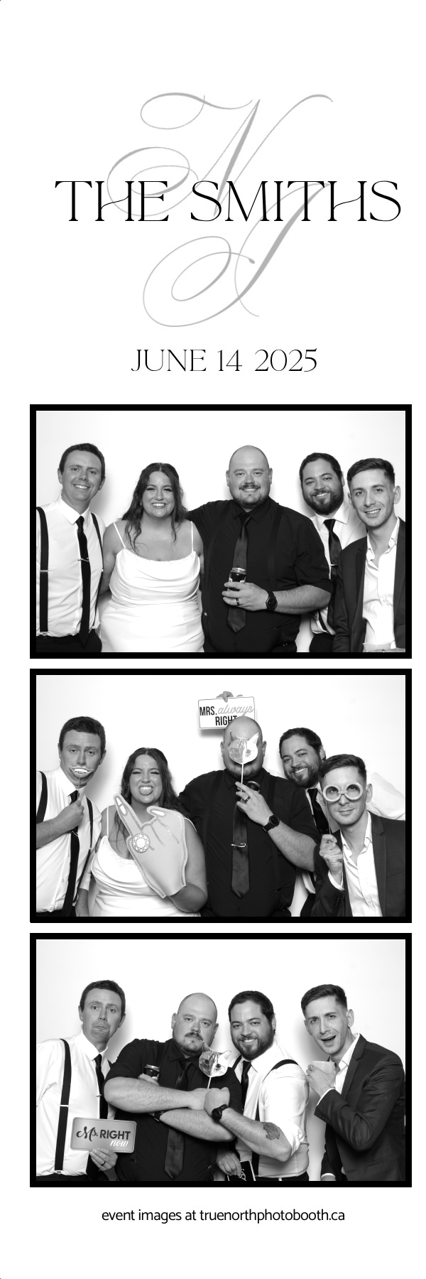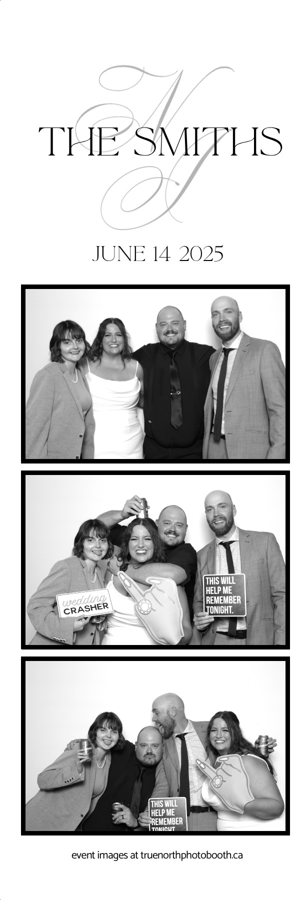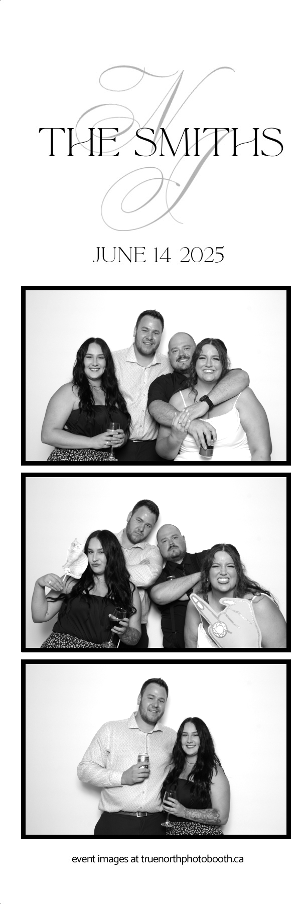 From heartfelt vows to a packed dance floor, the photo booth added nonstop fun and unforgettable keepsakes. Friends and family lined up all night to snap glamorous, high-quality photos, creating instant mementos of The Smiths’ unforgettable day. True North Photo Booth was proud to be part of the magic, delivering a truly elevated photo booth experience for a couple who deserved nothing but the best.