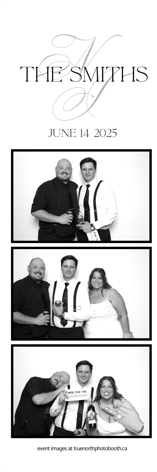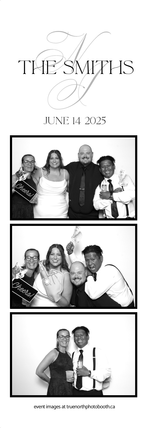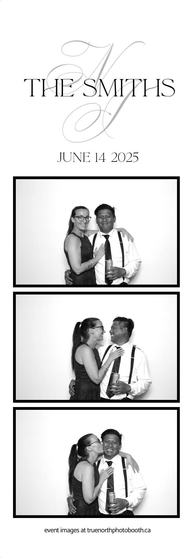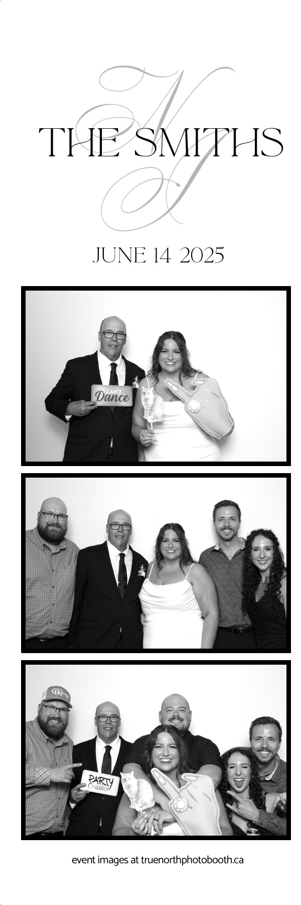 The Smiths’ wedding was a breathtaking celebration of love held at the iconic Ches Leach Lounge in the Art Hauser Centre in Prince Albert. True North Photo Booth was honored to bring the sparkle! Guests were treated to a luxurious GLAM photo booth experience featuring 2X6 custom photo strips printed on Pearl paper for extra shine, making every moment glow with elegance. The clean and classic white pillow backdrop added a timeless touch, perfect for capturing joyful memories of this beautiful day.