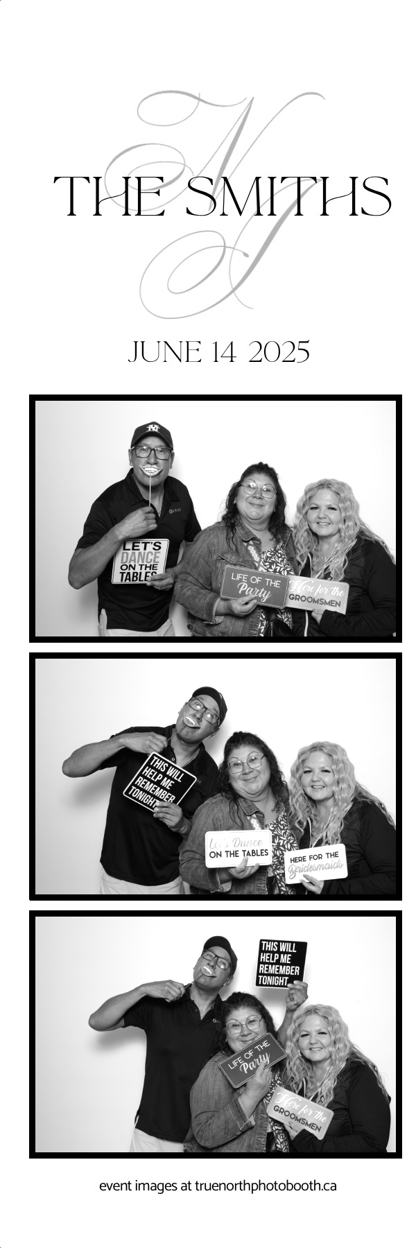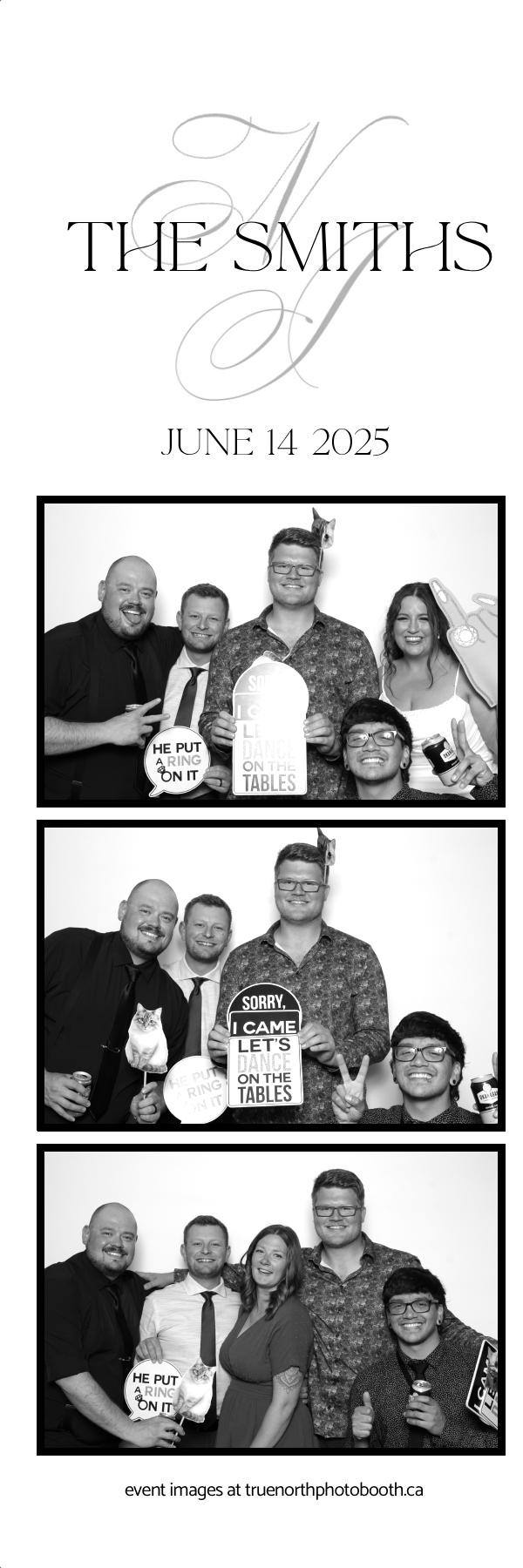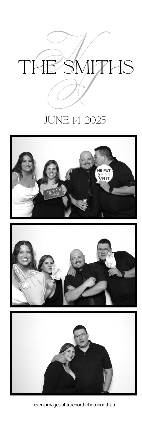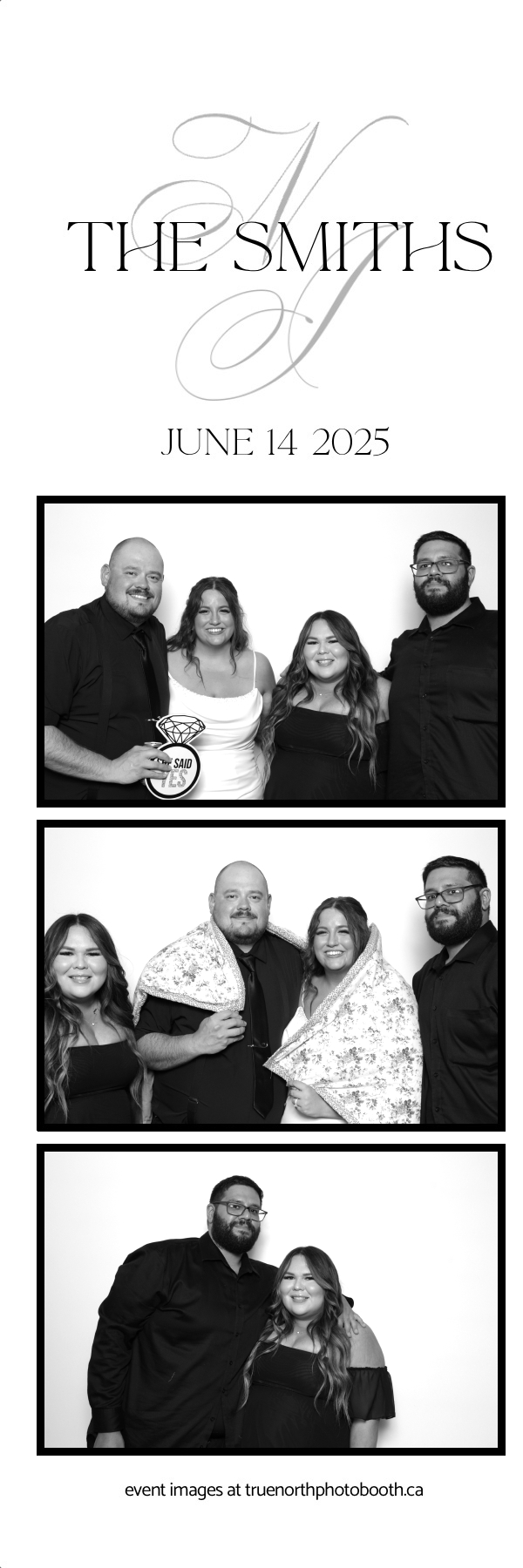 The Smiths’ wedding was a breathtaking celebration of love held at the iconic Ches Leach Lounge in the Art Hauser Centre in Prince Albert. True North Photo Booth was honored to bring the sparkle! Guests were treated to a luxurious GLAM photo booth experience featuring 2X6 custom photo strips printed on Pearl paper for extra shine, making every moment glow with elegance. The clean and classic white pillow backdrop added a timeless touch, perfect for capturing joyful memories of this beautiful day.